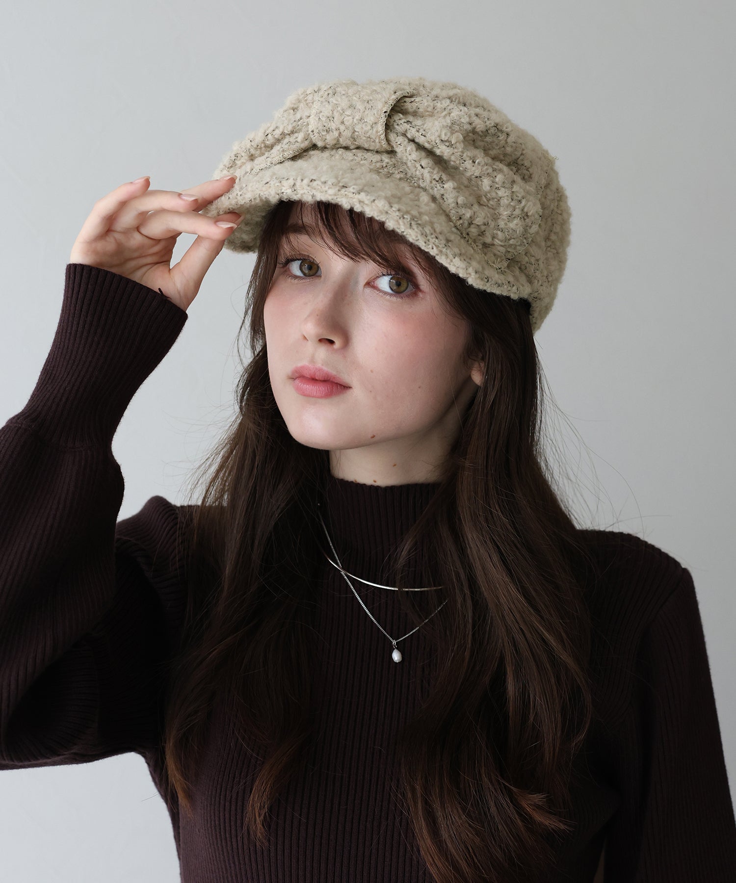 秋冬のコーディネートを一気にアップするフェミニンなキャップ ?POINT 大きなリボンが目を惹く、トレンド感満載のリボンモチーフのキャップ。 フロントのビッグリボンがカジュアルの中にガーリーさをプラスし、いろいろなコーデに合わせやすいデザイン。 取り入れるだけでふわふわとしたボア素材がコーデにシーズンライクな印象を演出します。 いつものコーデを格上げしてくれる今季おすすめのアイテムです。