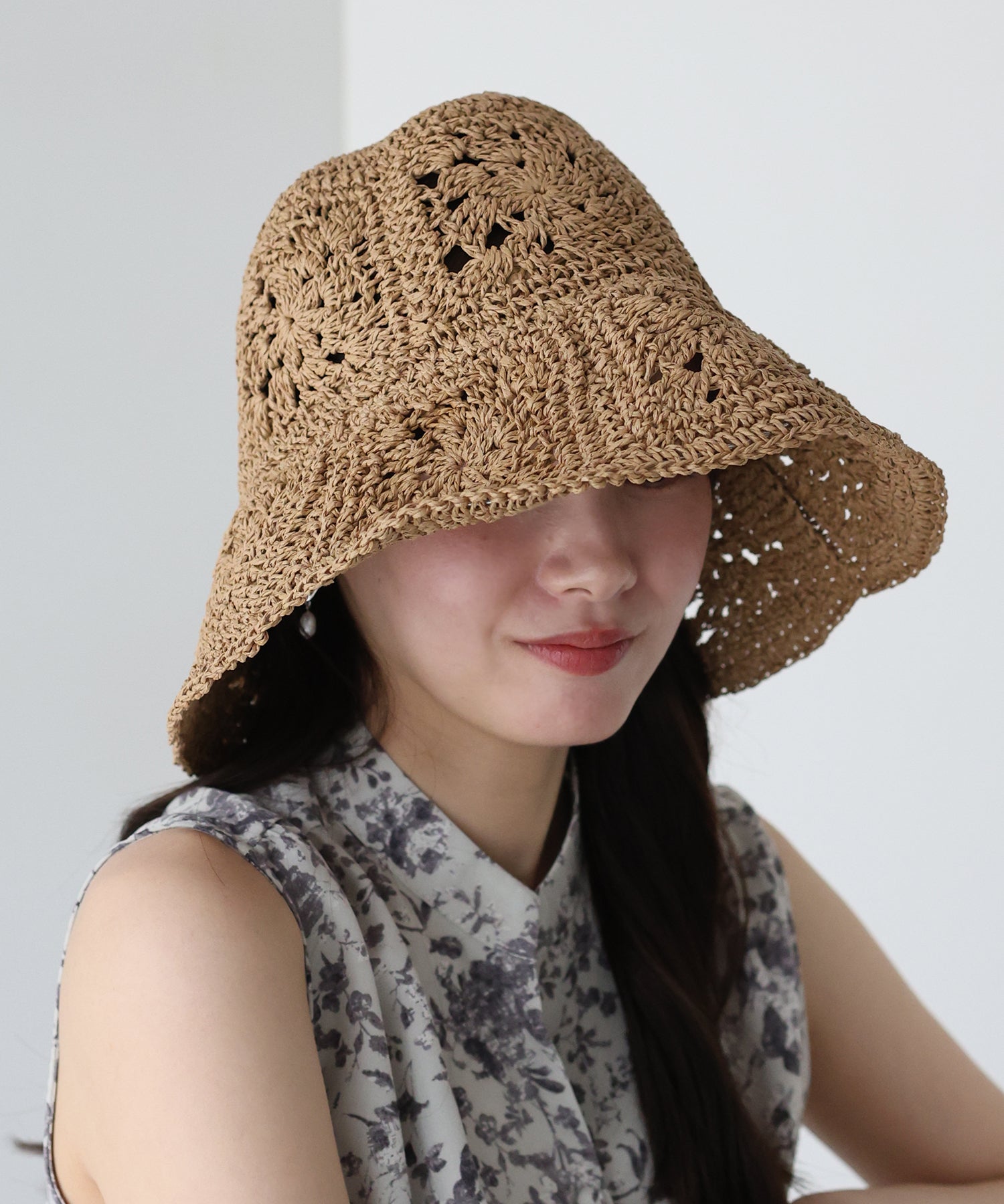 ざっくりした編地なので通気性が良く、ツバ部分にワイヤーを入れているのでお好みの形にアレンジ可能。