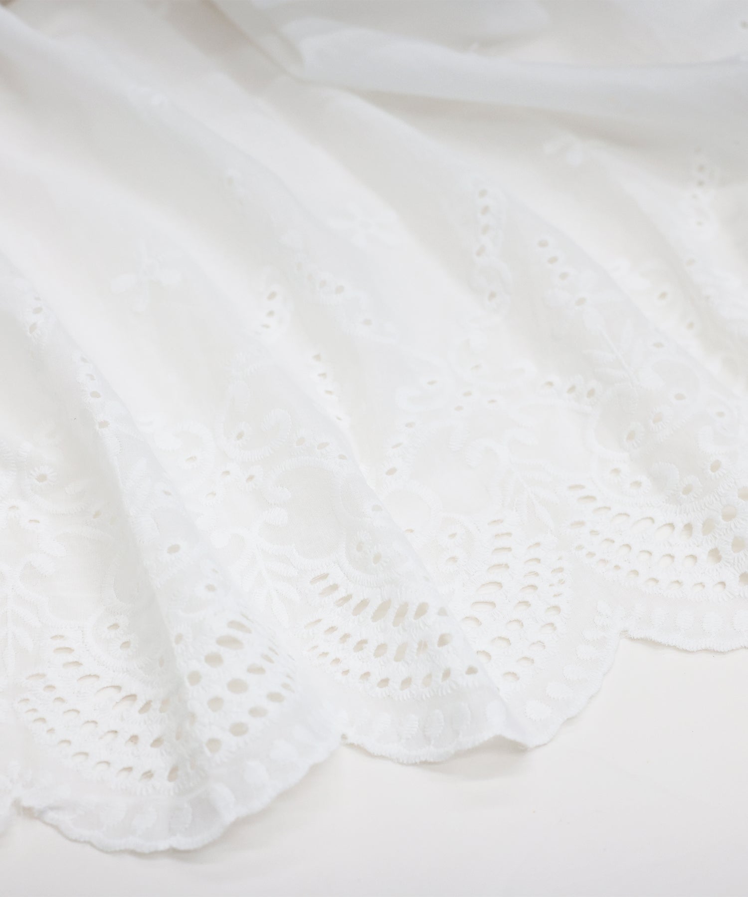 ?DETAIL ティアードデザイン バックシャーリングゴム 裏地有り 裾:花柄刺繍、カットワークレース 調節可能なアジャスター付き