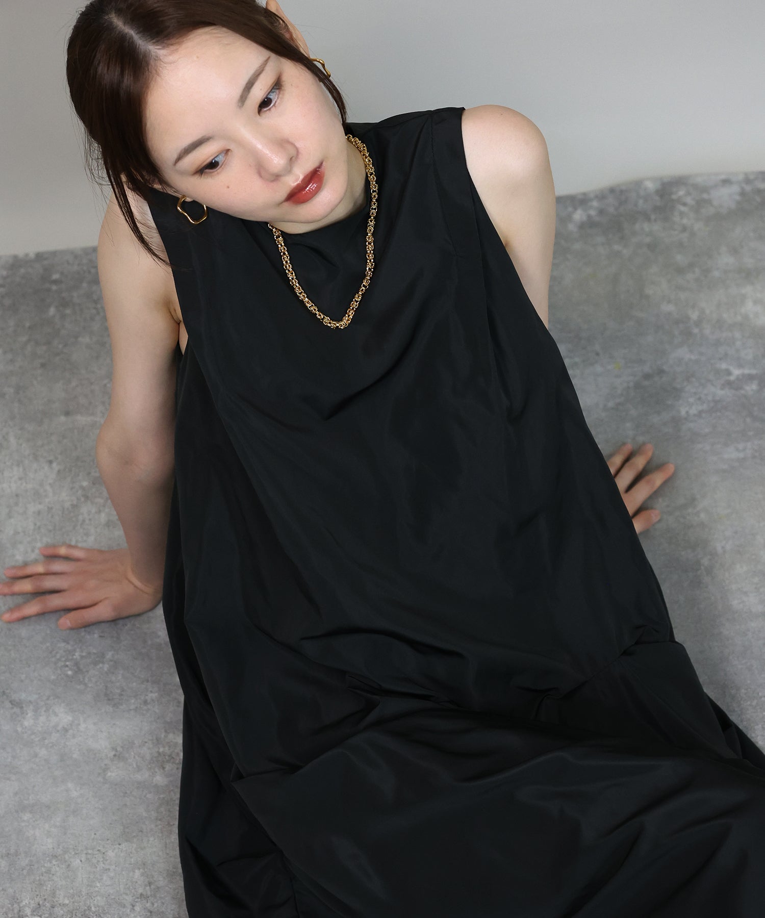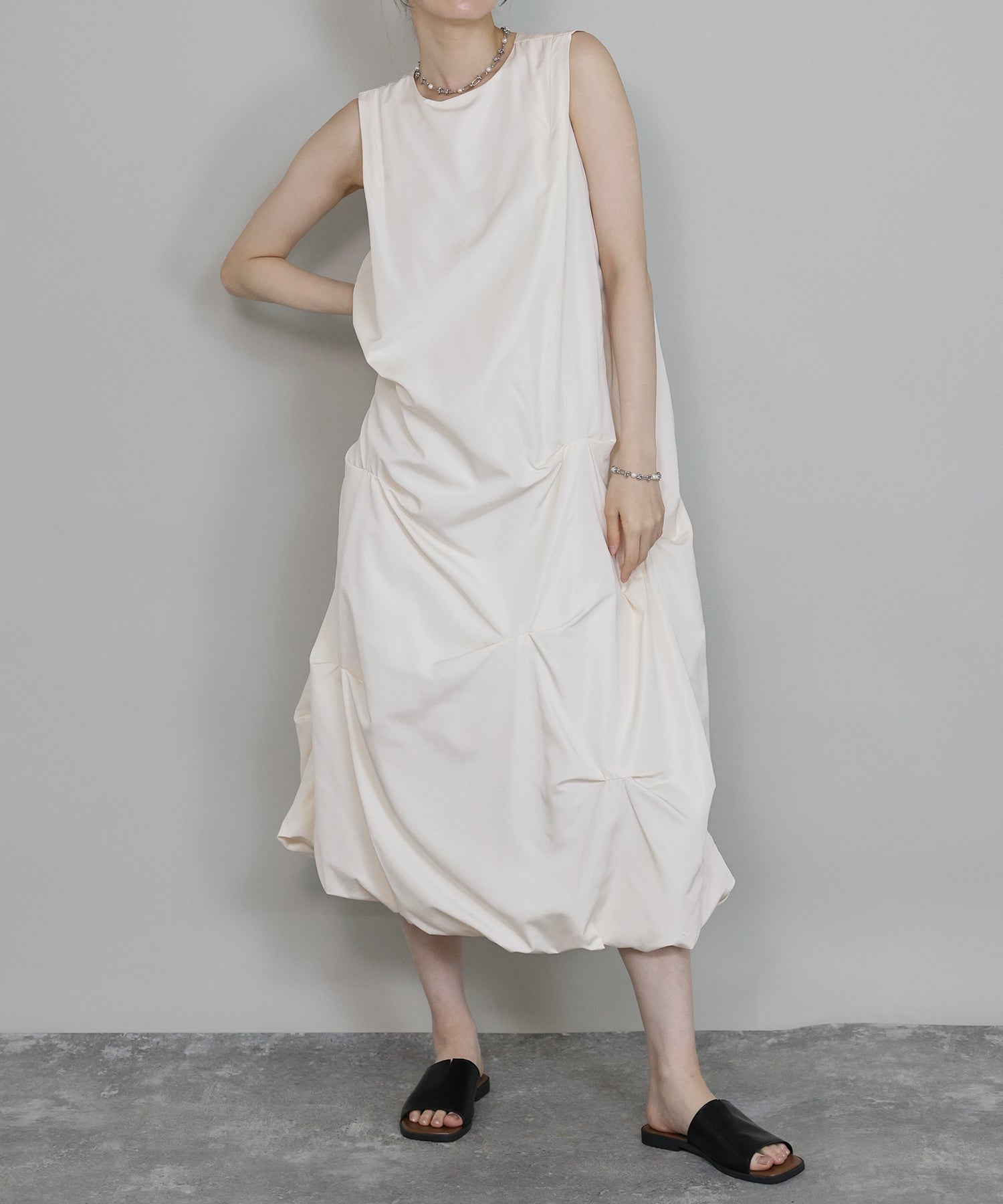 ?DETAIL ランダムタック バルーンシルエット ノースリーブ バックファスナー有り
