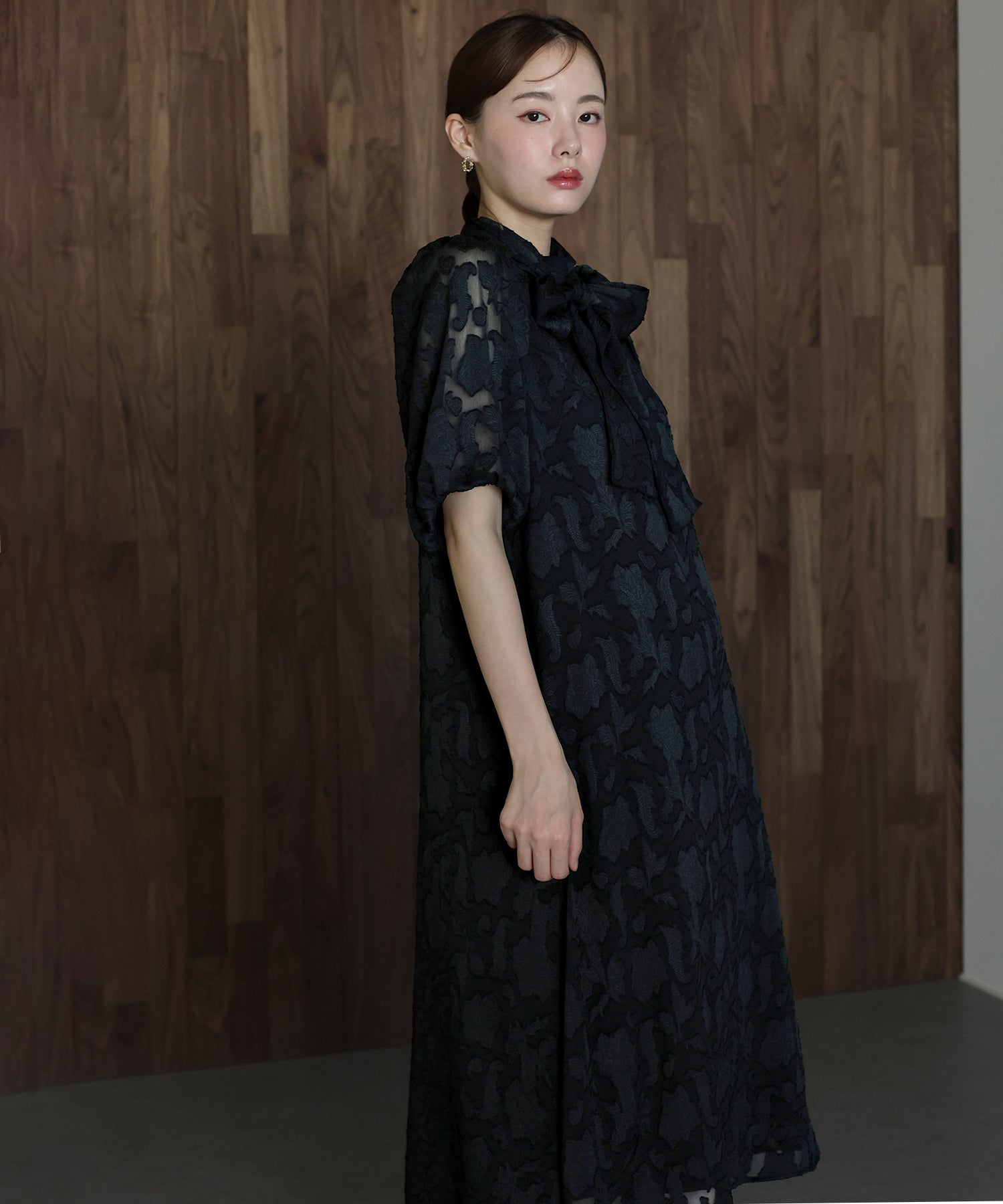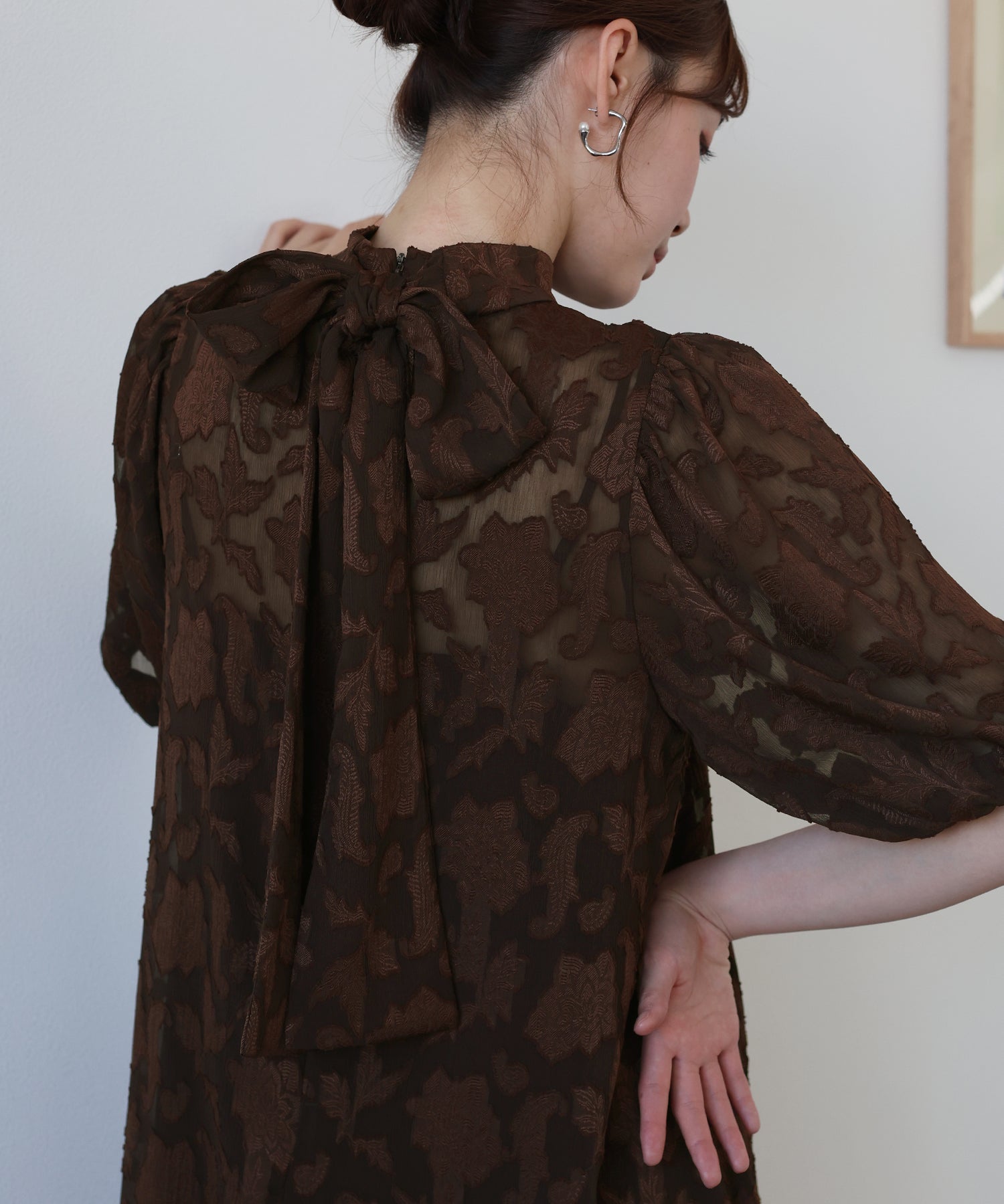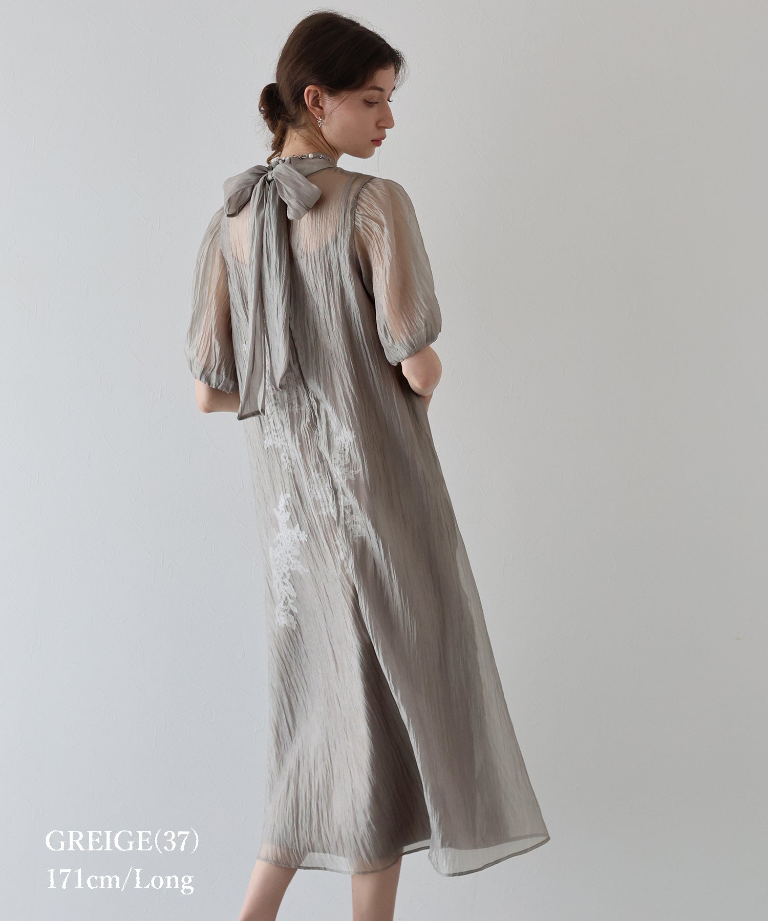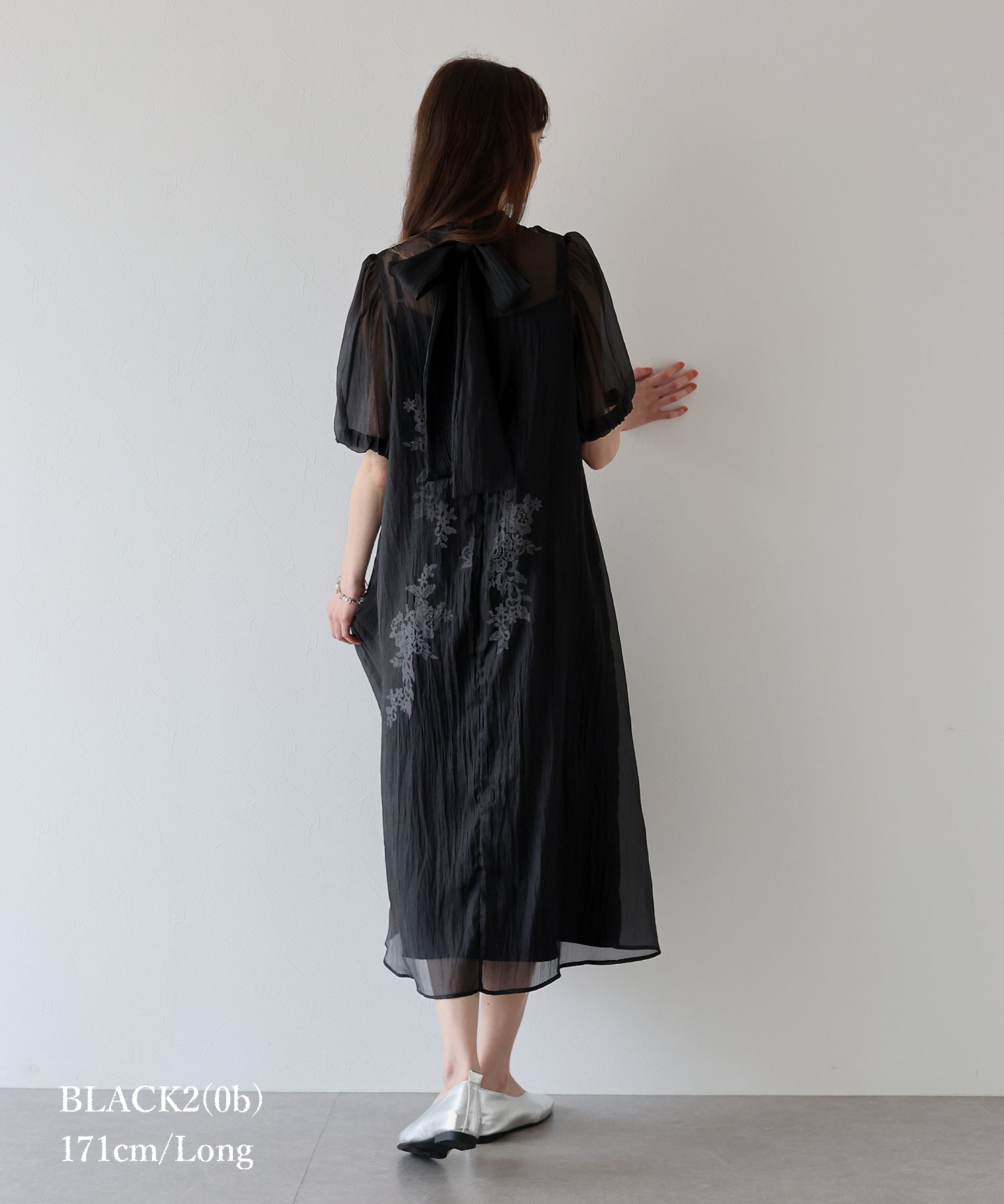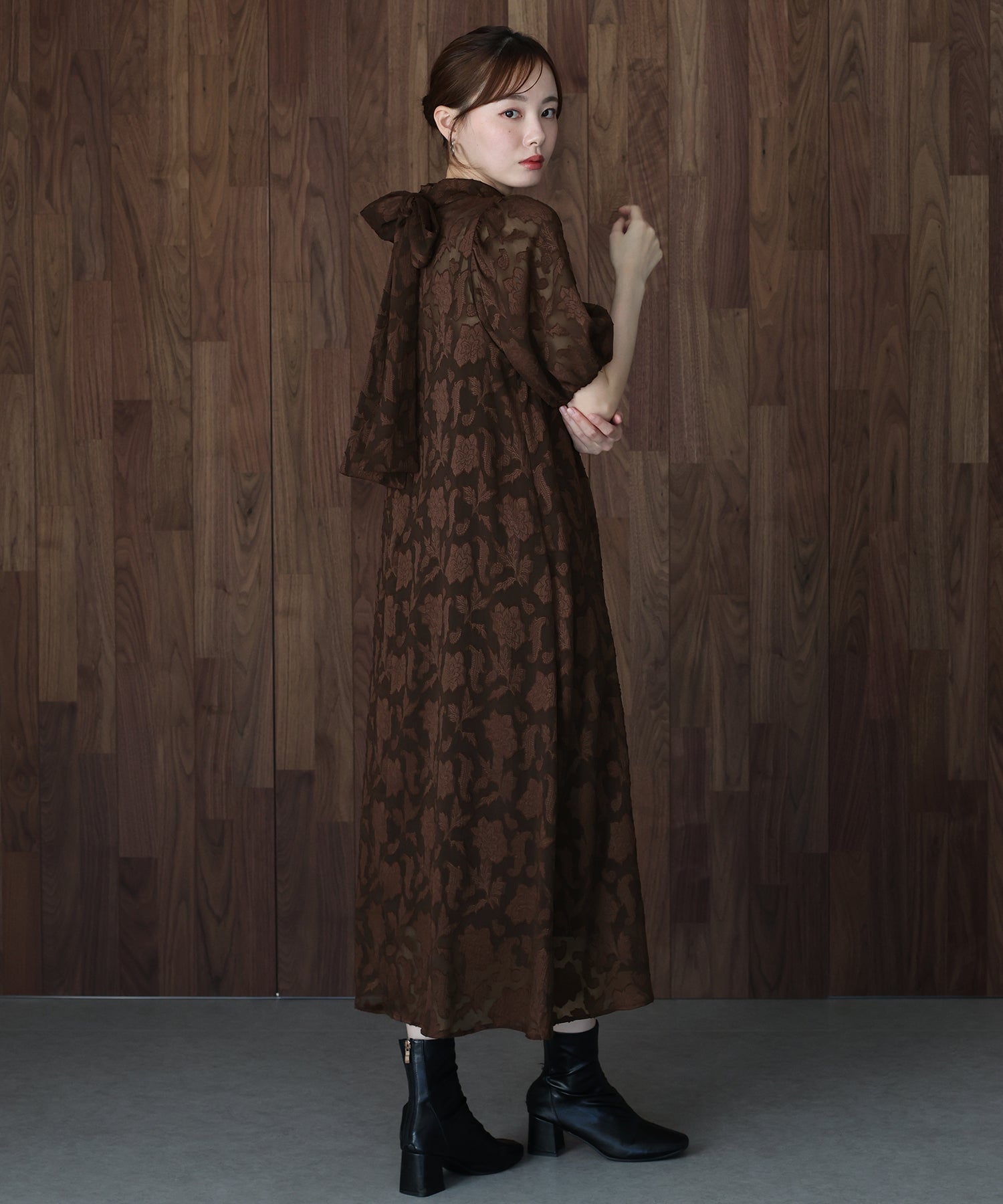 - インナー付きバックリボンジャガードドレス
