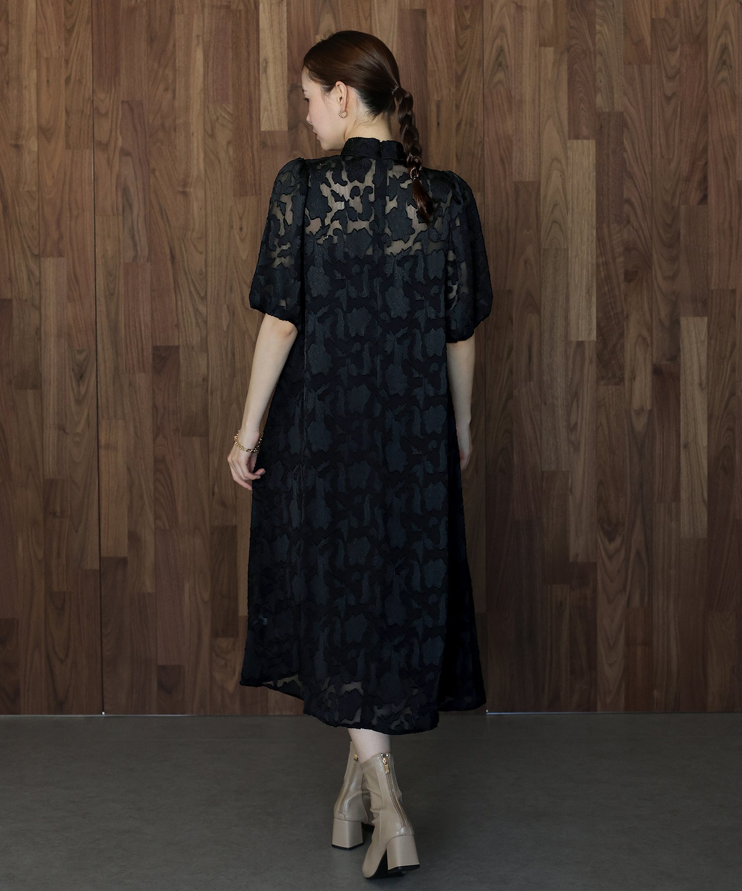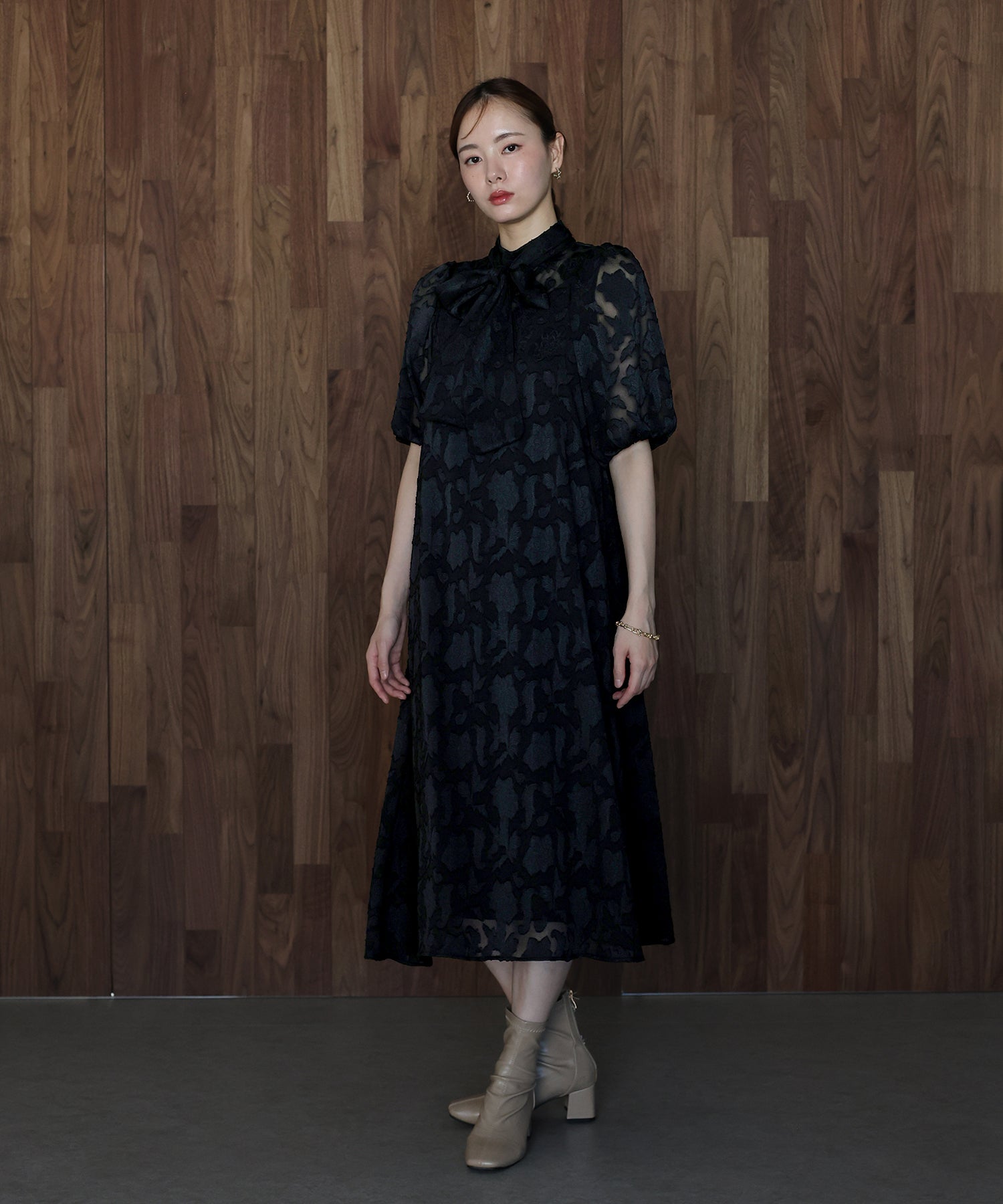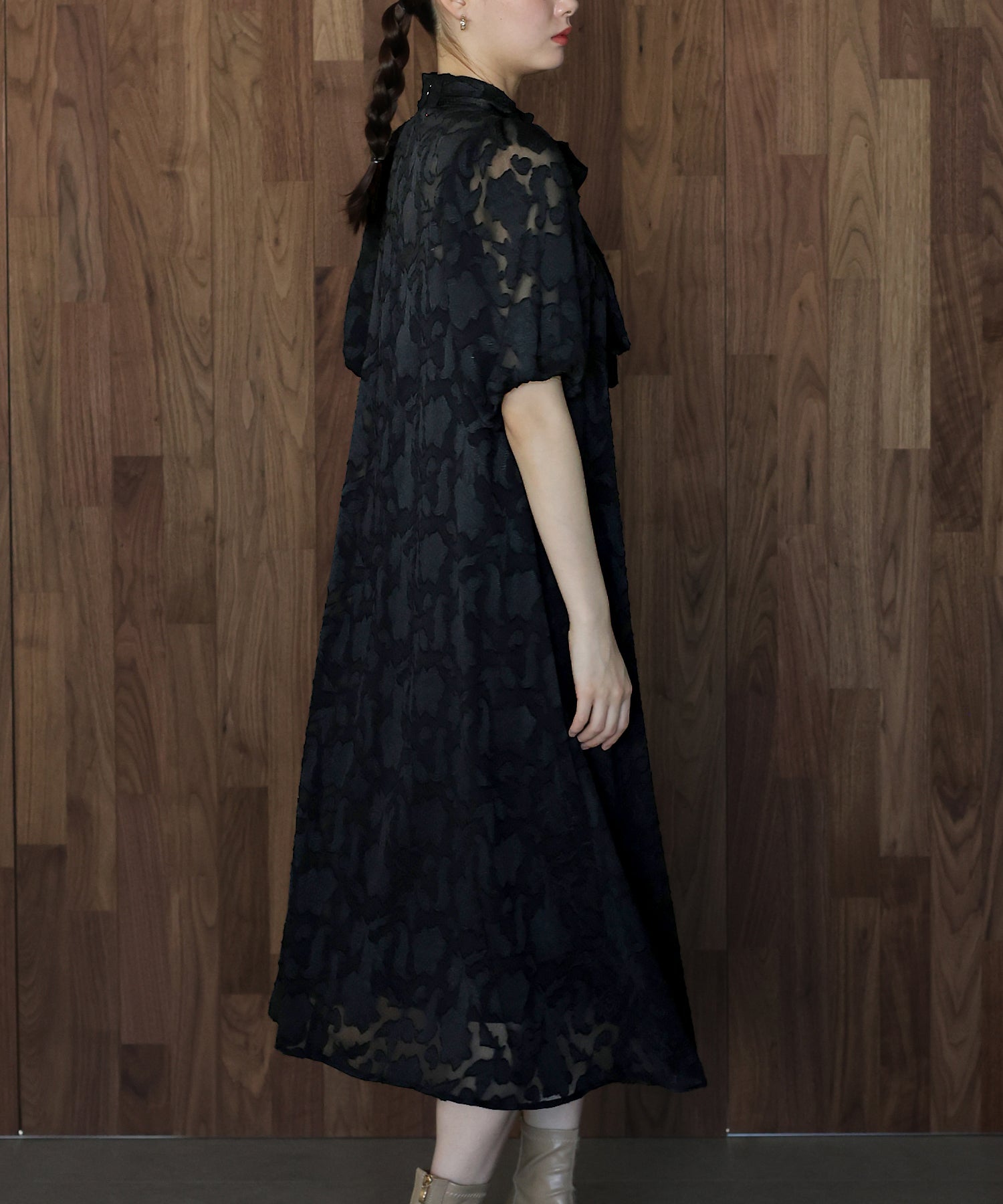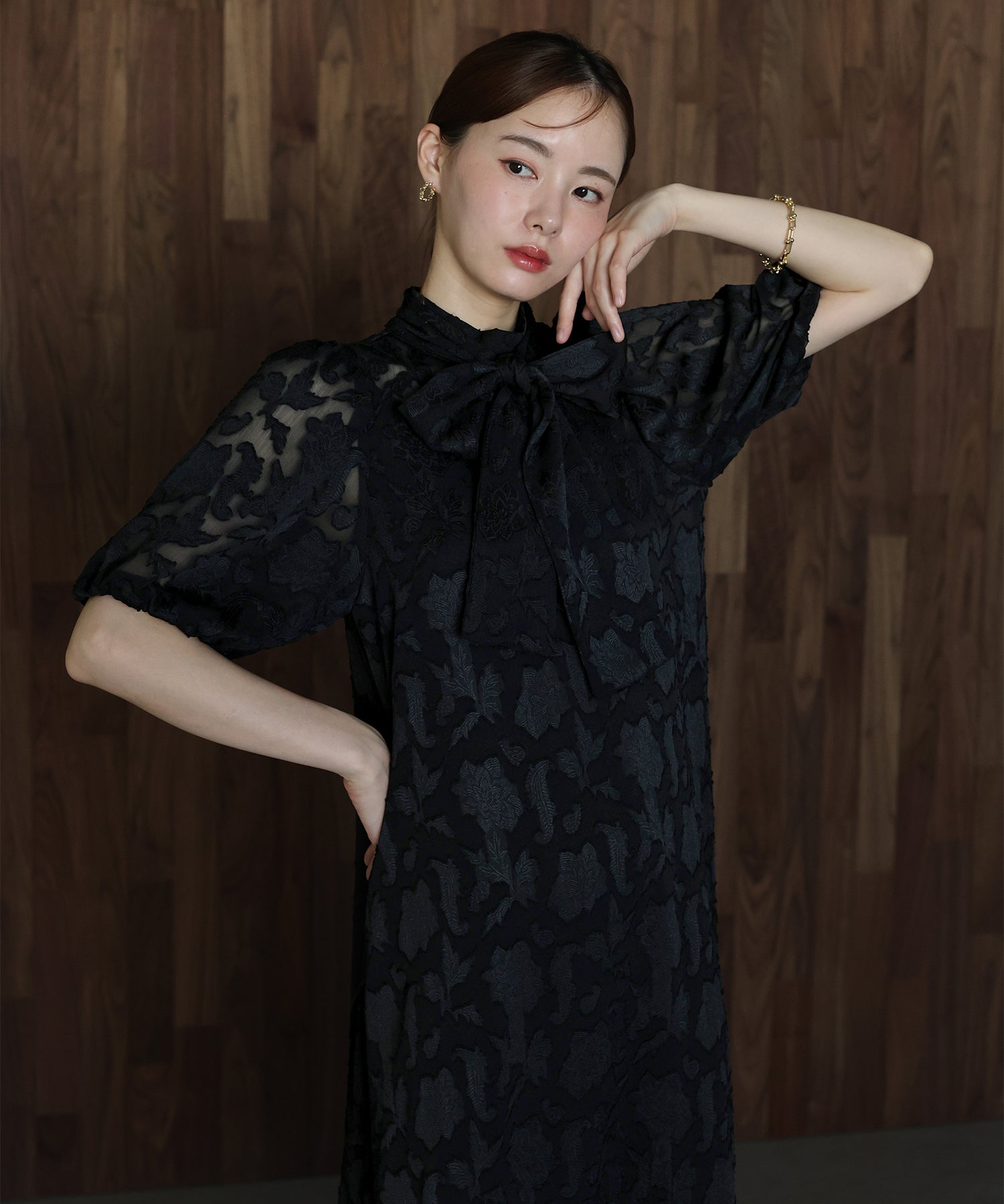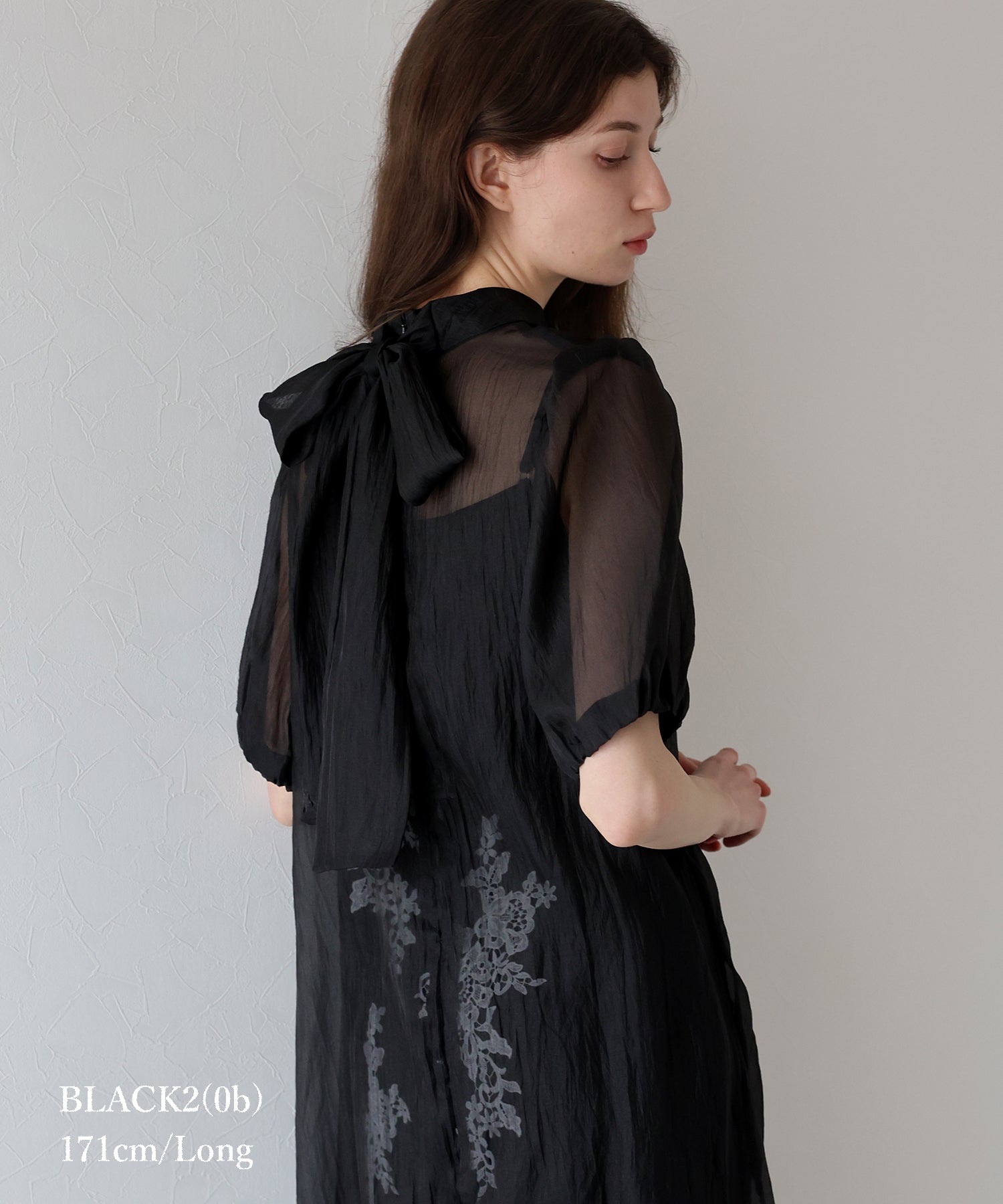 - インナー付きバックリボンジャガードドレス