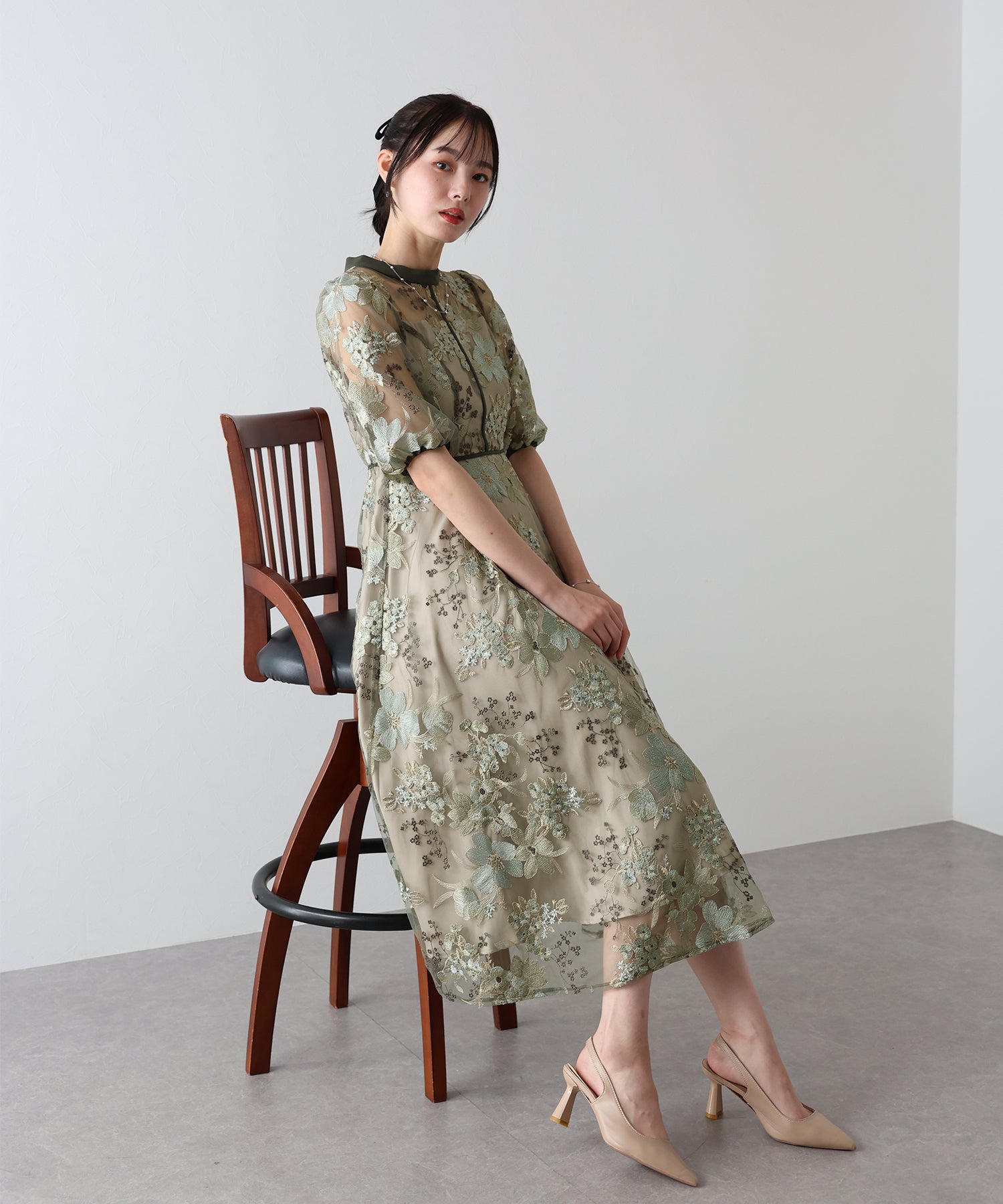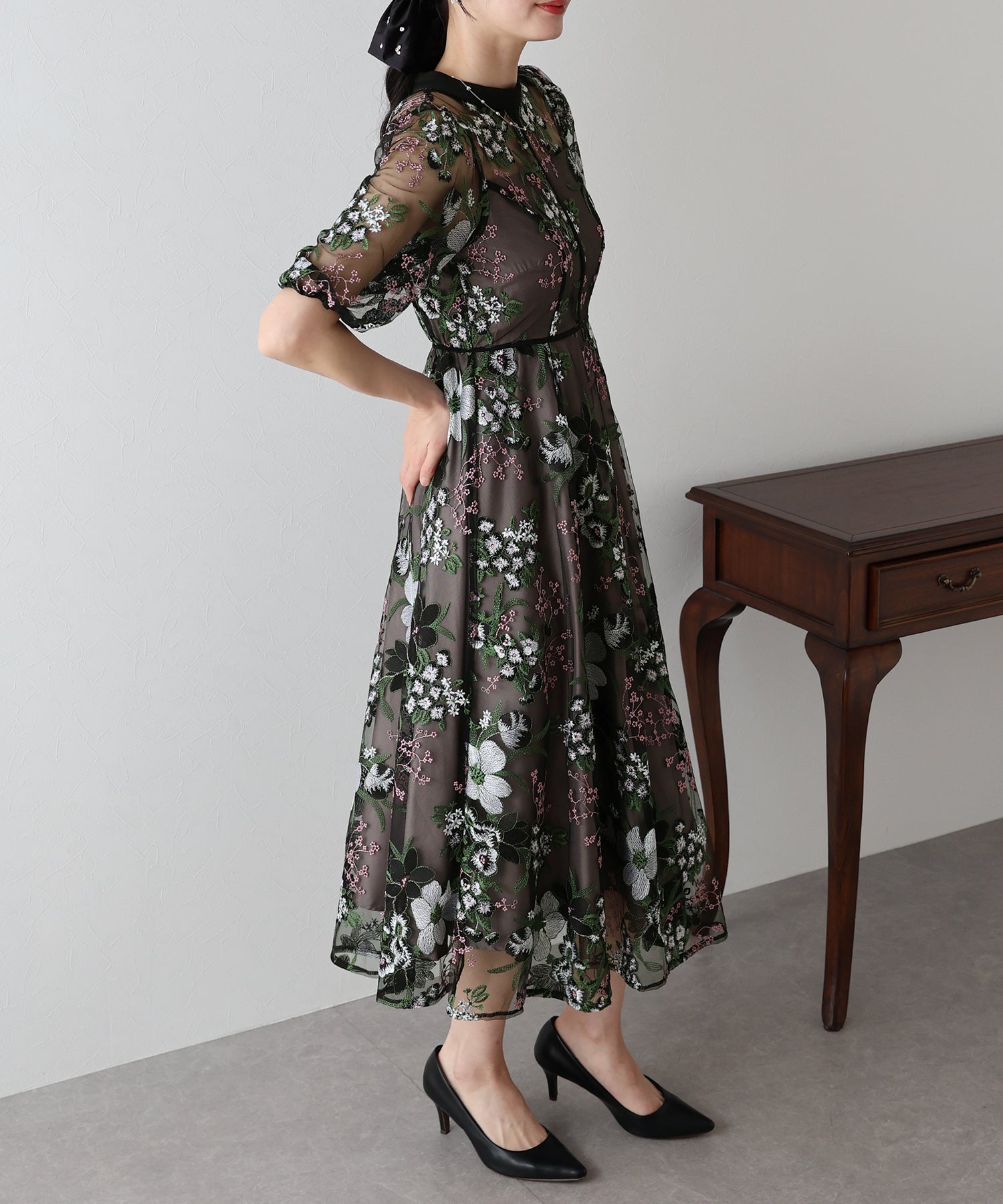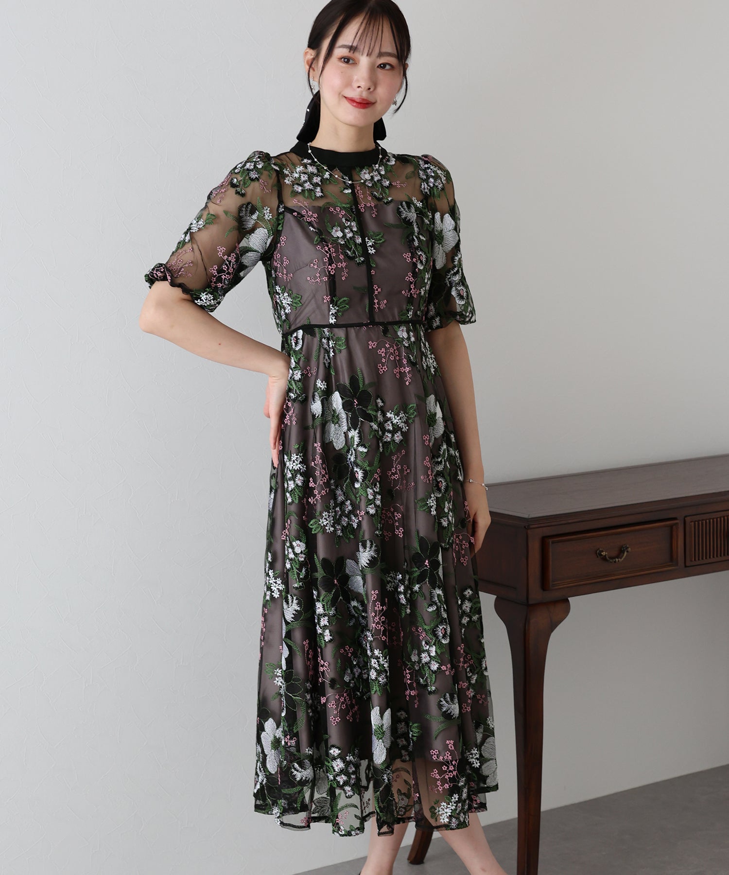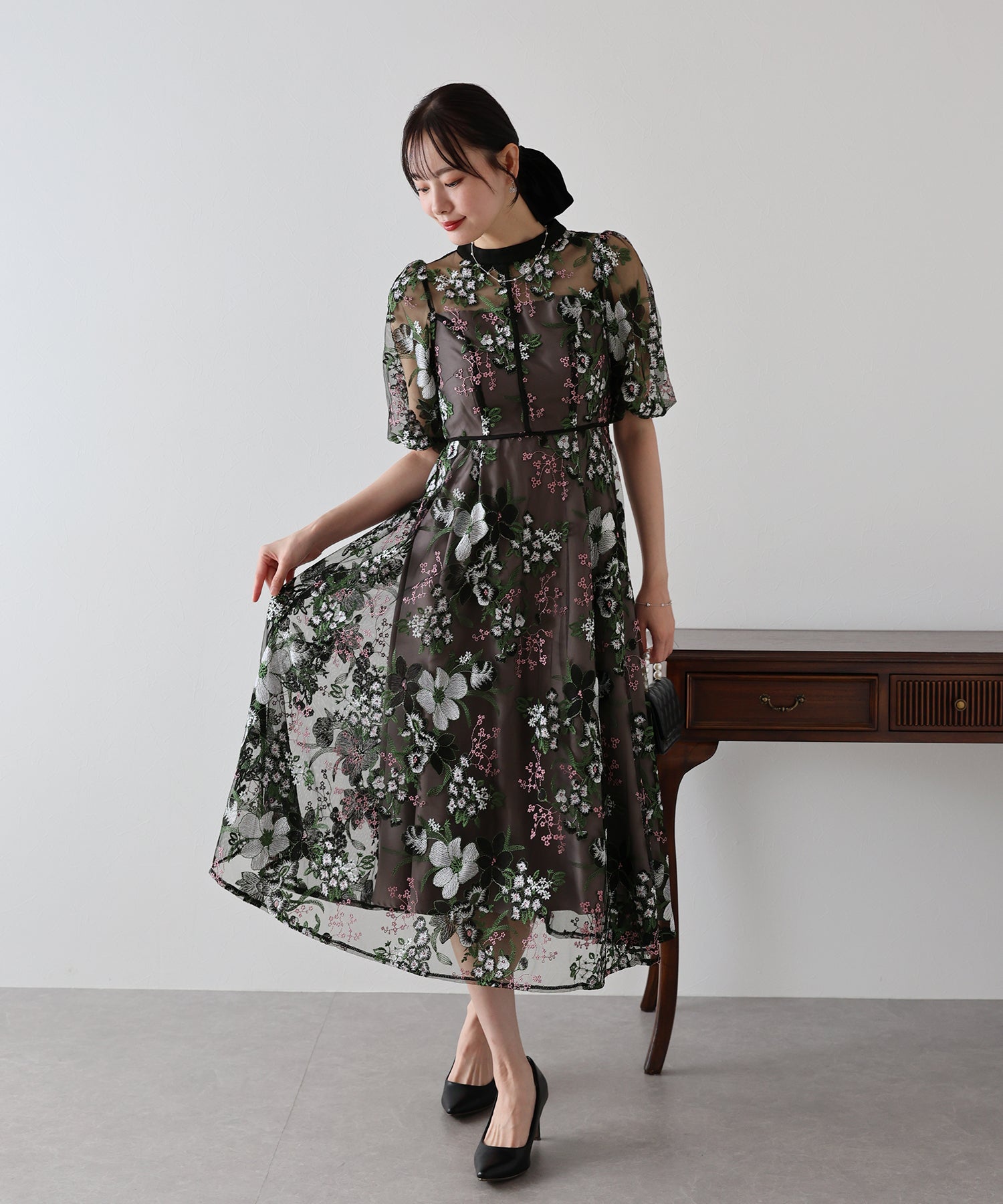 - 【TIME SALE】フラワーエンブロイダリ―ドレス