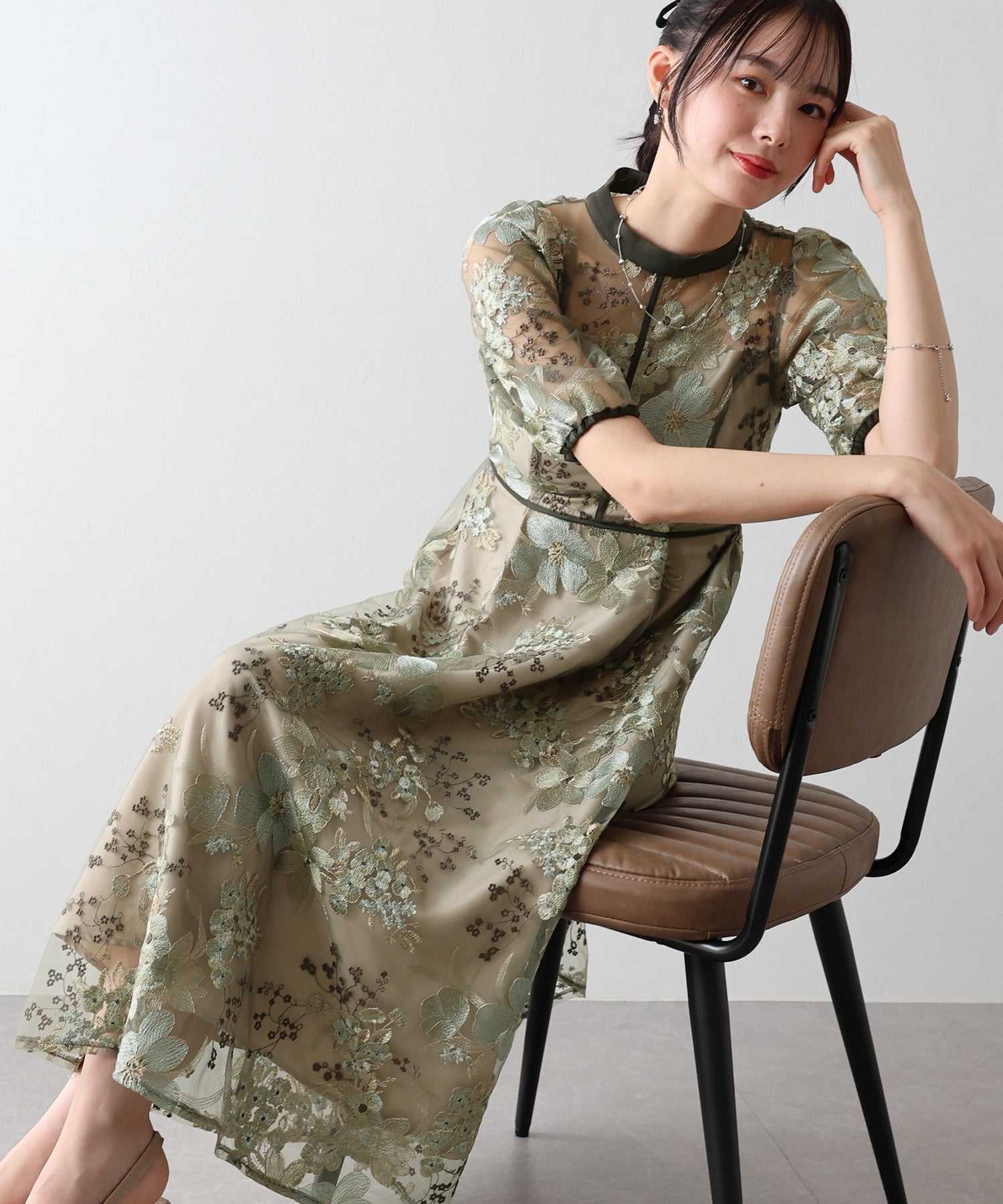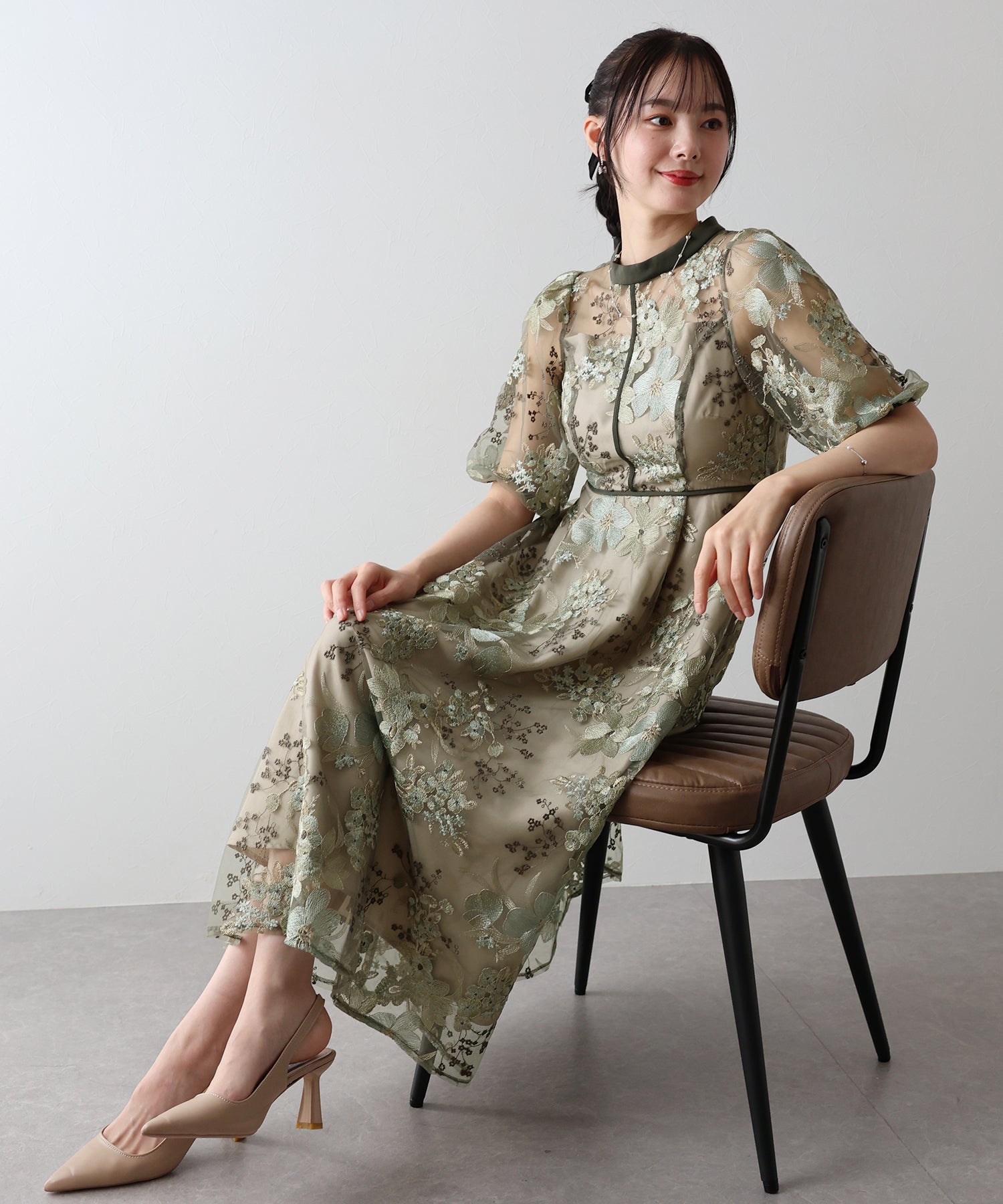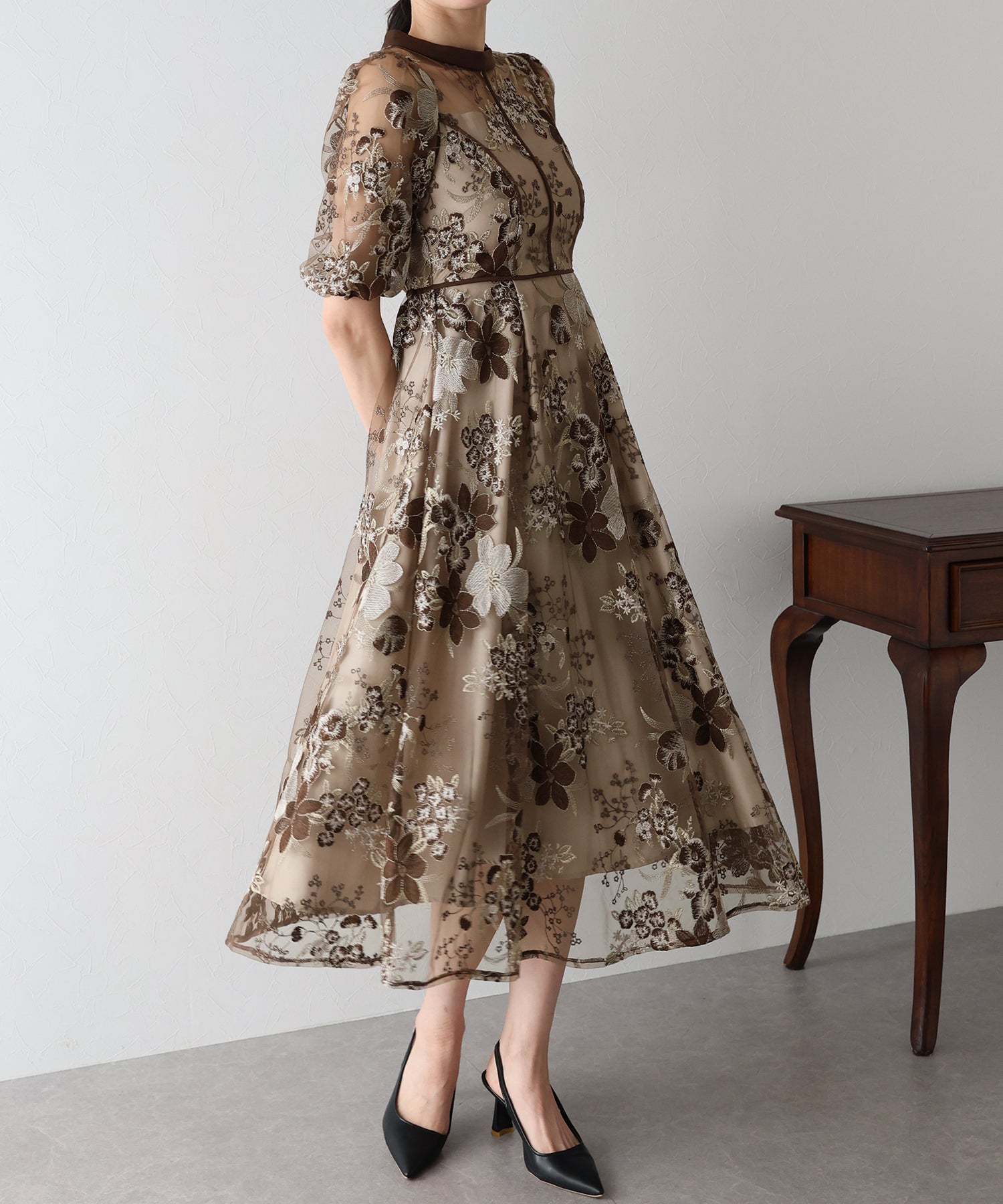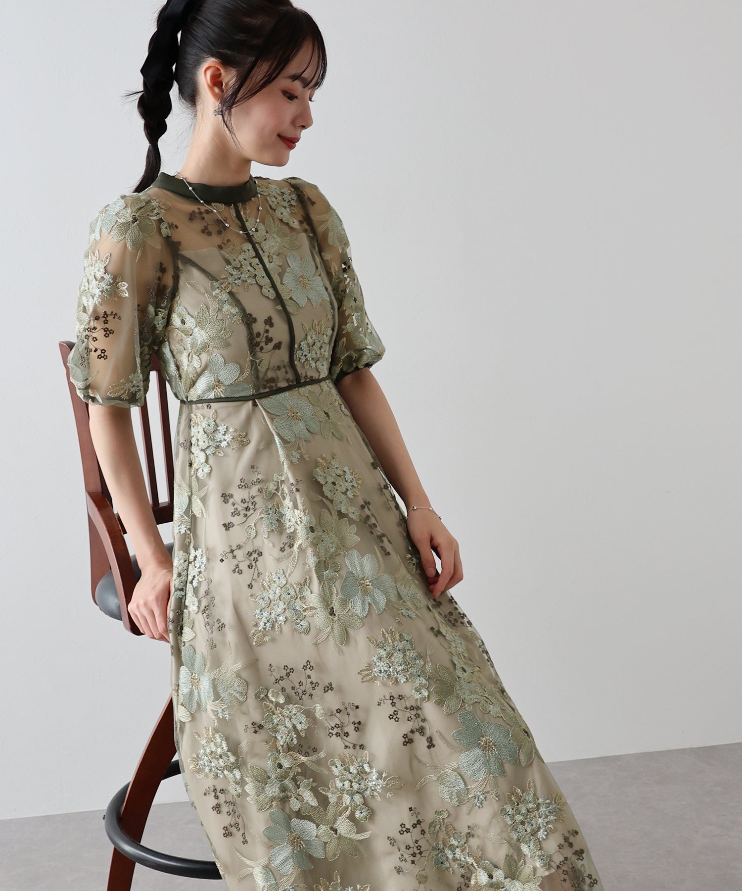 - 【TIME SALE】フラワーエンブロイダリ―ドレス