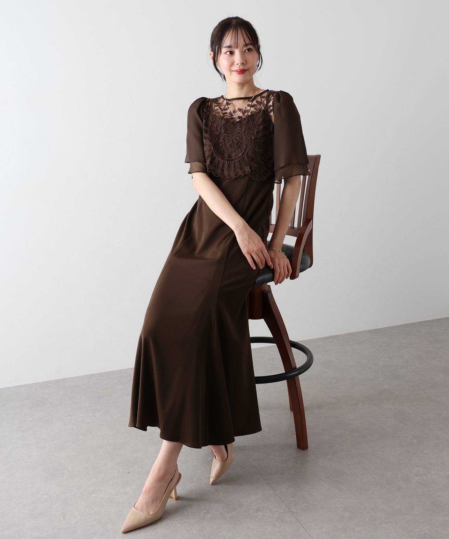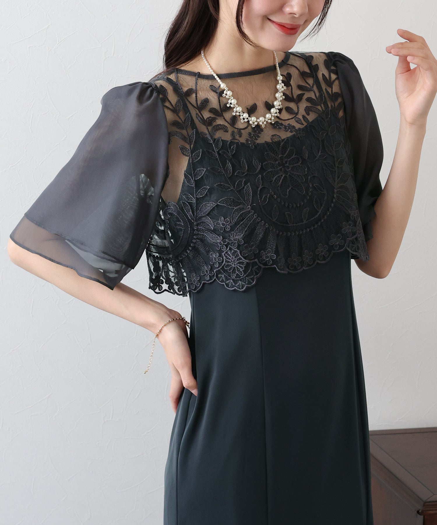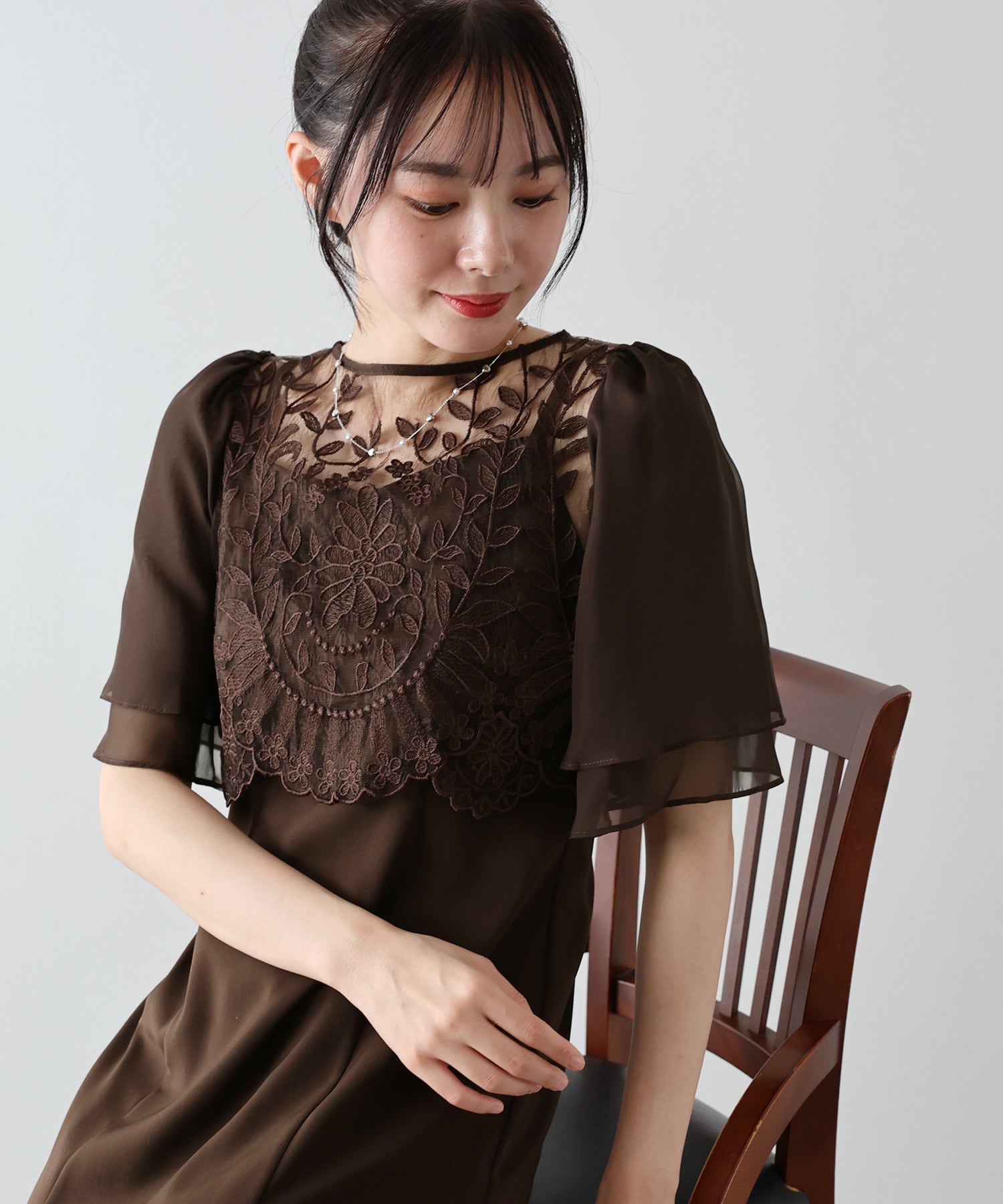 | 素材 | <ブラウス>刺繍レース地: ポリエステル100% シフォン地: ポリエステル100% <ワンピース>表地:ポリエステル100% 裏地:ポリエステル100% |