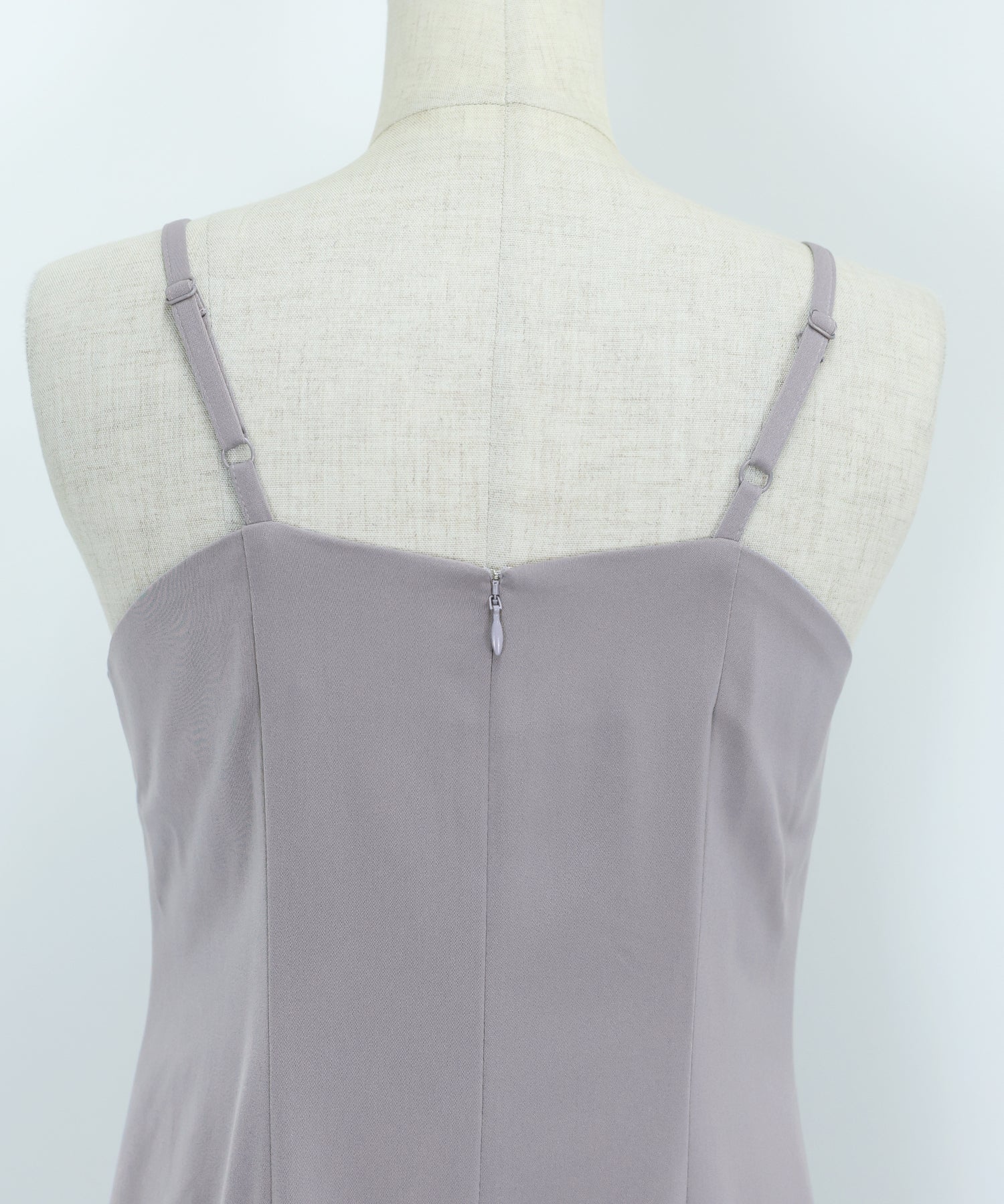 キャミドレスはボディラインを拾いすぎないソフトマーメイドシルエットです。