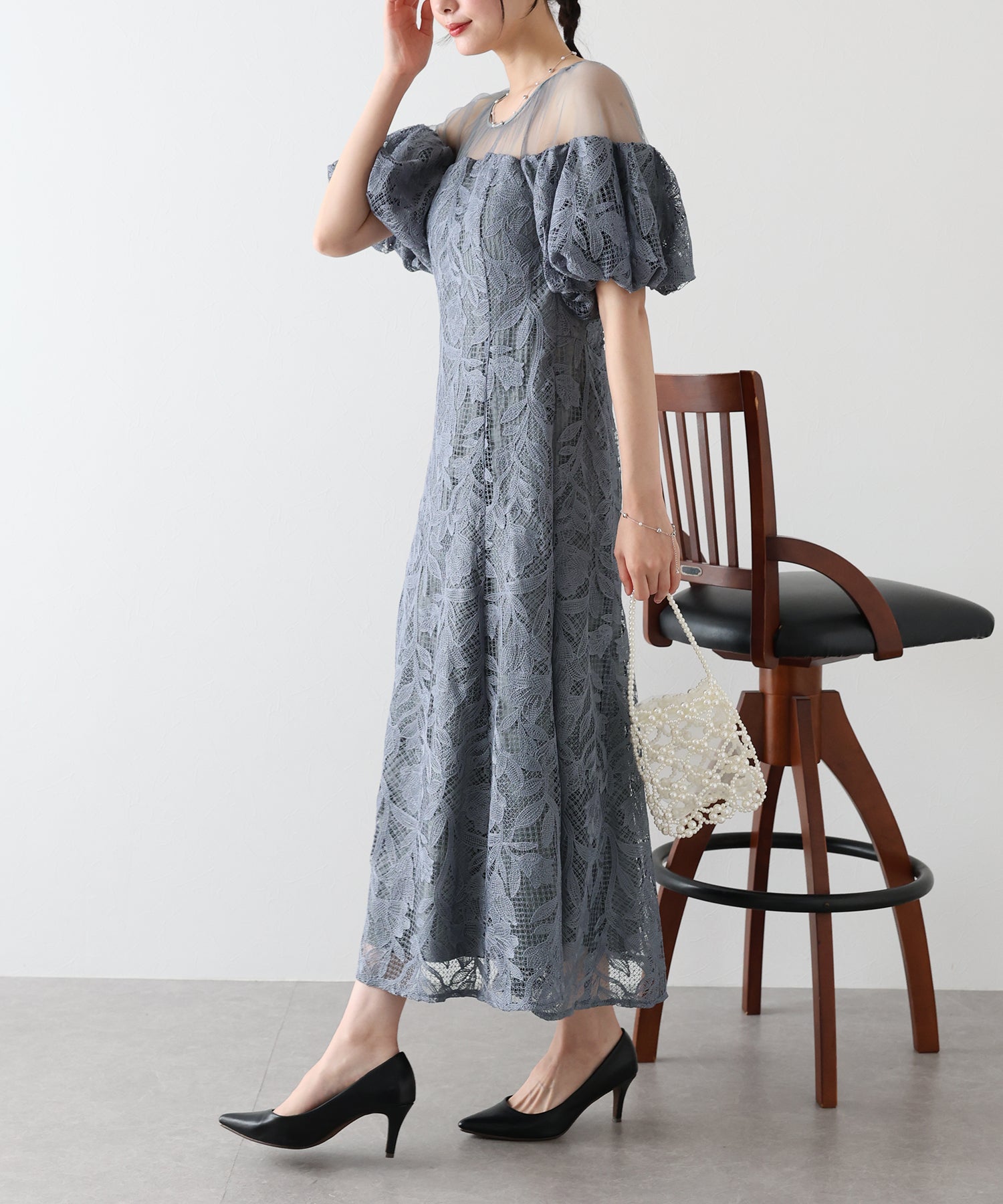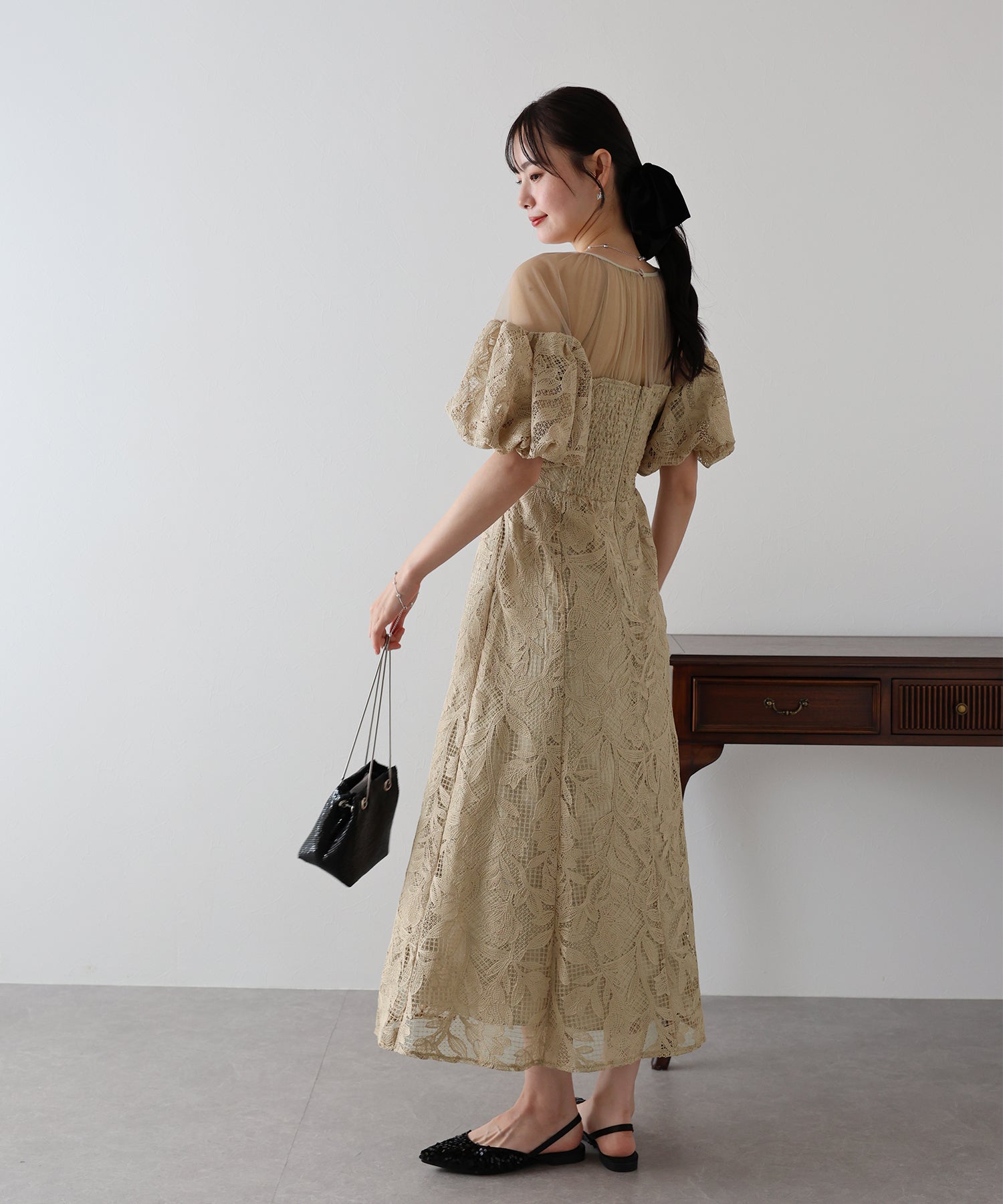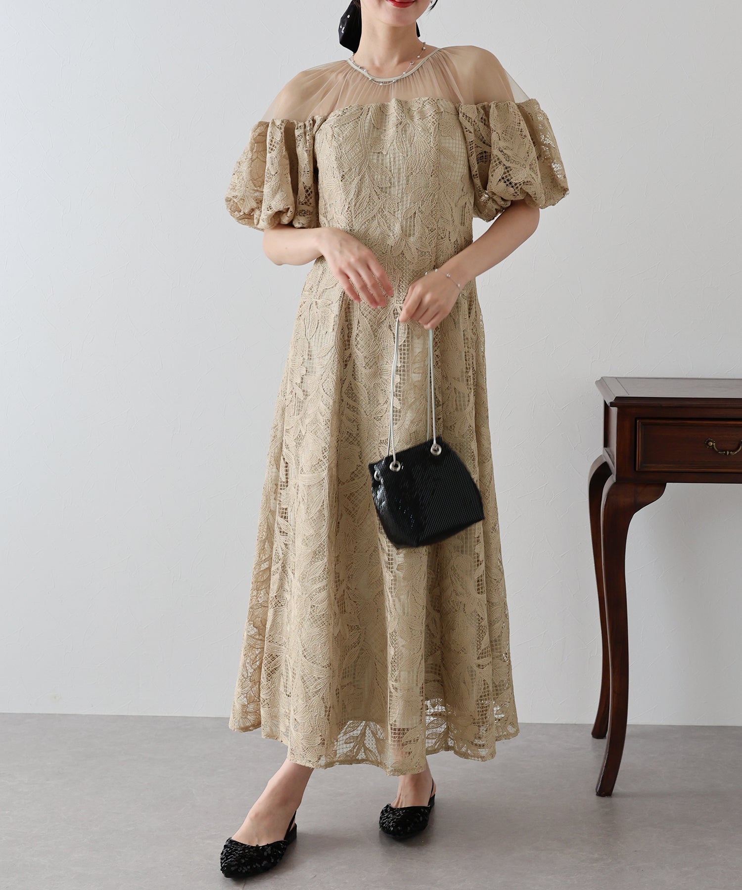 ?STYLING 結婚式の披露宴にはもちろん、二次会などのパーティードレスや謝恩会?同窓会など大切な日にもぴったり。 パーティーシーンではパンプスやミニバッグで小さめにまとめて、 ディナーやお食事会にはワンピース一枚でブーツなどと合わせたコーディネートもおすすめです。