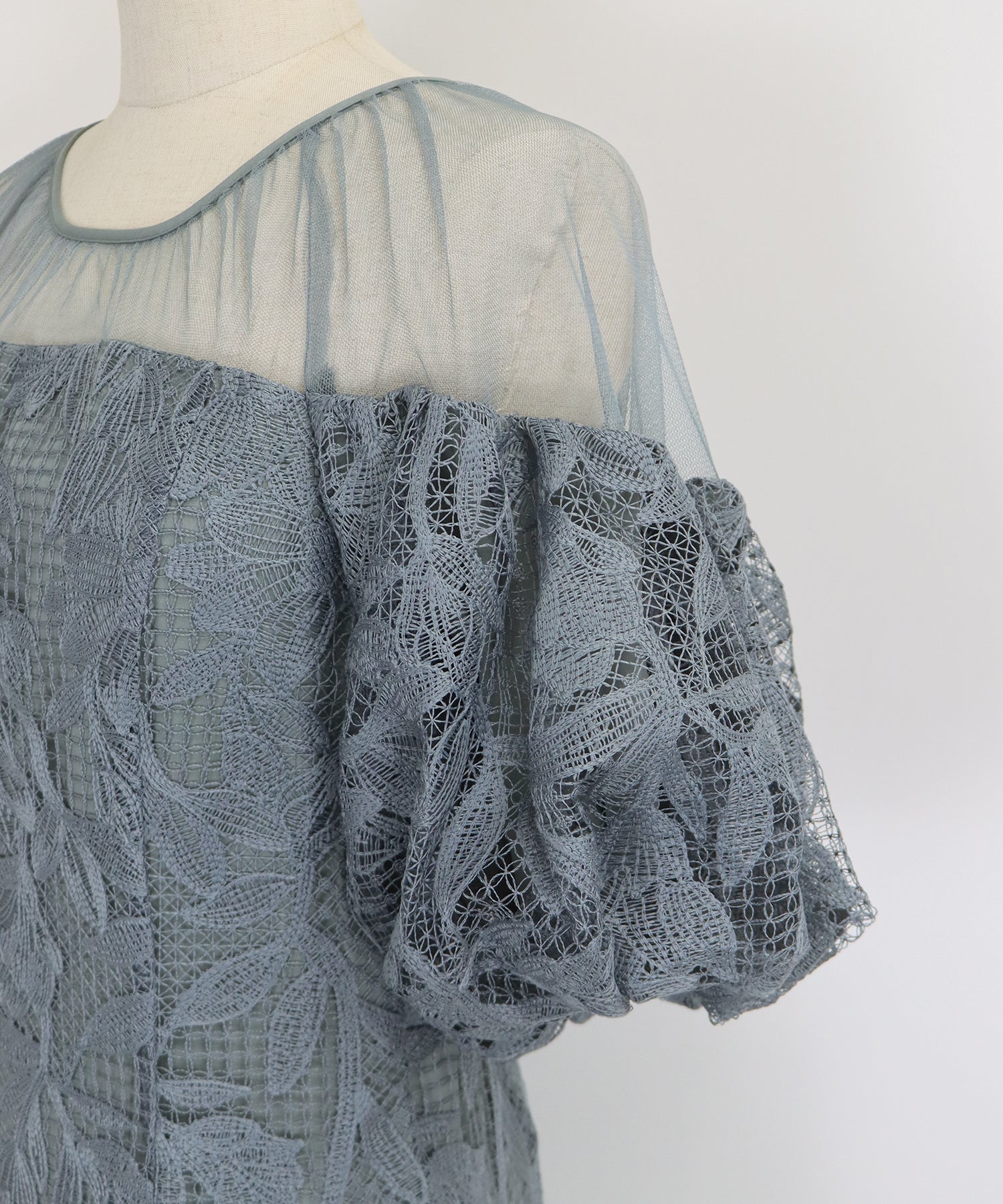| 生地 | 肩回り:柔らかいチュール素材 ワンピース部分:花柄刺繍レース素材 |
