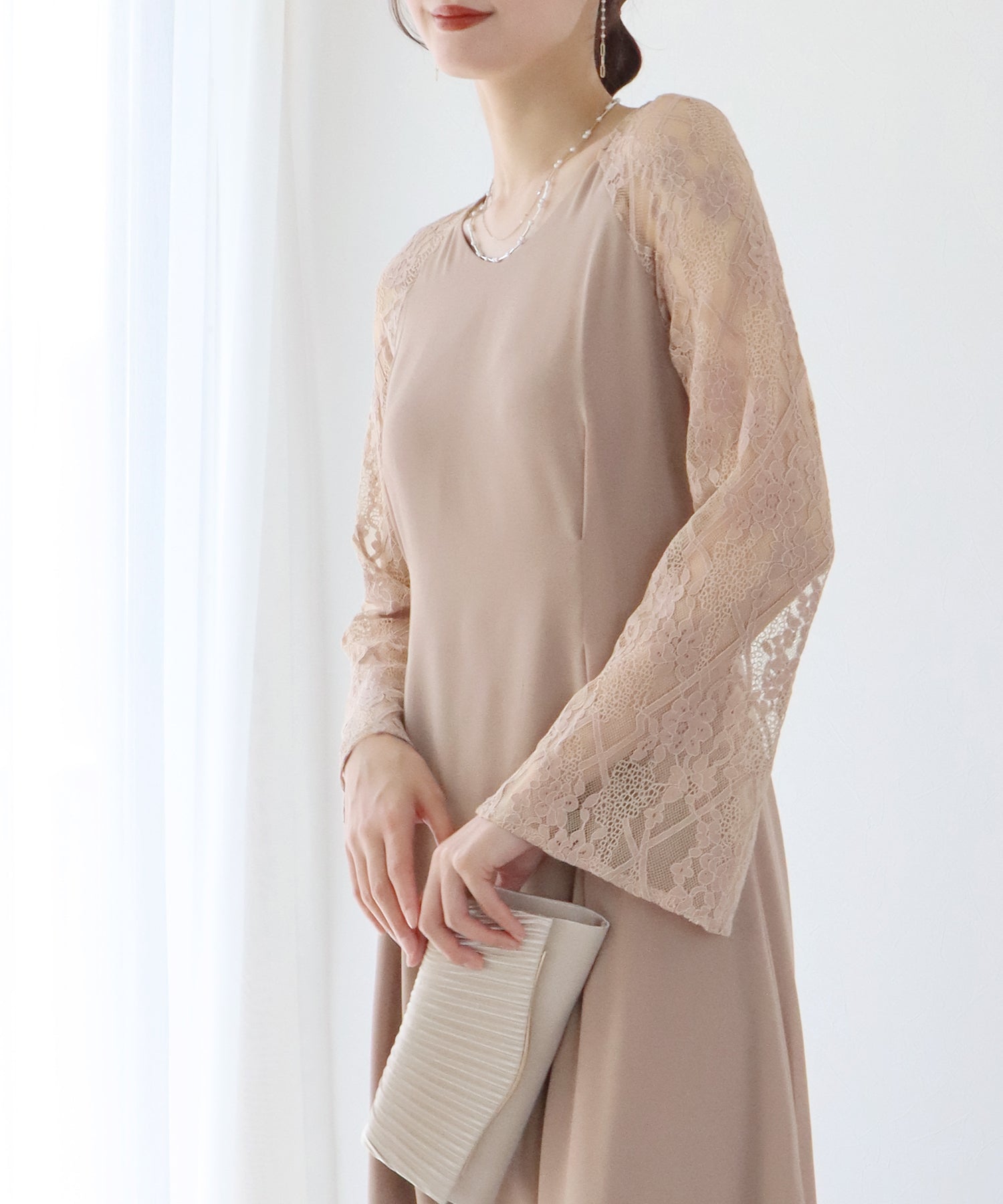 - 【SALE】レーススリットスリーブロング丈パーティードレス