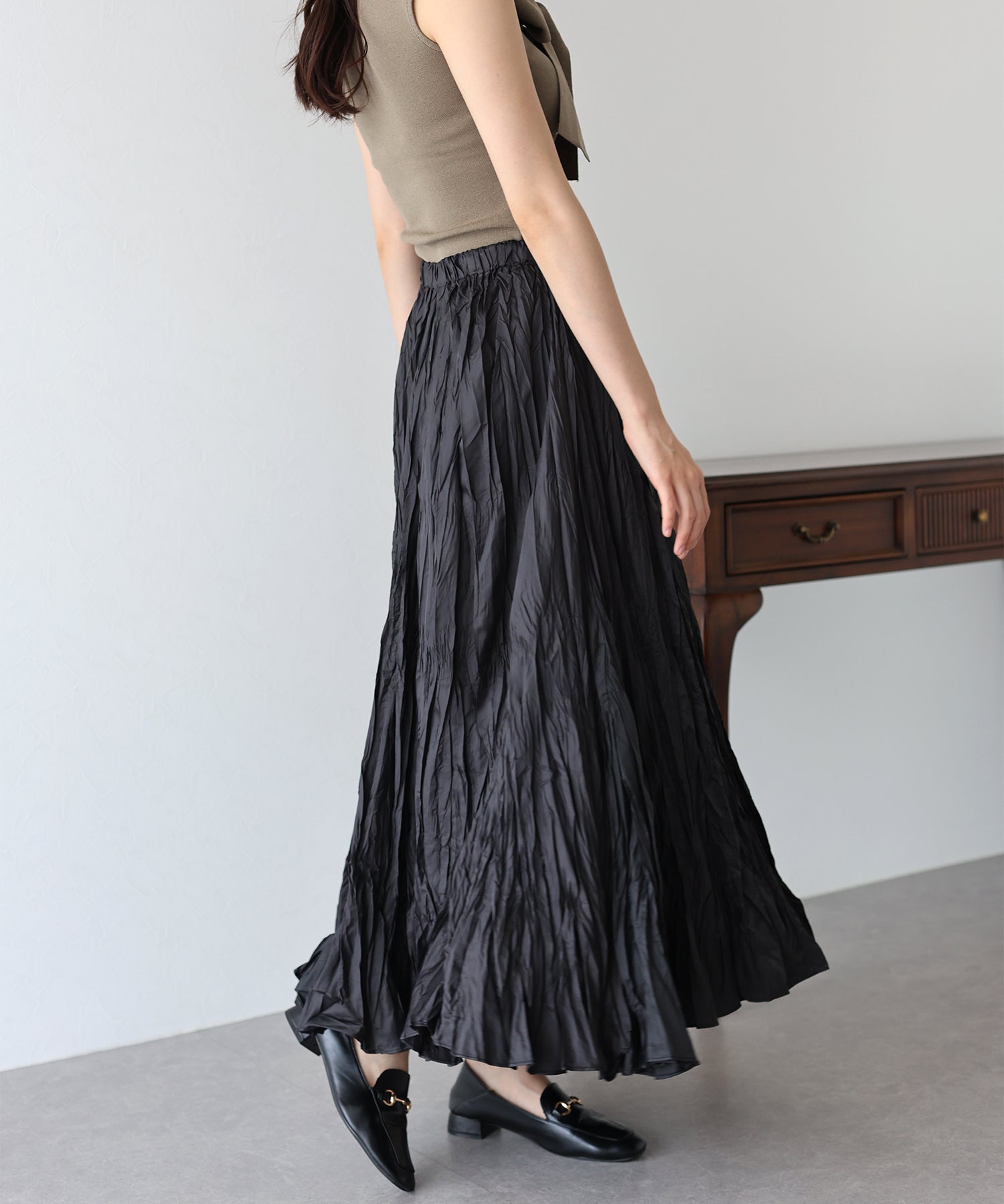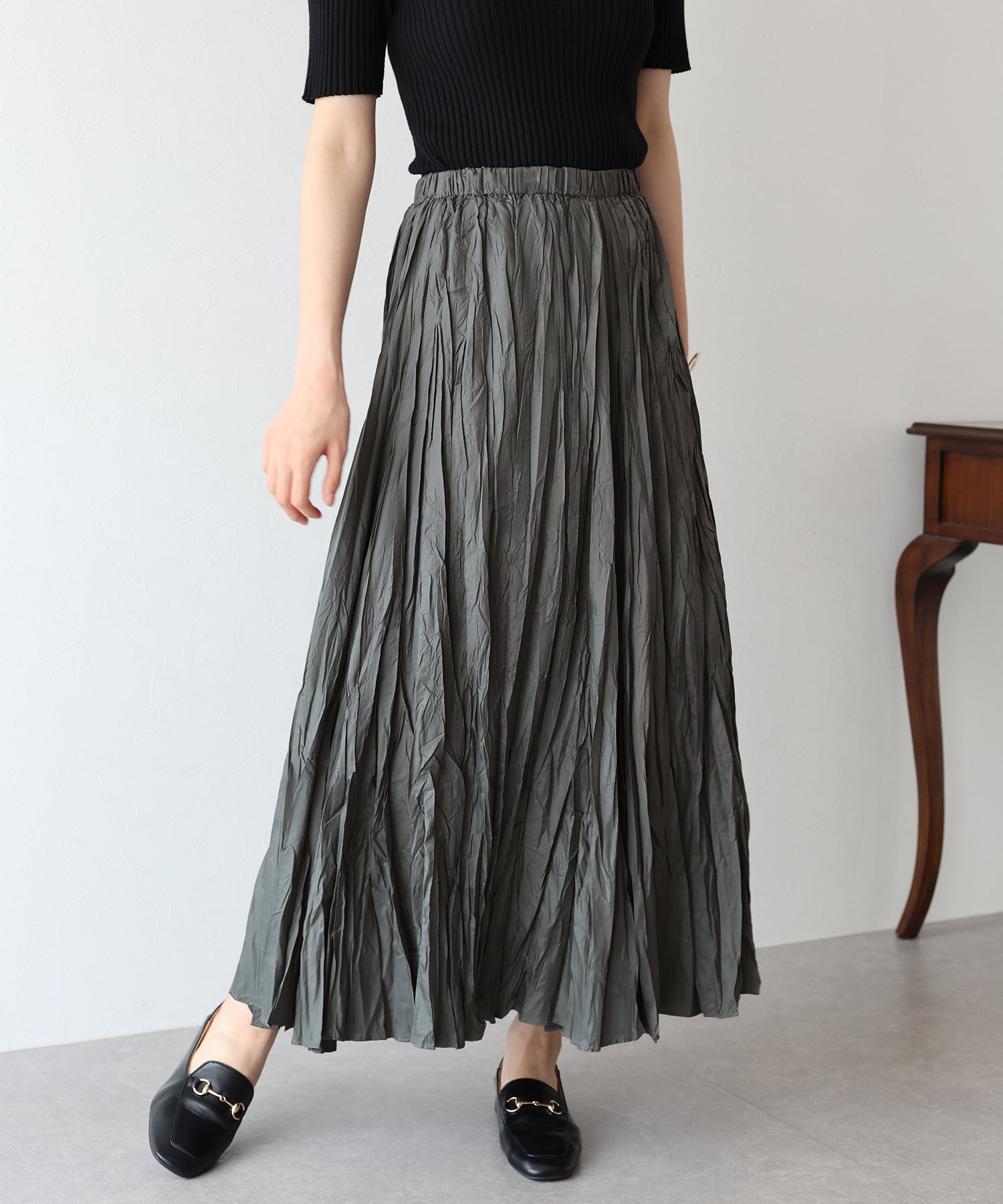 シワ加工が魅力の大人カジュアルなロングスカート