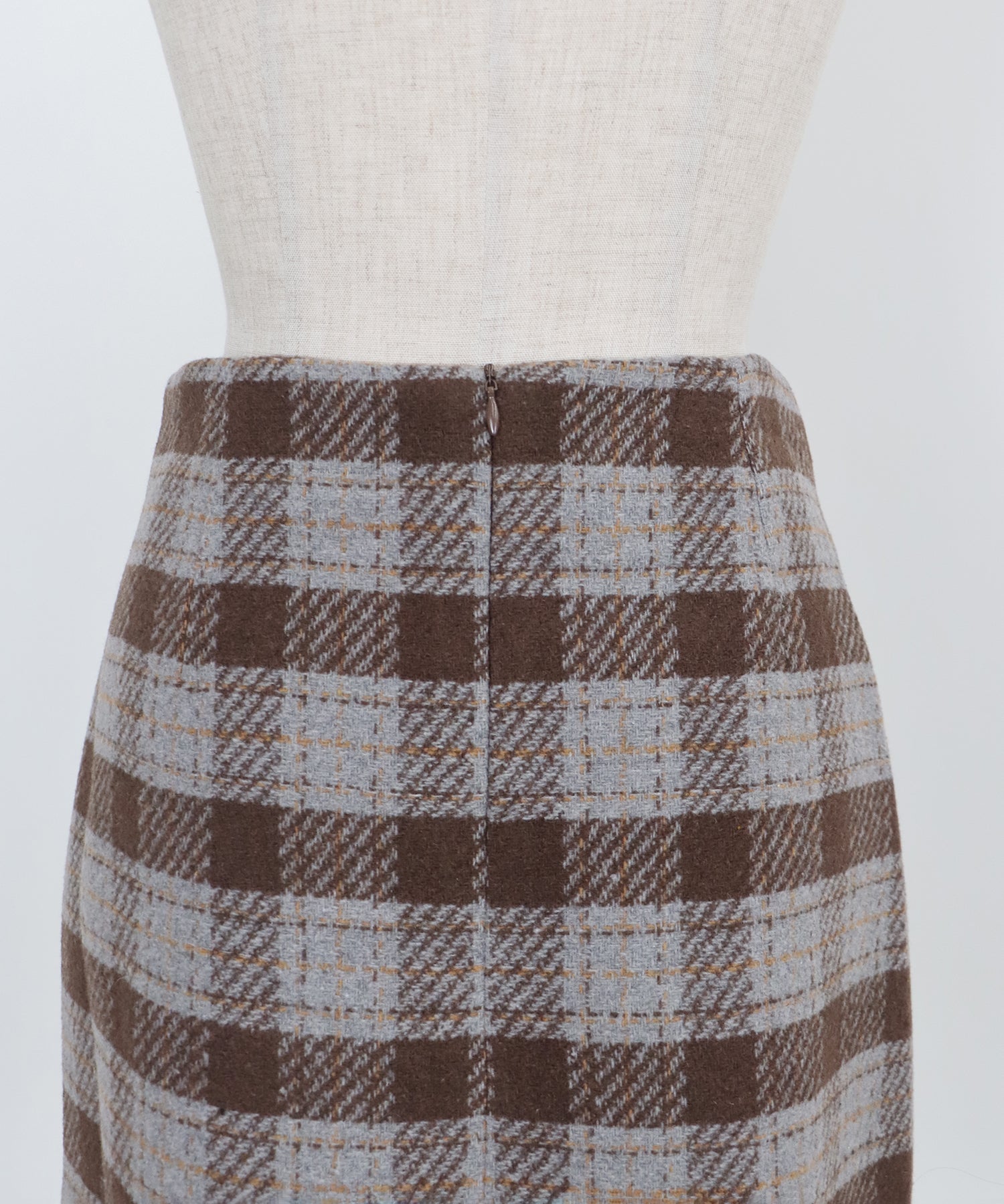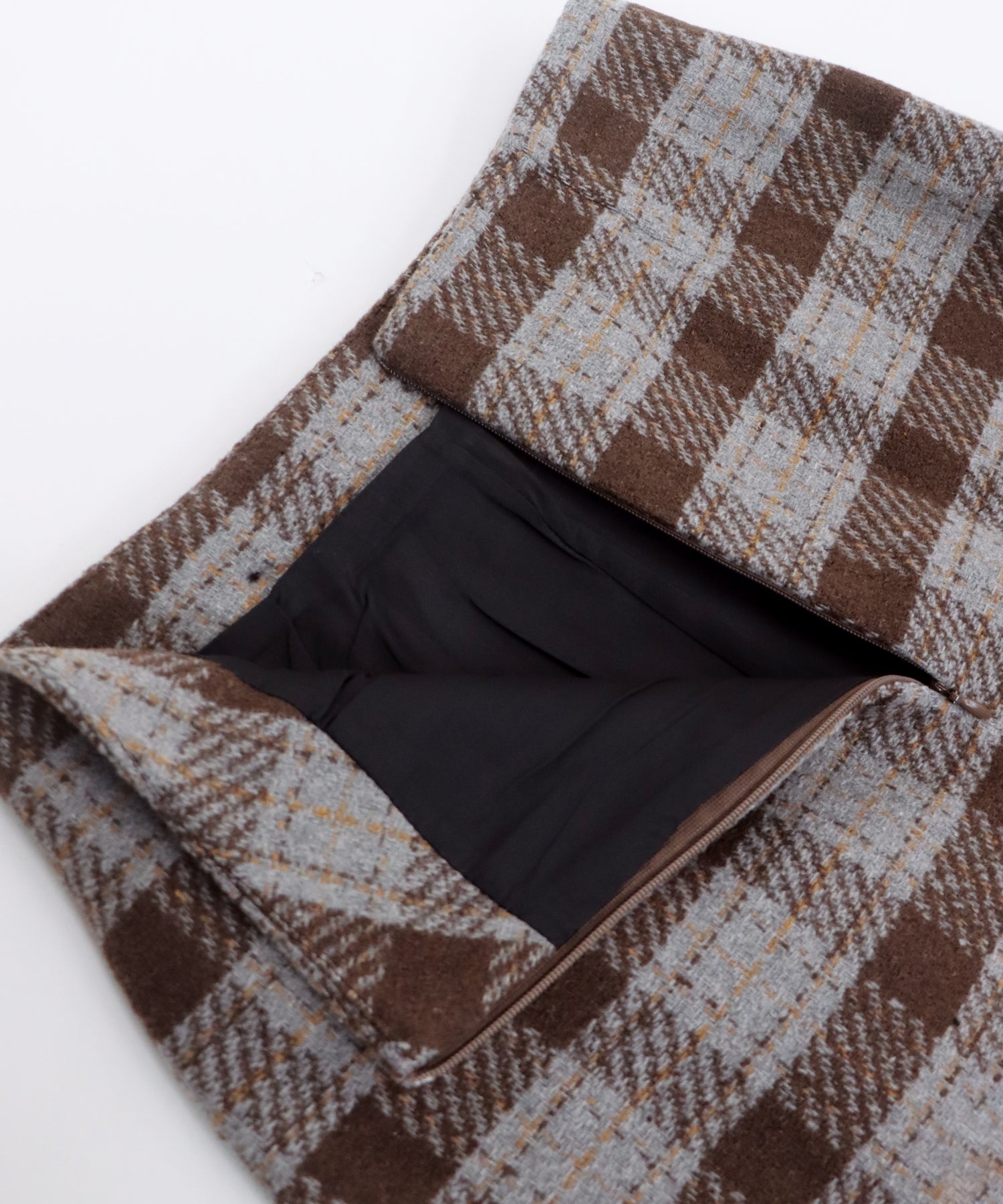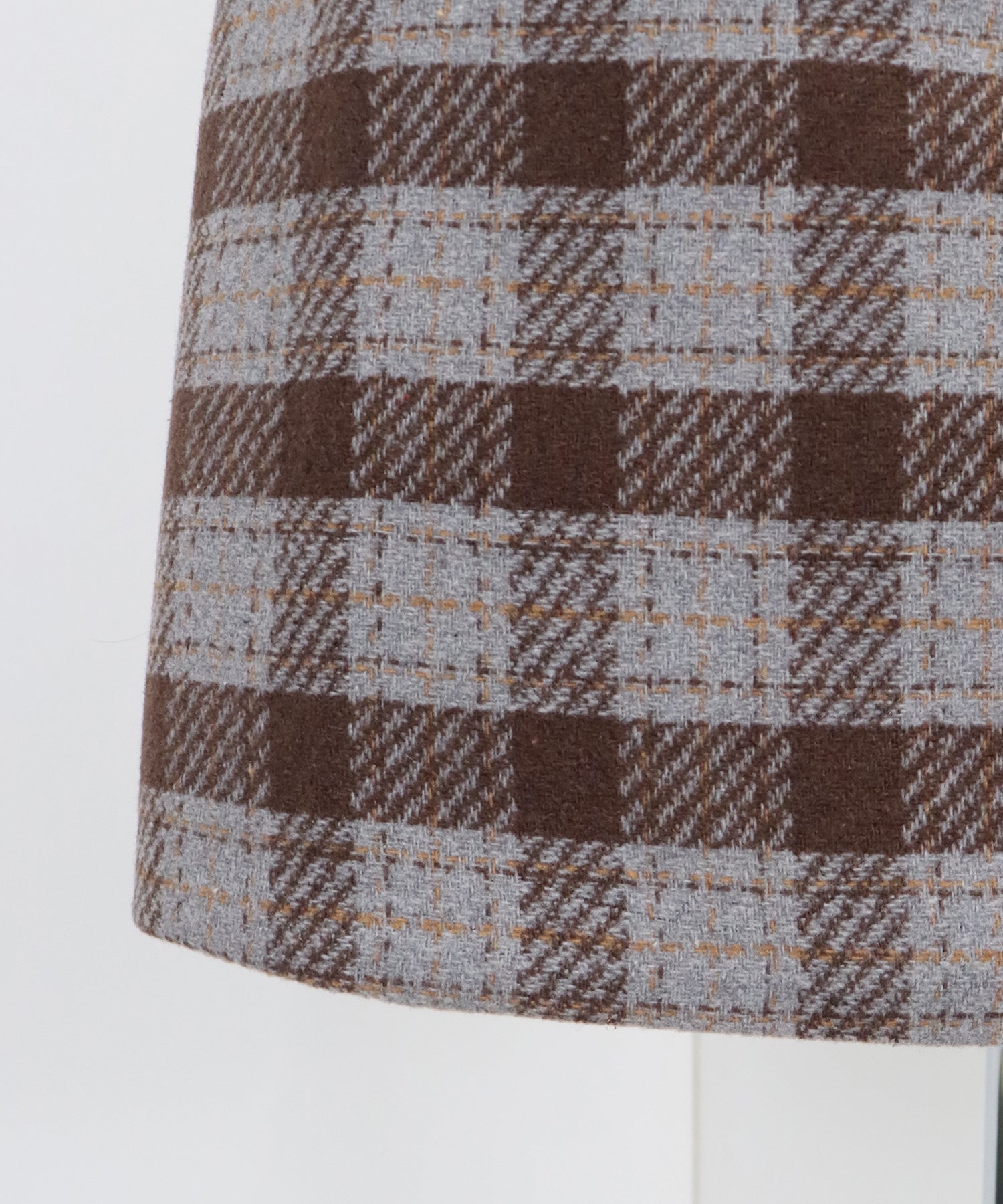 秋冬らしいやや起毛感のあるチェック素材が可愛い台形スカート。