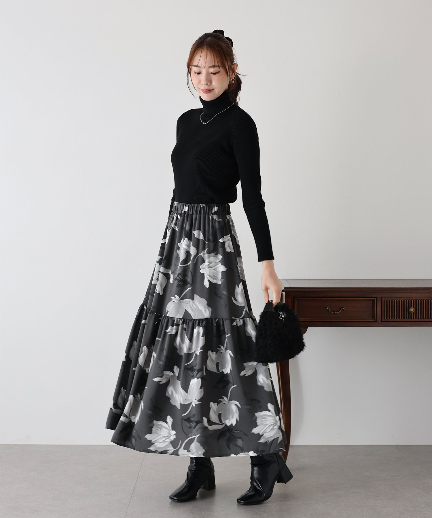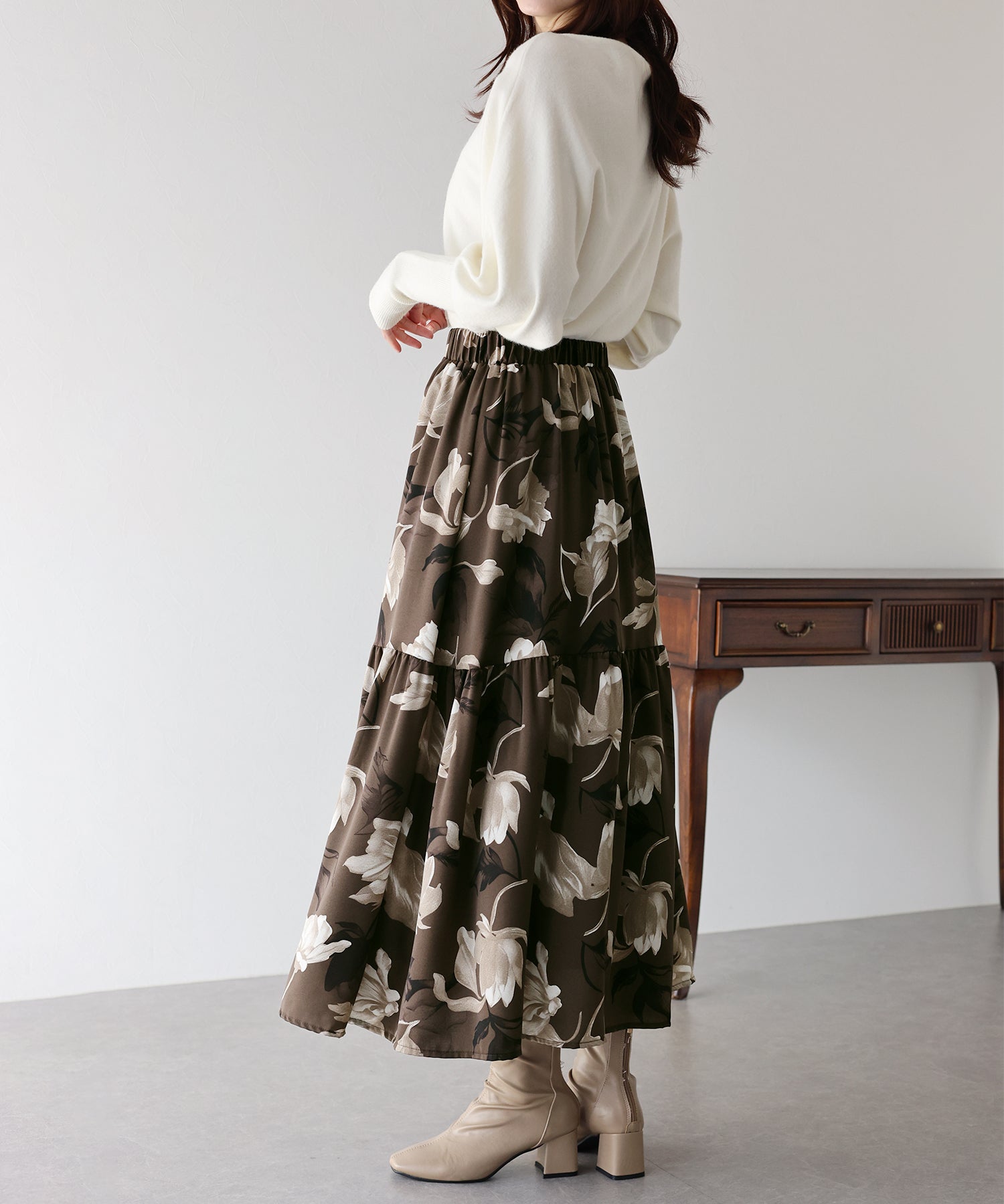 ふわっと広がるシルエットが可愛いフラワーティアードスカート