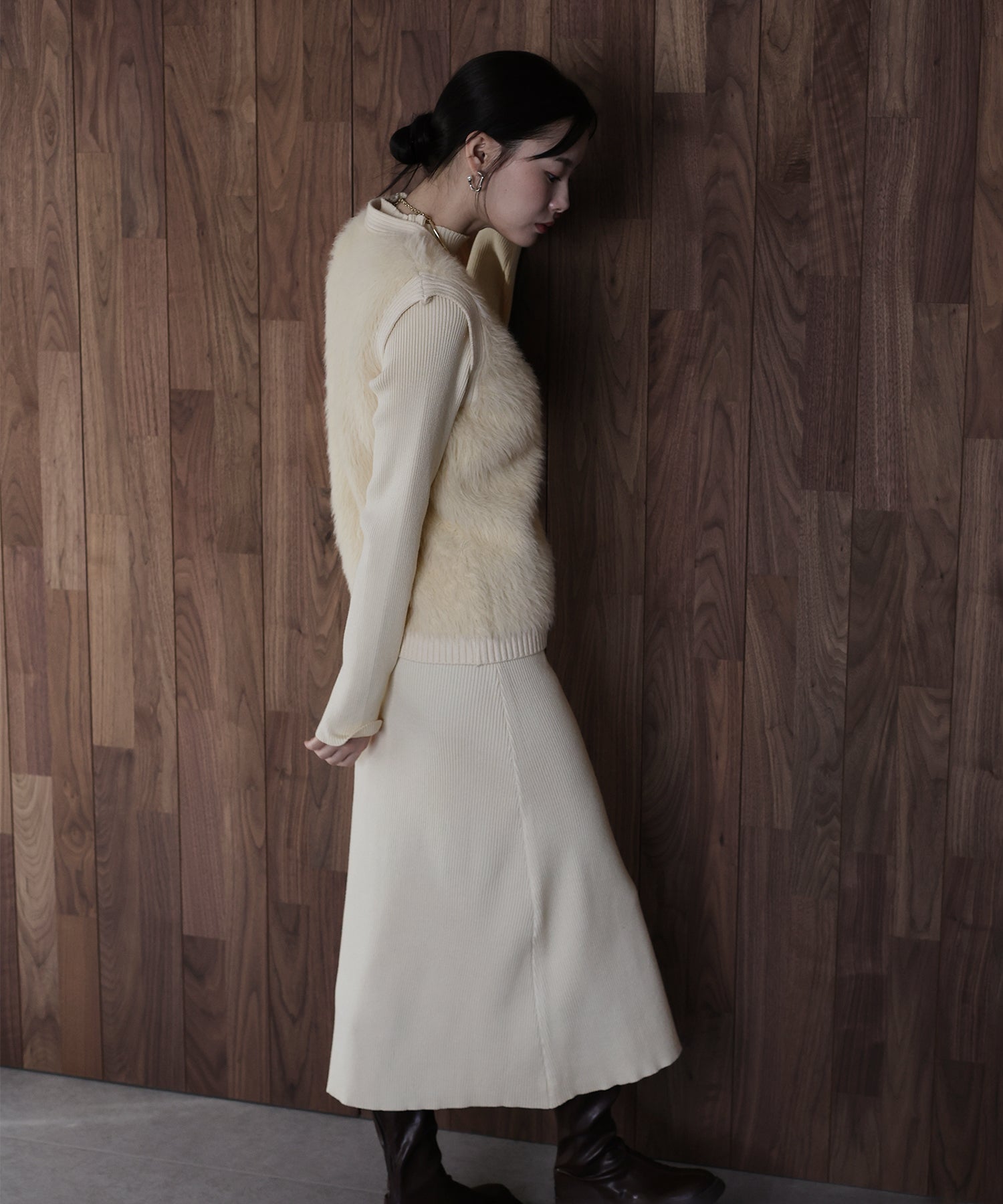 ?FABRIC シーズンライクなシャギーニット素材×なめらかな風合いのリブニット素材