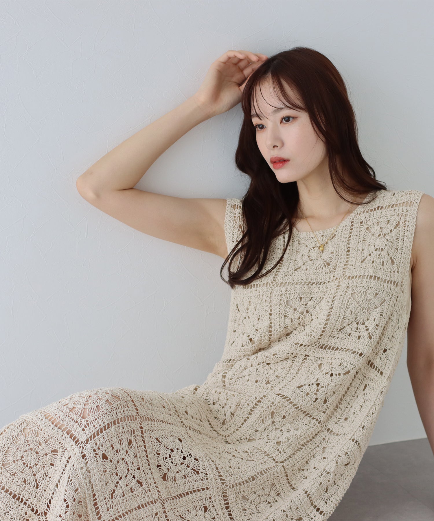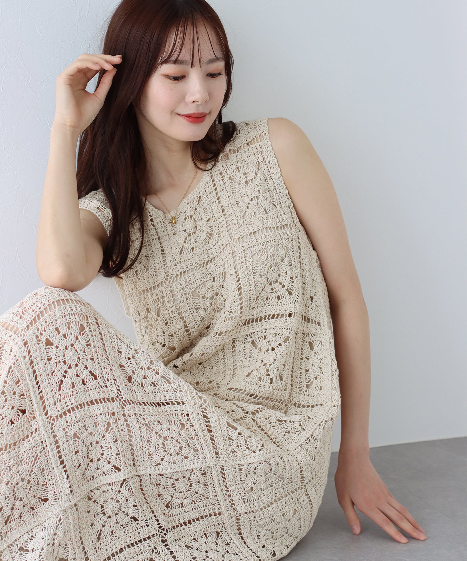 夏らしい抜け感をプラスしてくれるクロシェレースワンピース