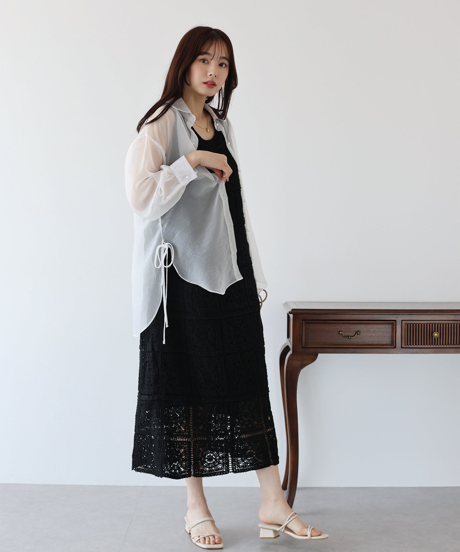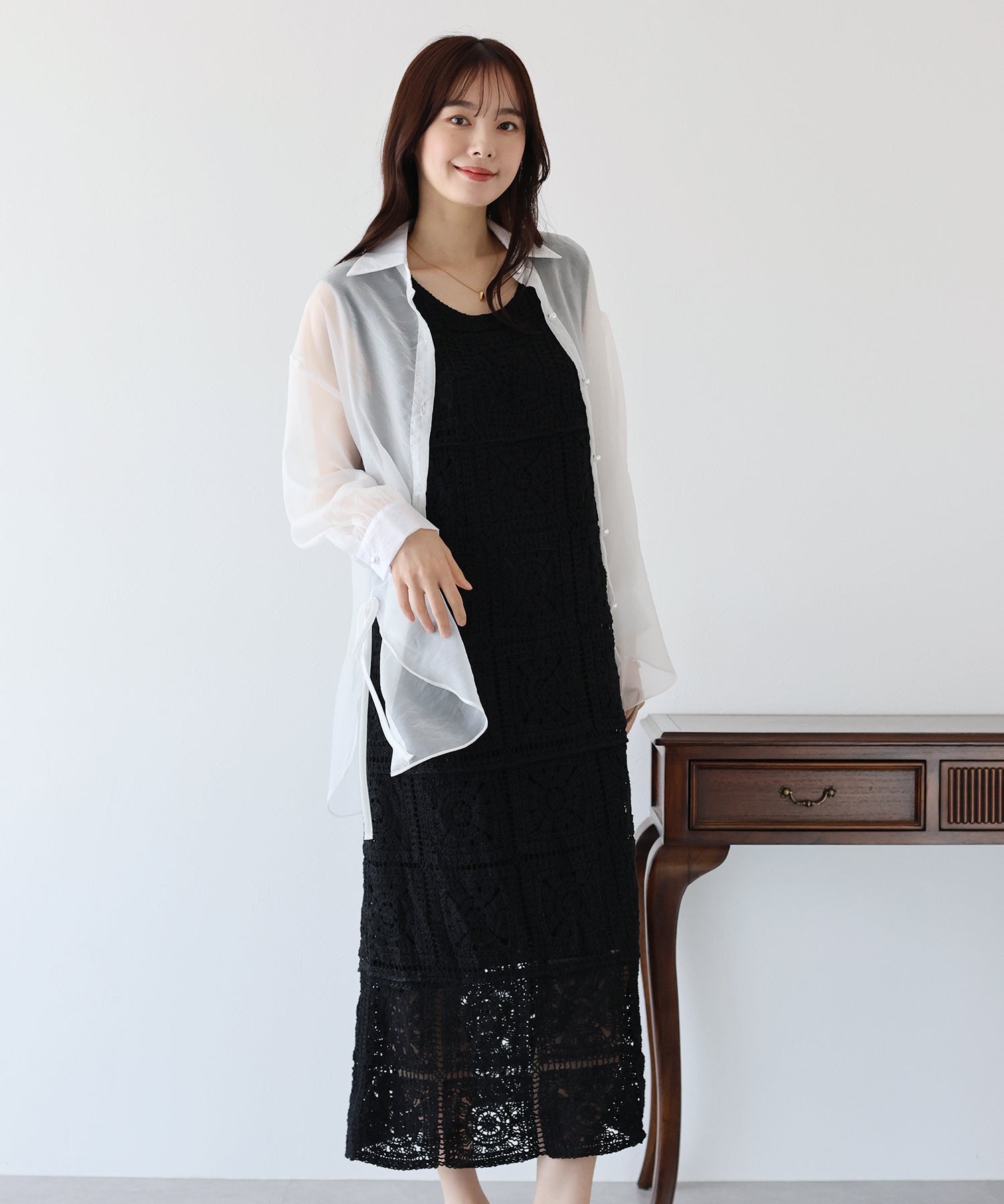 レースの透け感のある裾はどんな身長の方でも抜け感が出てスッキリと着ていただける一枚です。