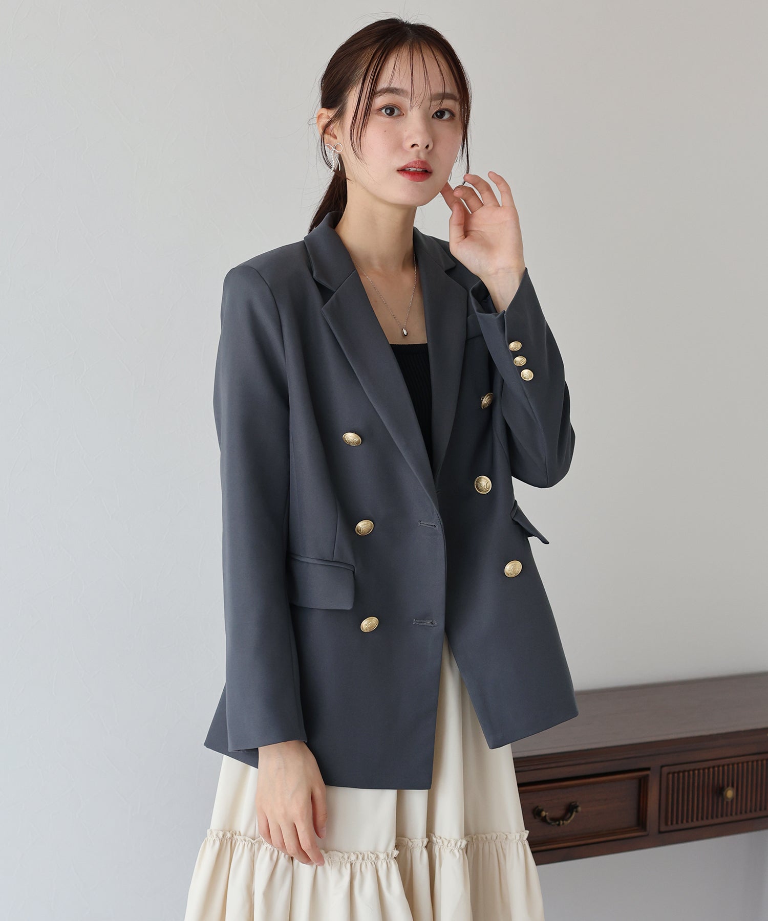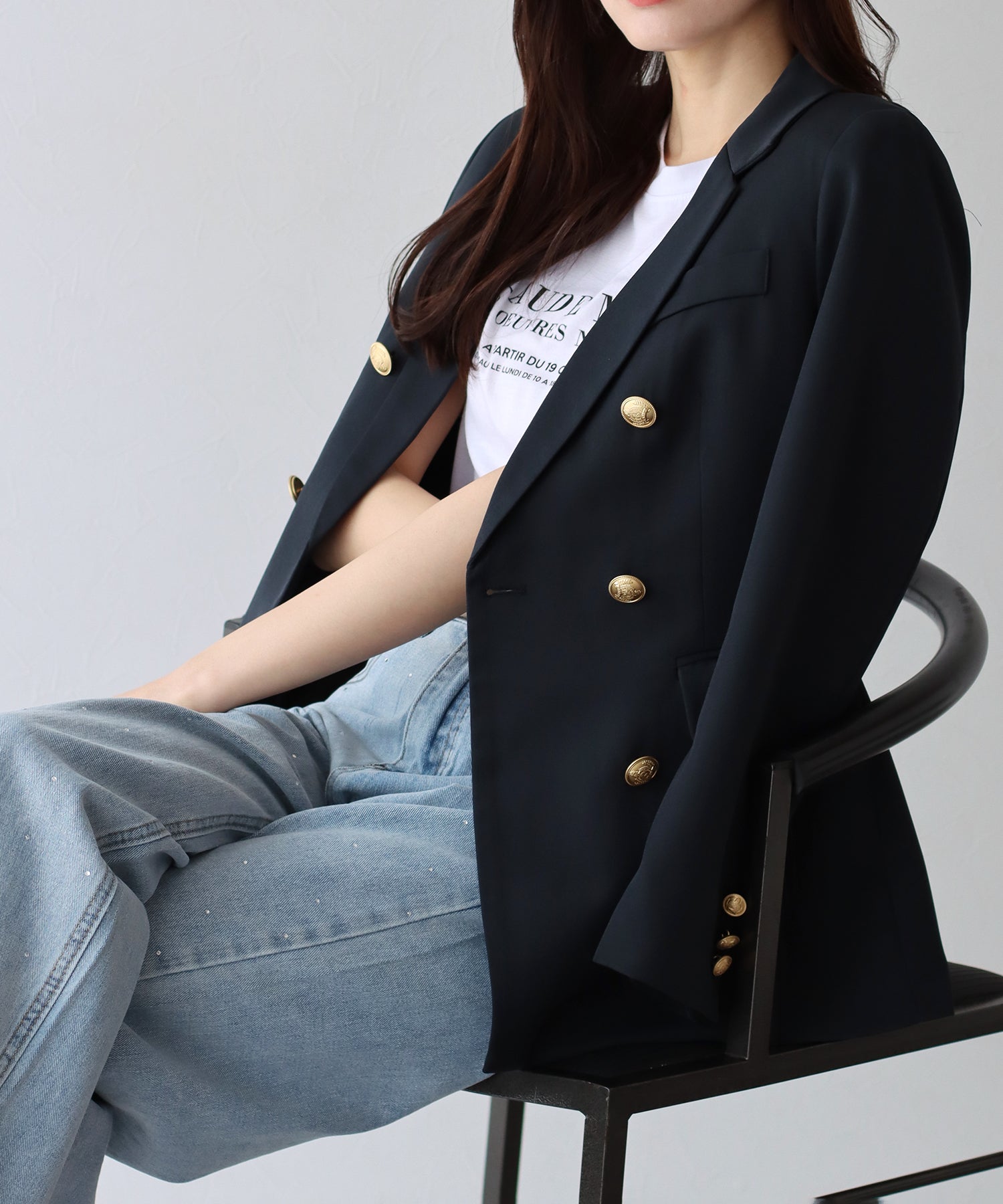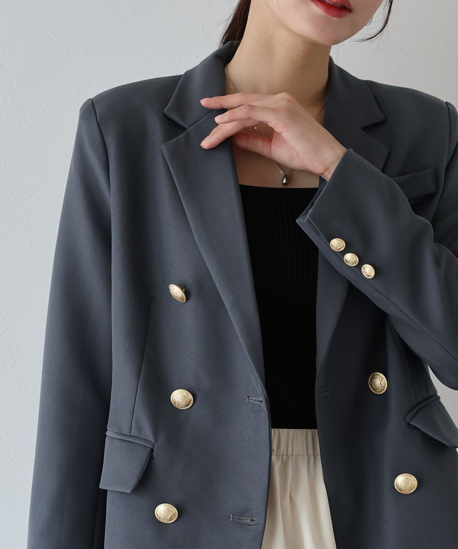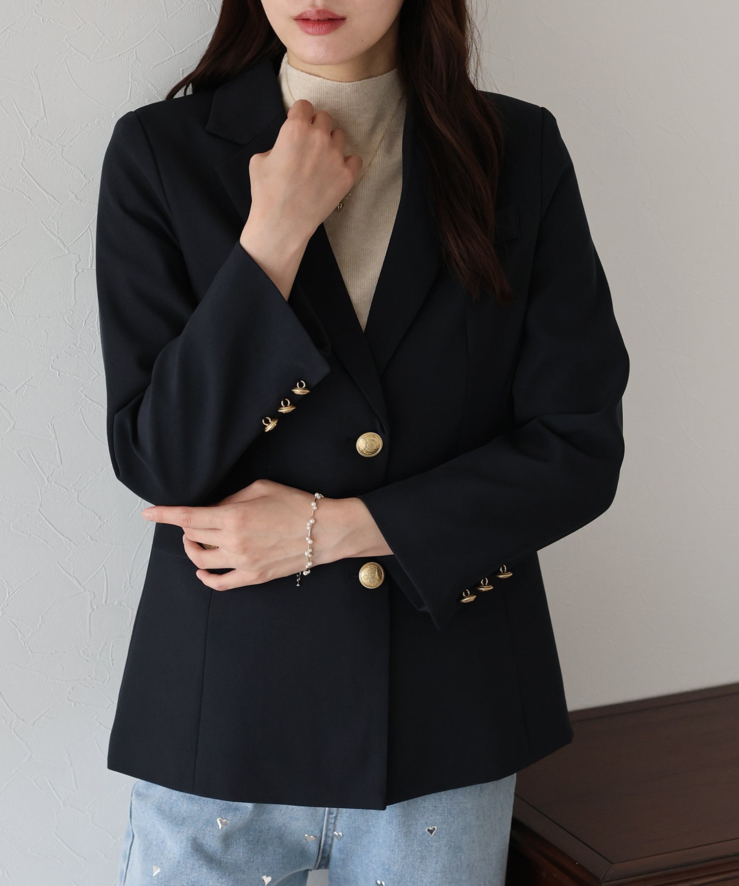 • 【TIME SALE】【ウォッシャブル】金ボタンダブルジャケット