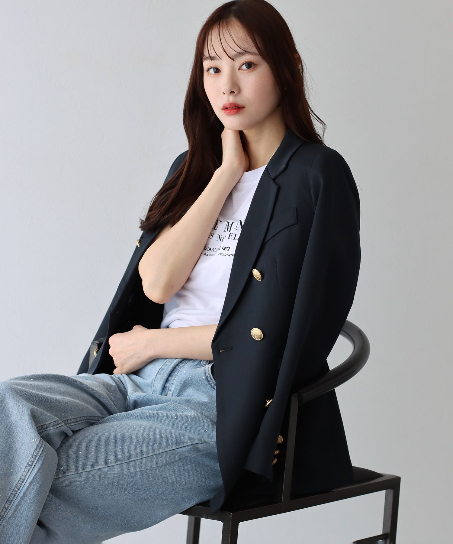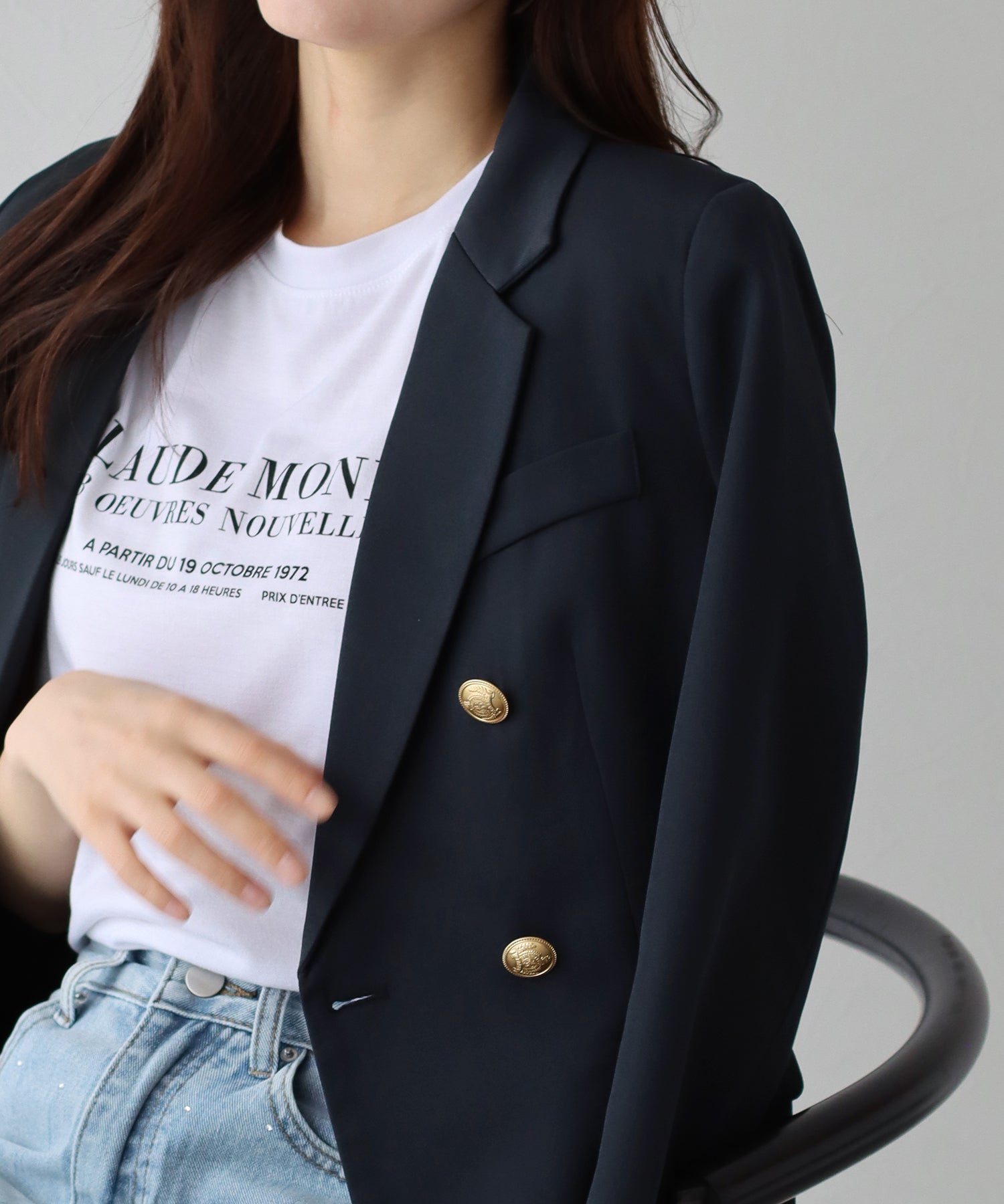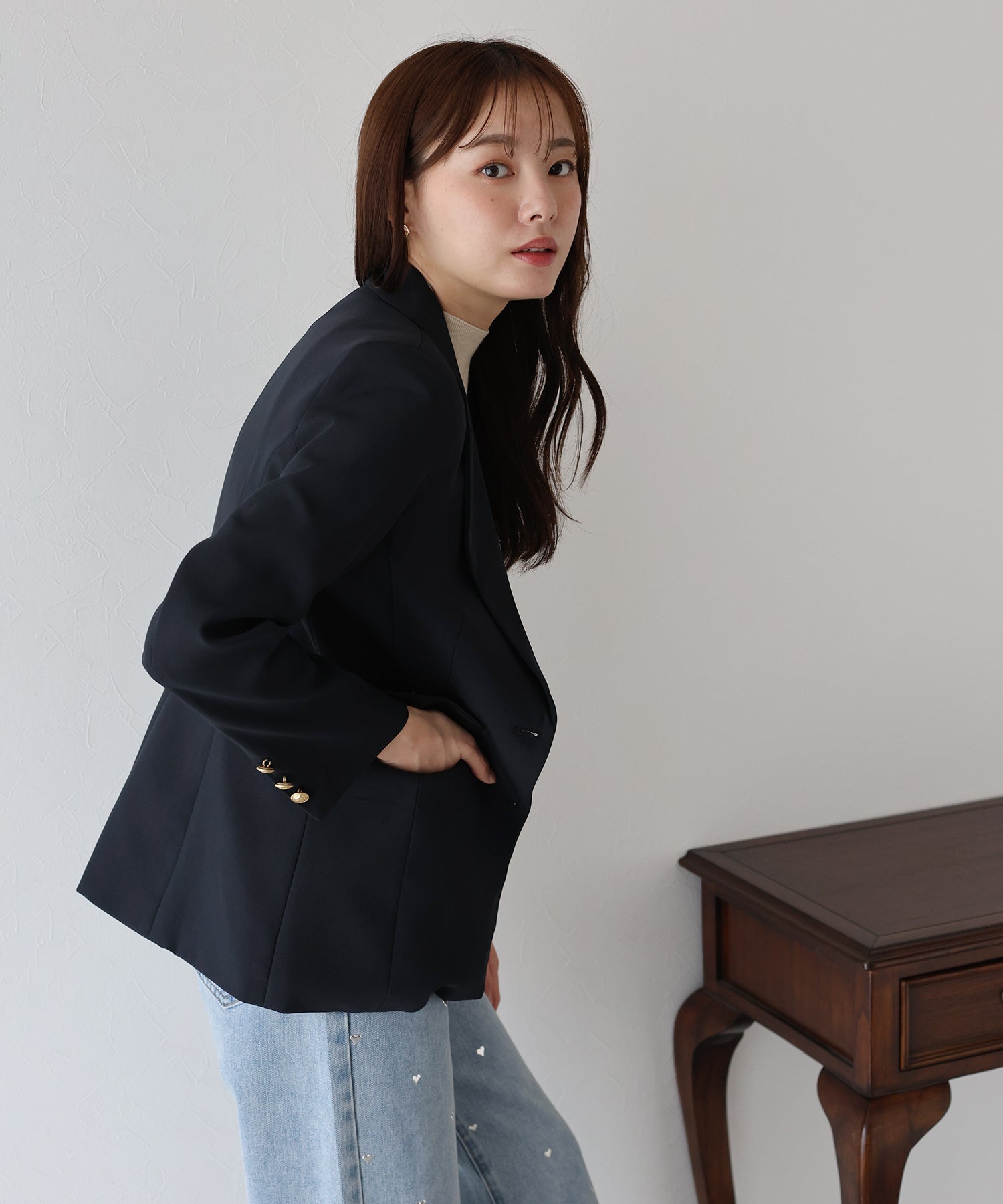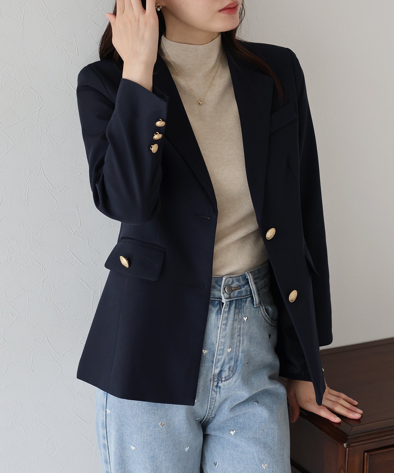 • 【TIME SALE】【ウォッシャブル】金ボタンダブルジャケット