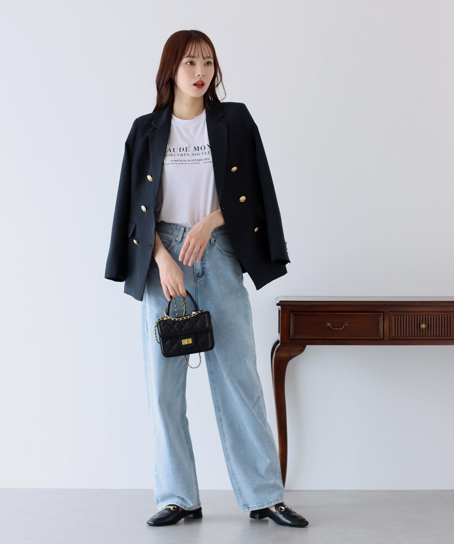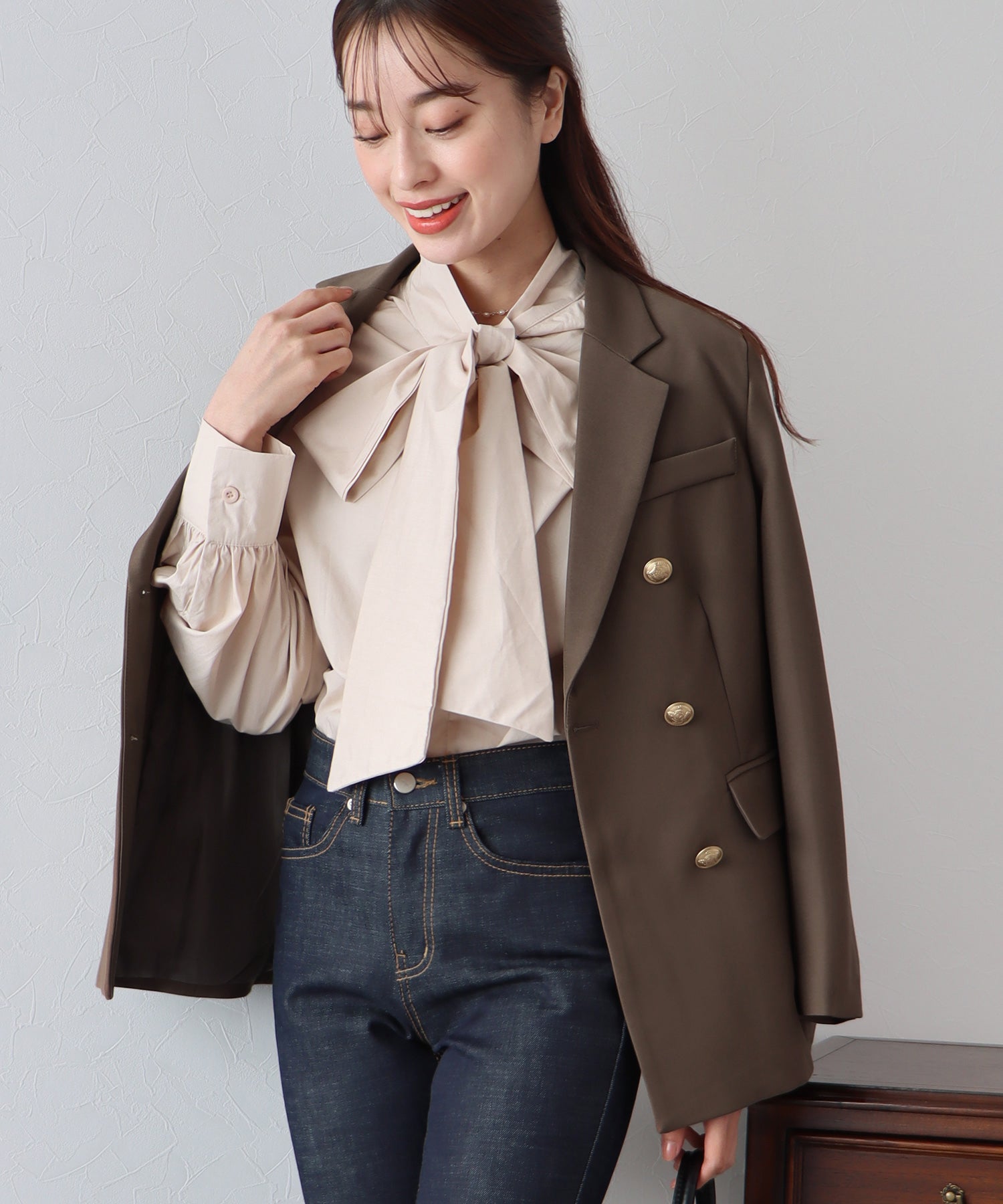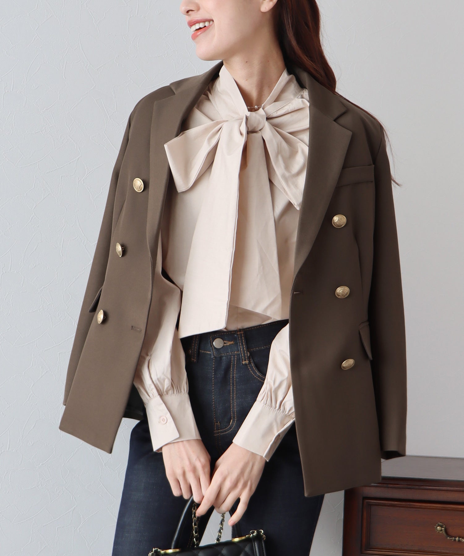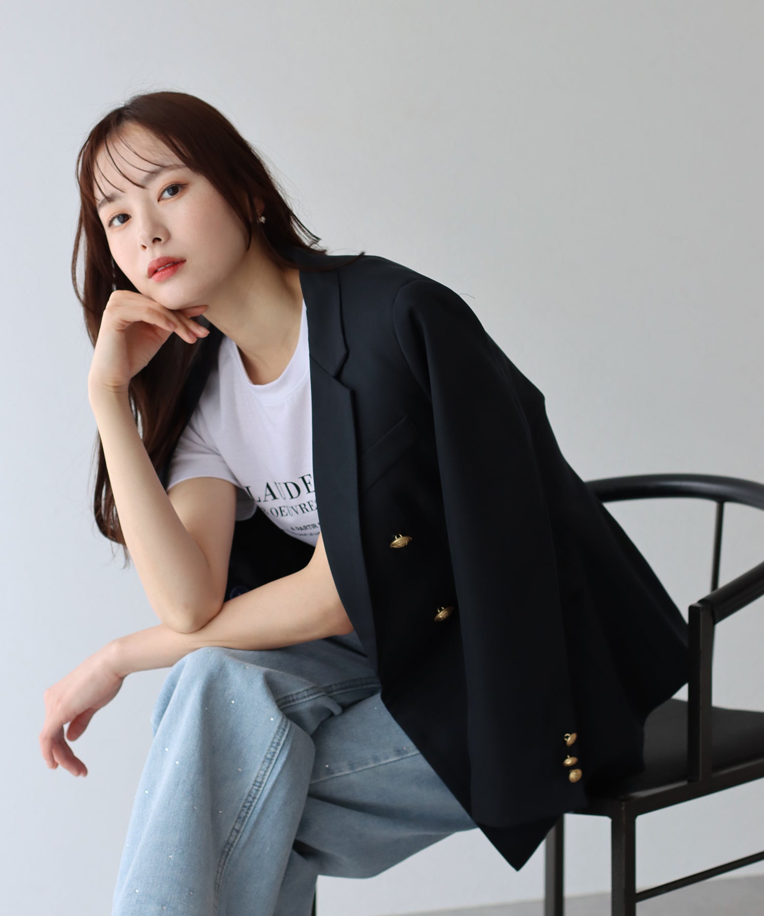 • 【TIME SALE】【ウォッシャブル】金ボタンダブルジャケット
