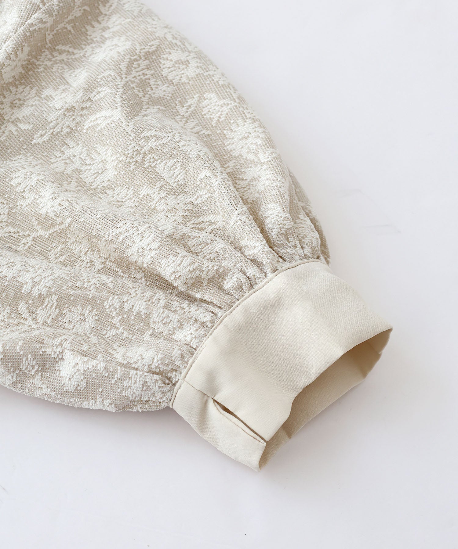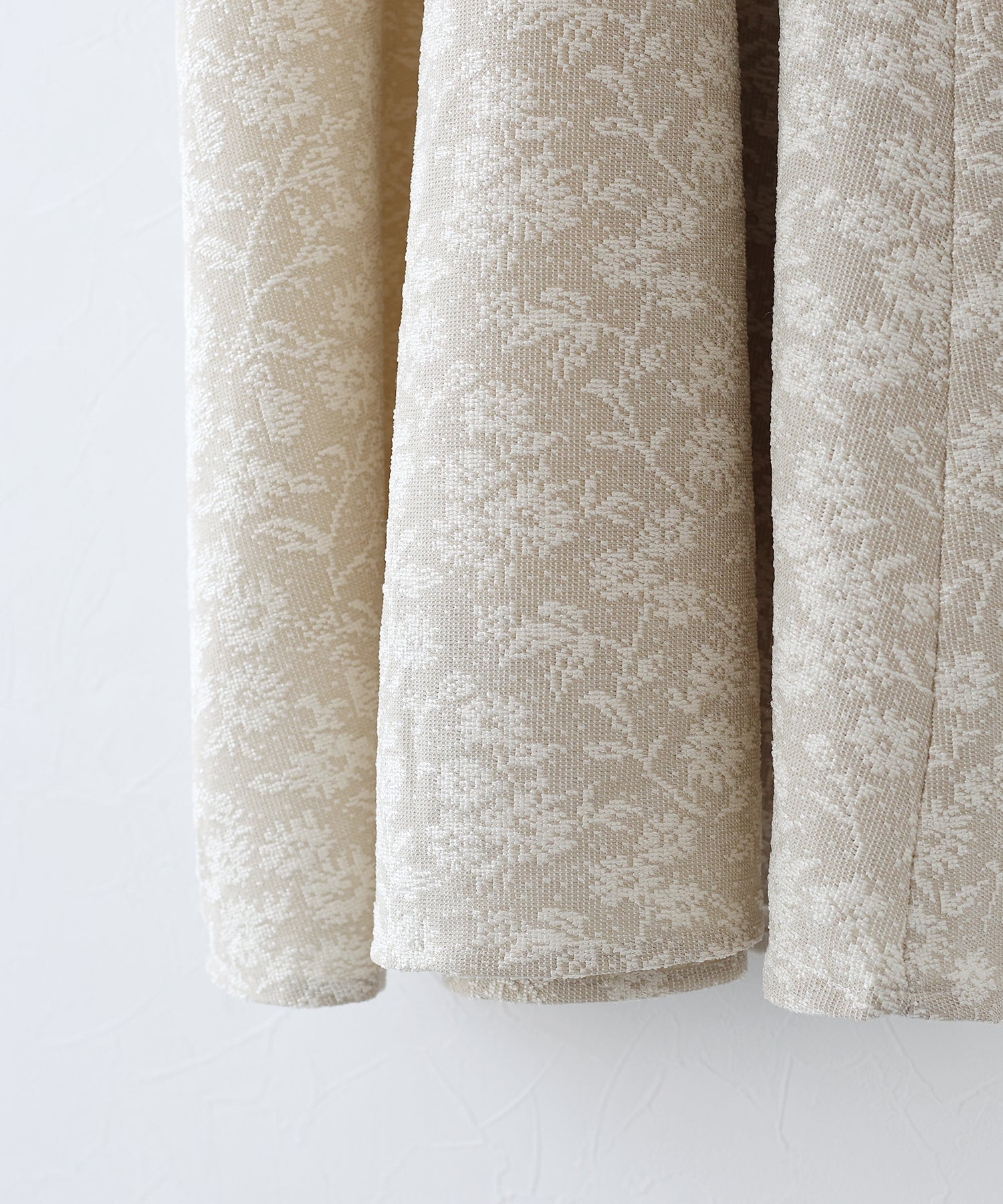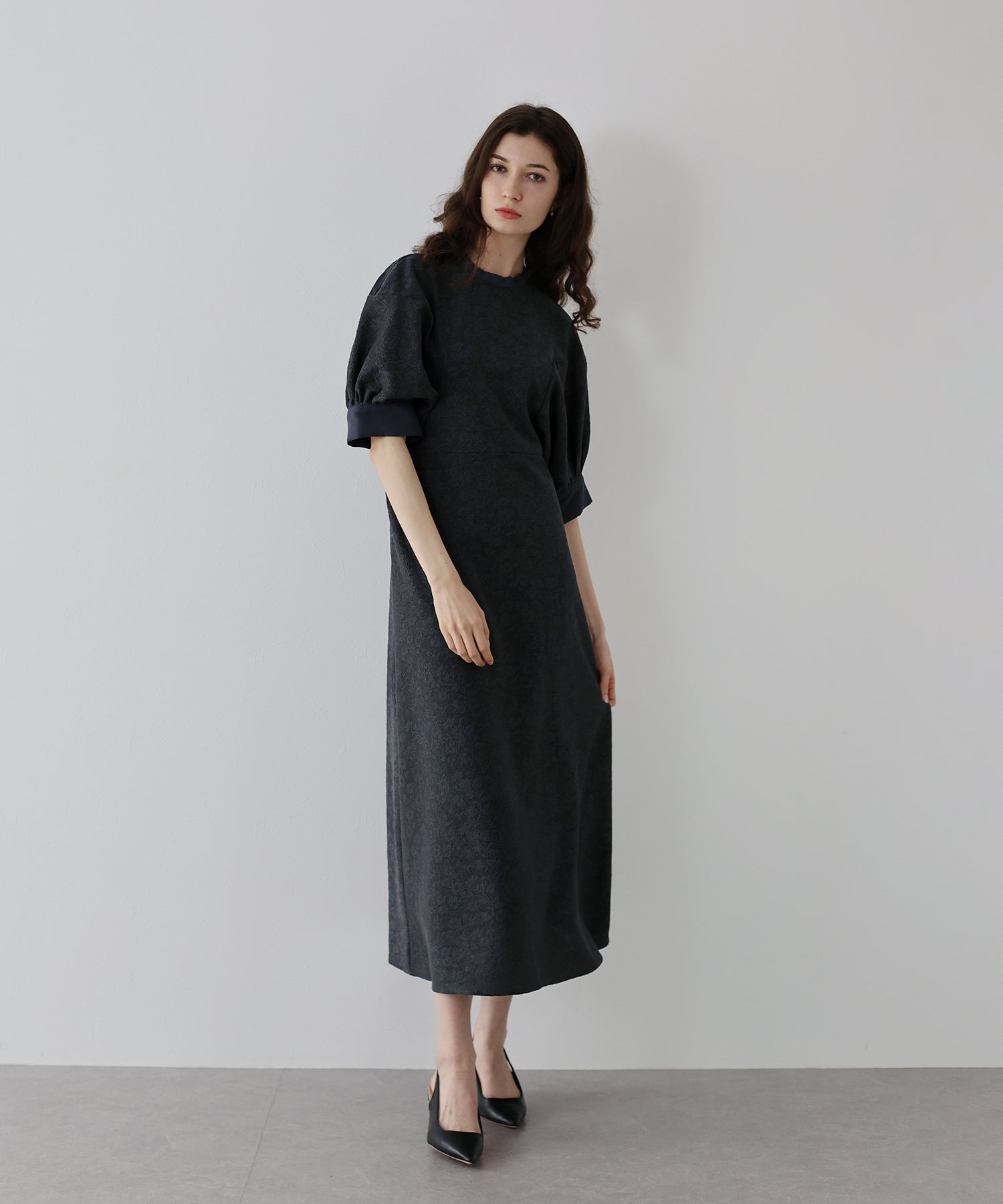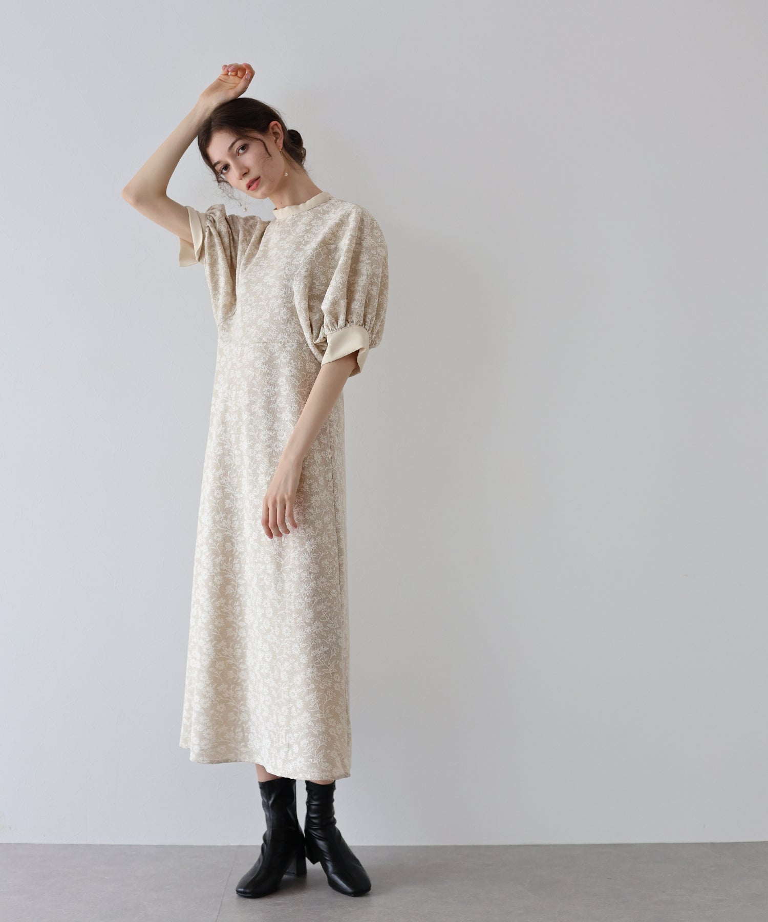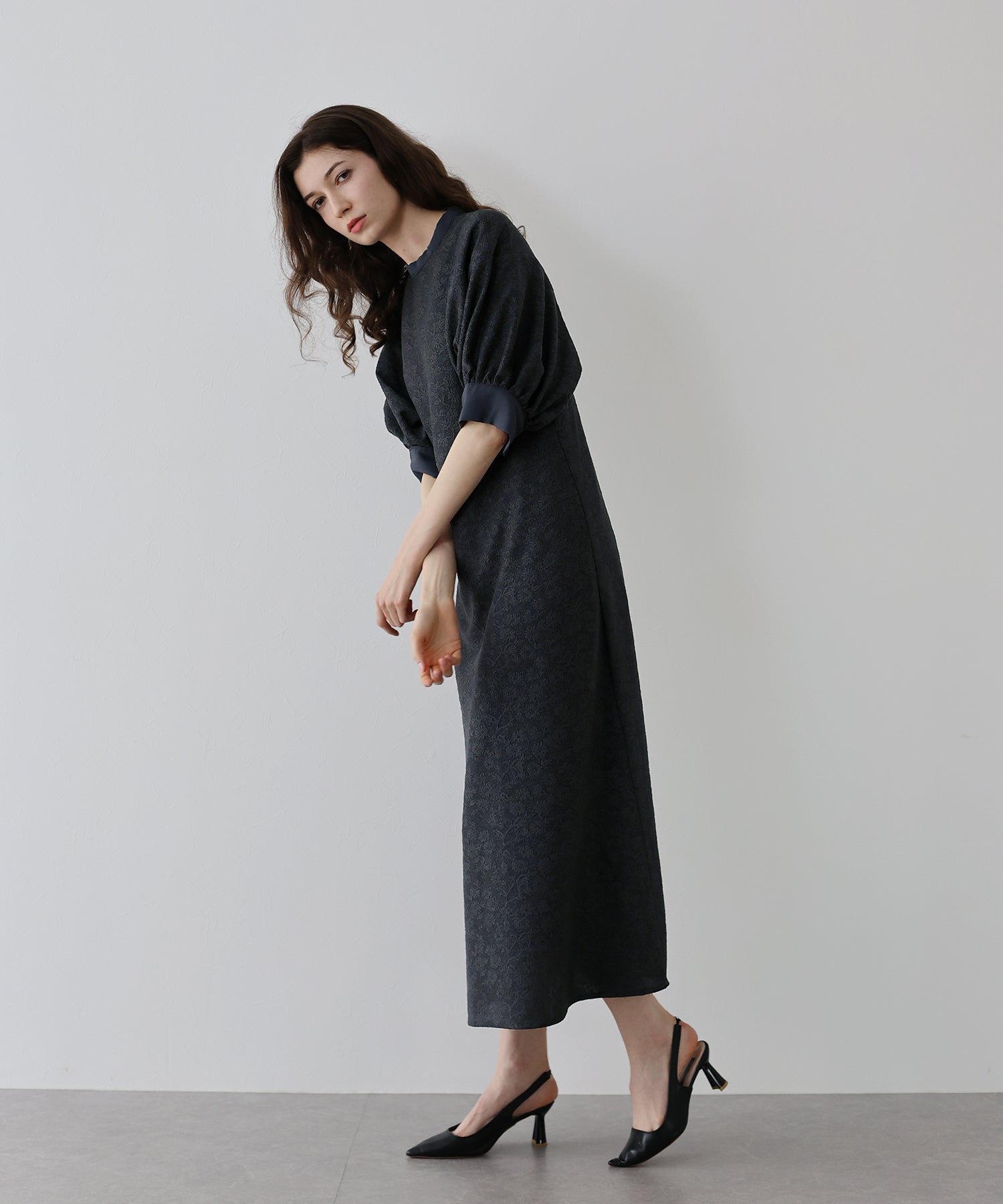 | 生地 | ワンピース全体に福井県で生産された杢調花柄のジャガードレースを贅沢に使用。 グラウンドに杢糸を使用した珍しいレースで、立体的な花柄表現と豊かな色調が特徴的な素材です。 |
