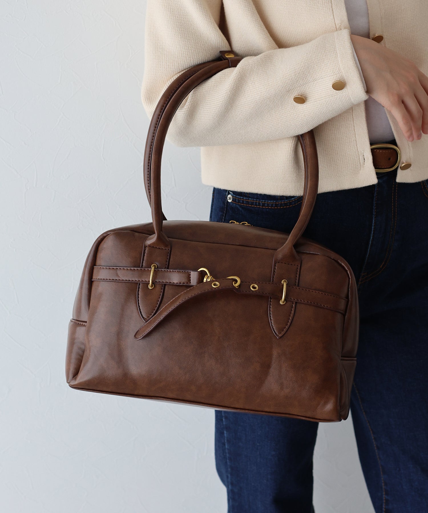 ベルトデザインでモードな雰囲気をプラスしたヴィンテージ風バッグ