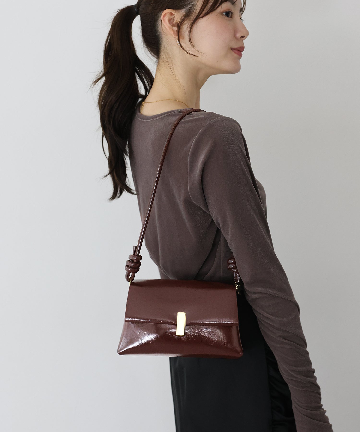 小さめの見た目がおしゃれな2wayショルダーバッグ ?POINT シンプルなスクエア型にあしらったゴールドのバックルが目を惹くワンハンドルバッグ。 可愛らしいコンパクトな見た目ながら、内側が2つに仕切られたデザインで 使いやすく、スマートフォン?財布?ハンカチ?リップなど、お出掛けに必要なアイテムも入ります。 長さ調節可能なショルダーストラップがついているので、 好みや気分に合わせてハンドルを変えてお使いいただけます。 シンプルなデザインなので、トレンドに左右されず長くお使いいただけるアイテムです。