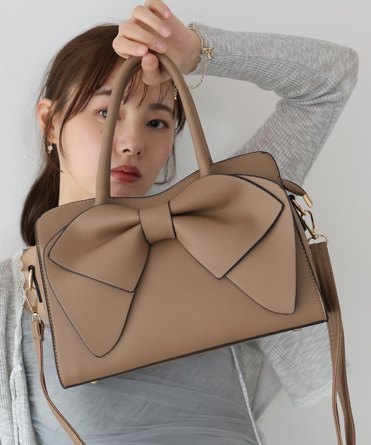 軽量&コンパクトなのに収納力抜群の2wayリボンバッグ ?POINT リボンのモチーフが目を惹くきれいめバッグ。 コンパクトできれいめな見た目ながら、 豊富なポケットと内側が2つに仕切られたデザインで 使いやすく見た目以上の荷物を持ち運びいただけます。 長さ調節可能なショルダーストラップがついているので、好みや気分に合わせて ハンドバッグやショルダーバッグとしてお使いいただけます。 シンプルなデザインなので、トレンドに左右されず長くお使いいただけるアイテムです。