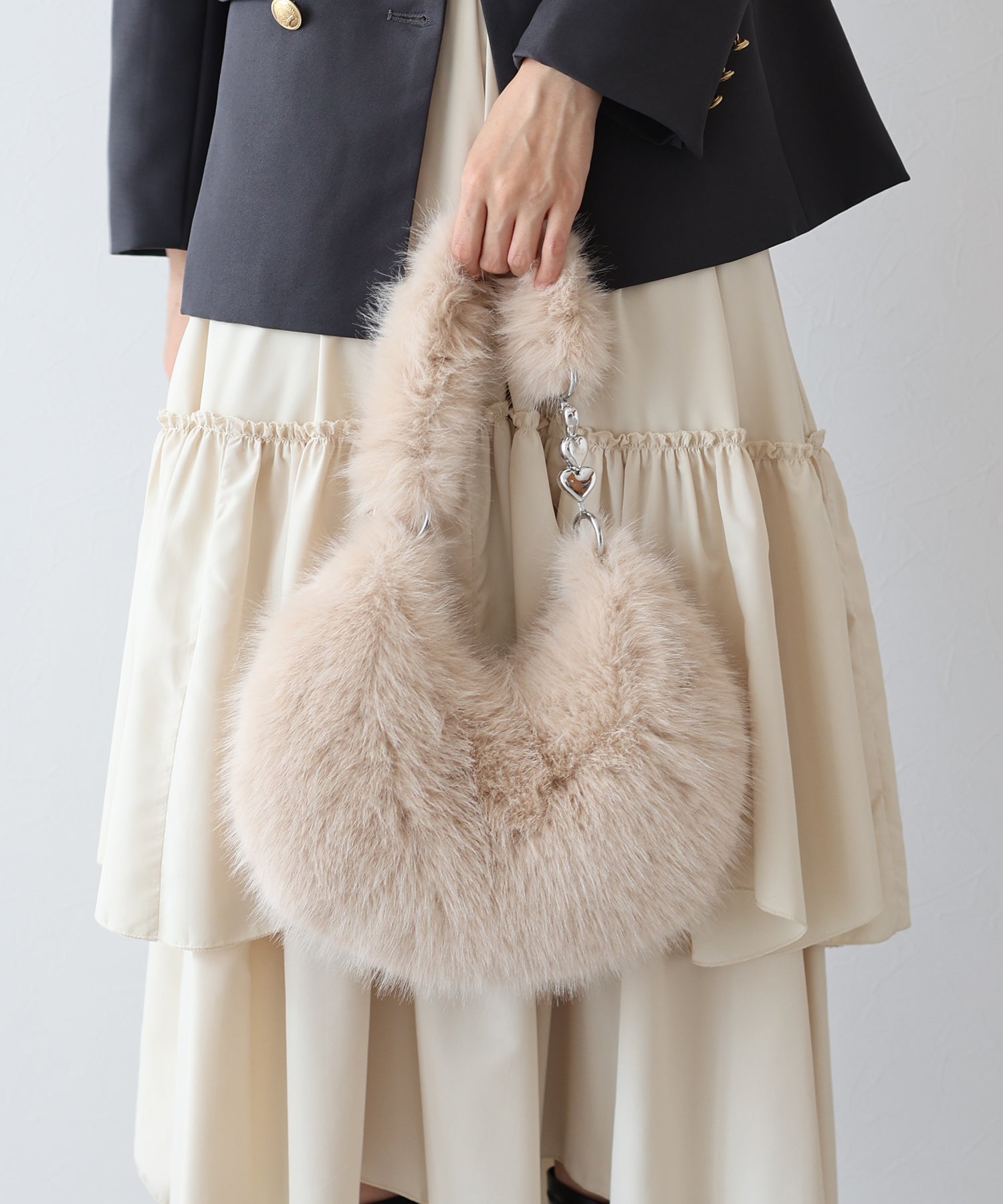 ふわふわなフェイクファーを使用したショルダーバッグ。