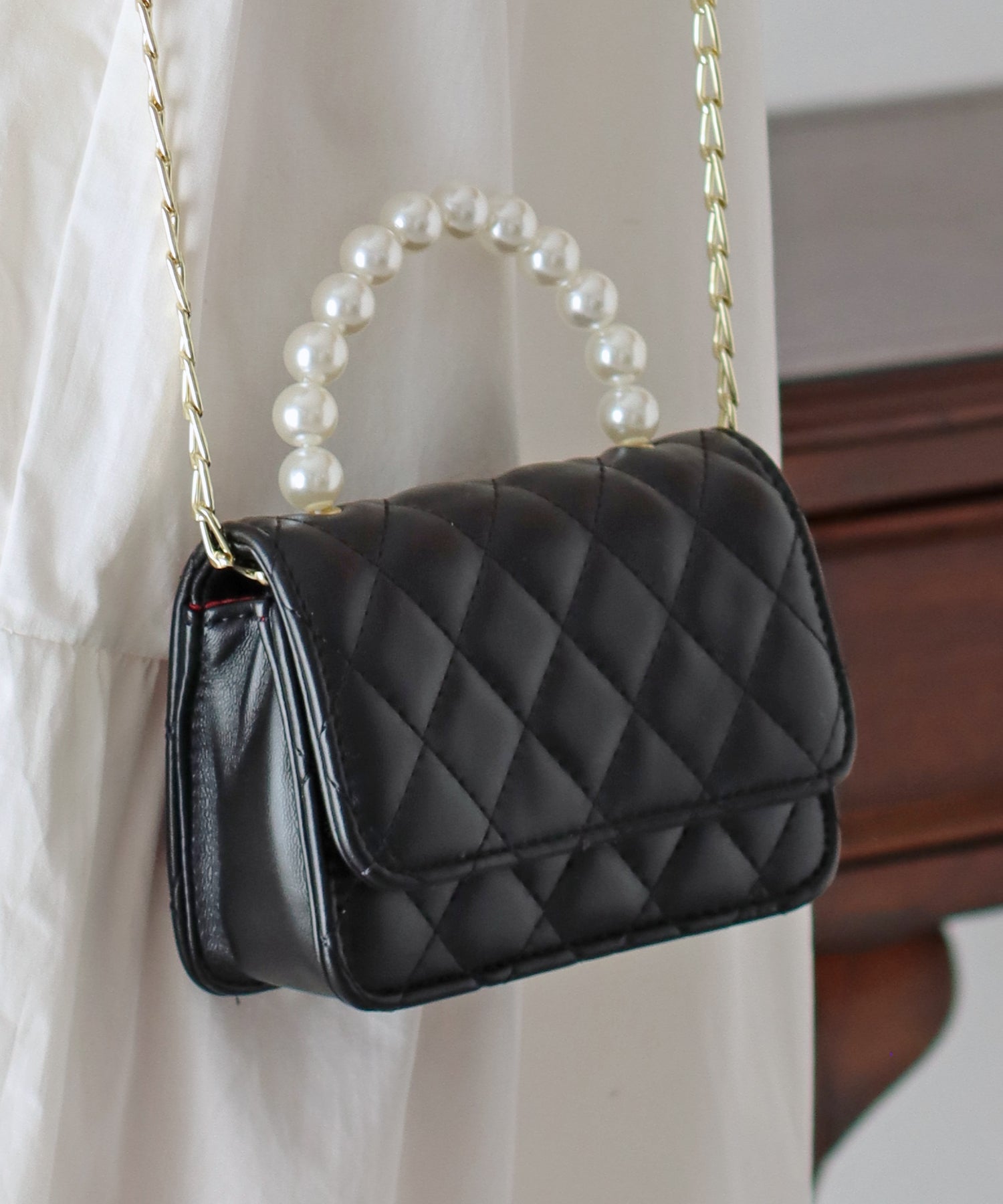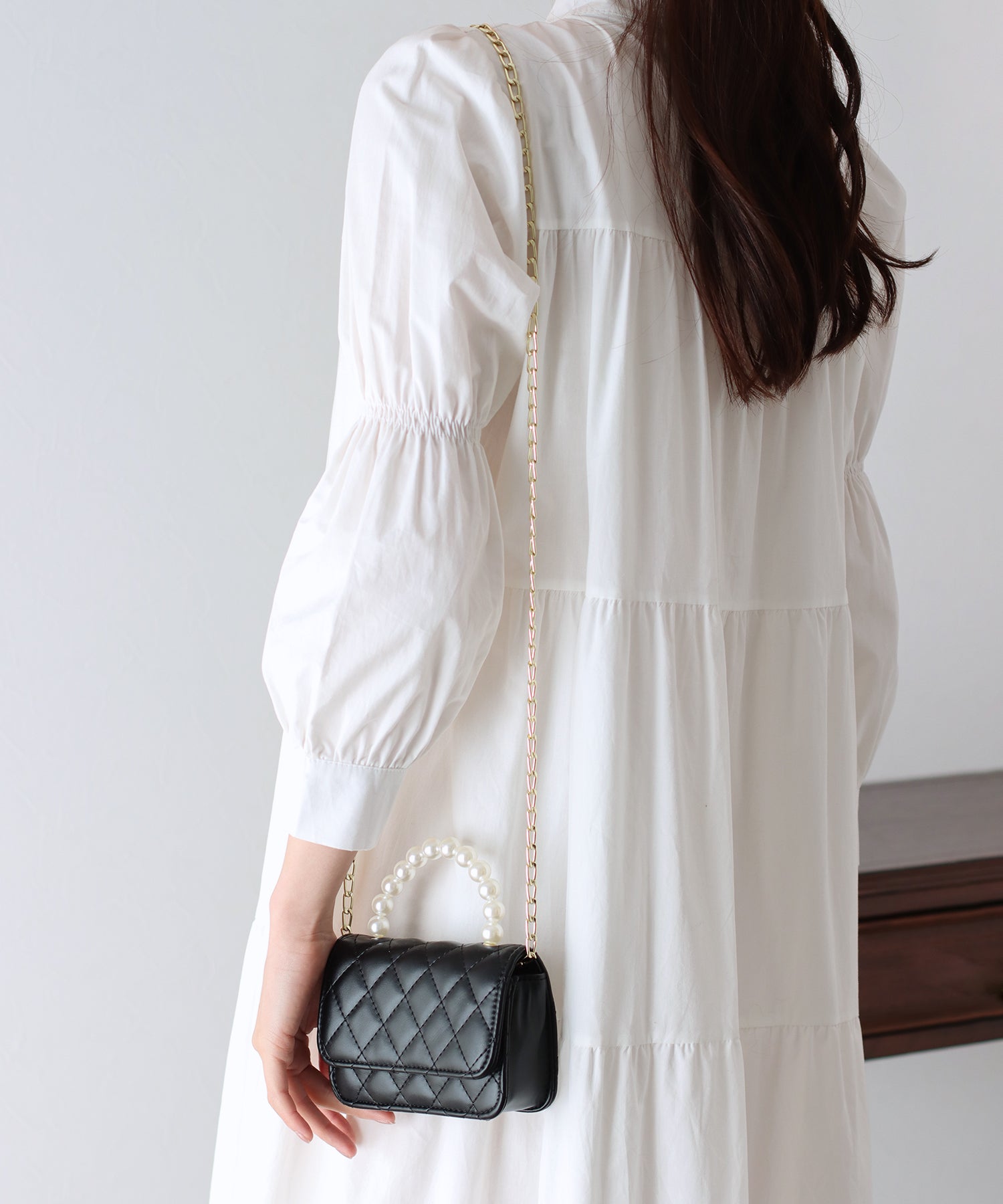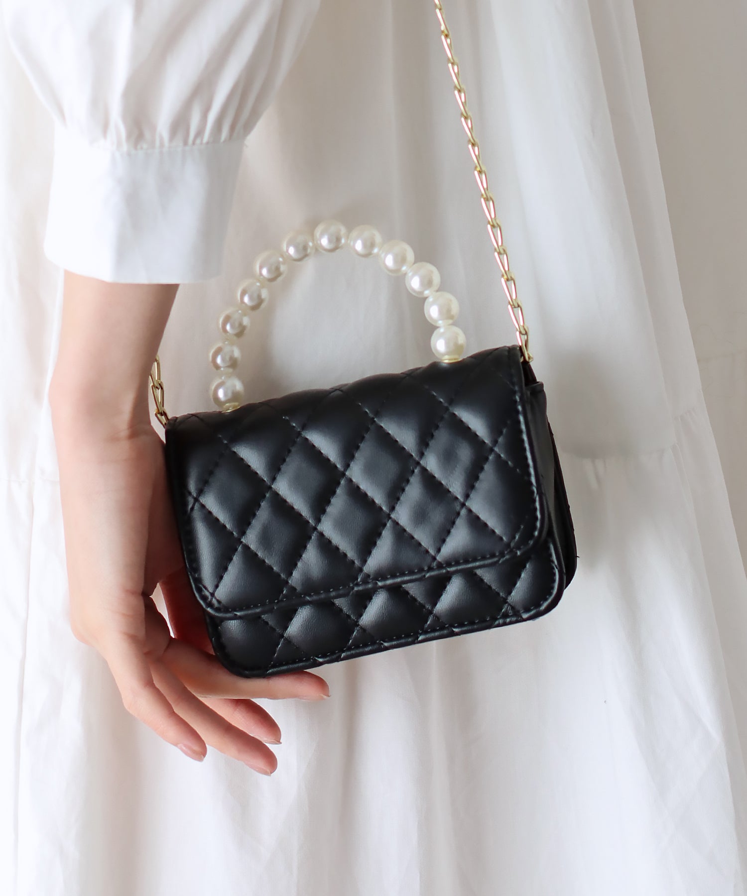?STYLING チェーン付きなので、斜め掛けにしてアクセサリー感覚で使うのがおすすめです。 持ち手のパールがシンプルなお洋服に映えてコーデを華やかにしてくれます。 ひとつ持っているとオールシーズン?様々なシーンで活躍できること間違いなし。