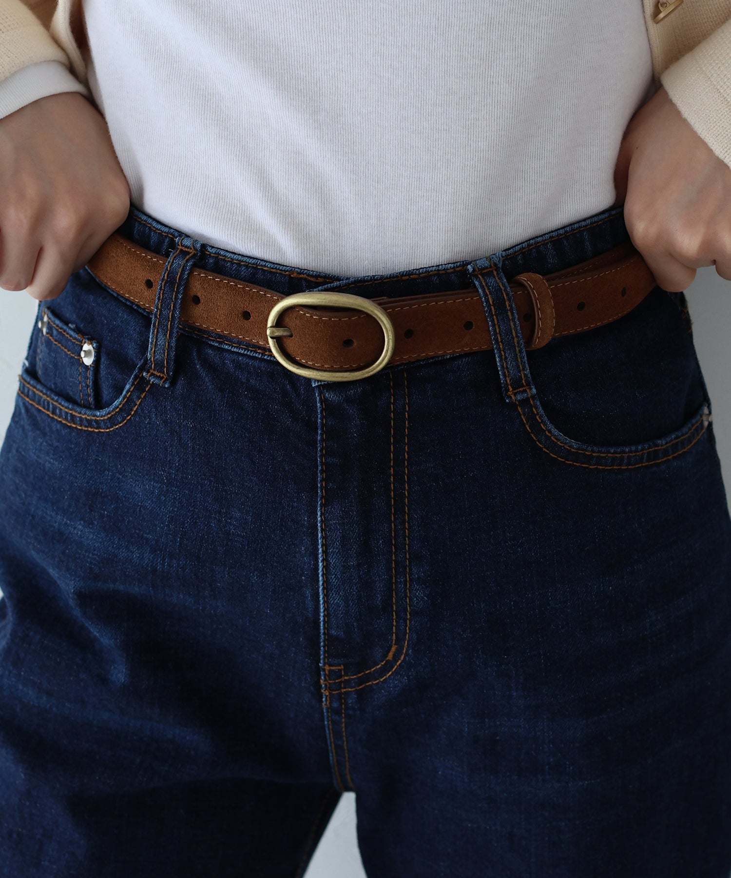 シーズンライクなスウェード調のベルトはいつものコーデにこなれ感をプラスします。