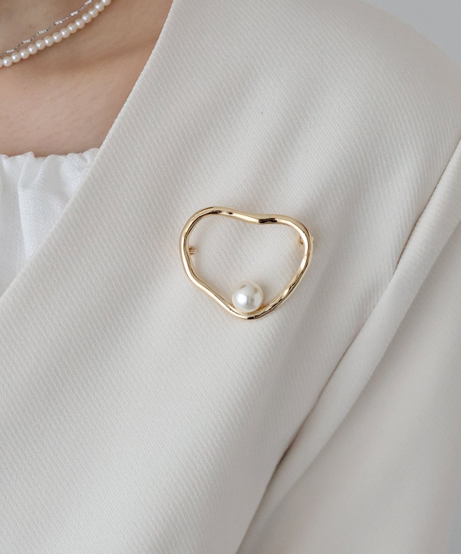 オケージョンからデイリーまで幅広く活躍するパール付きニュアンスブローチ