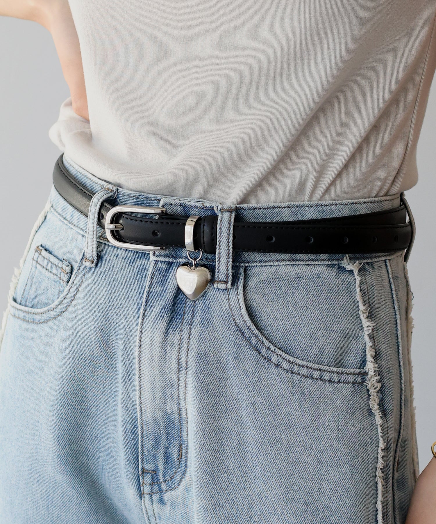 ハートチャームがさり気なくかわいいアクセントを与えてくれるベルト