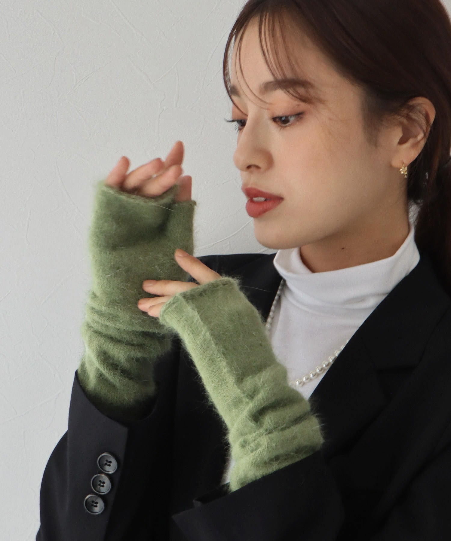 ふわふわのアンゴラ素材で仕上げたアームウォーマー
