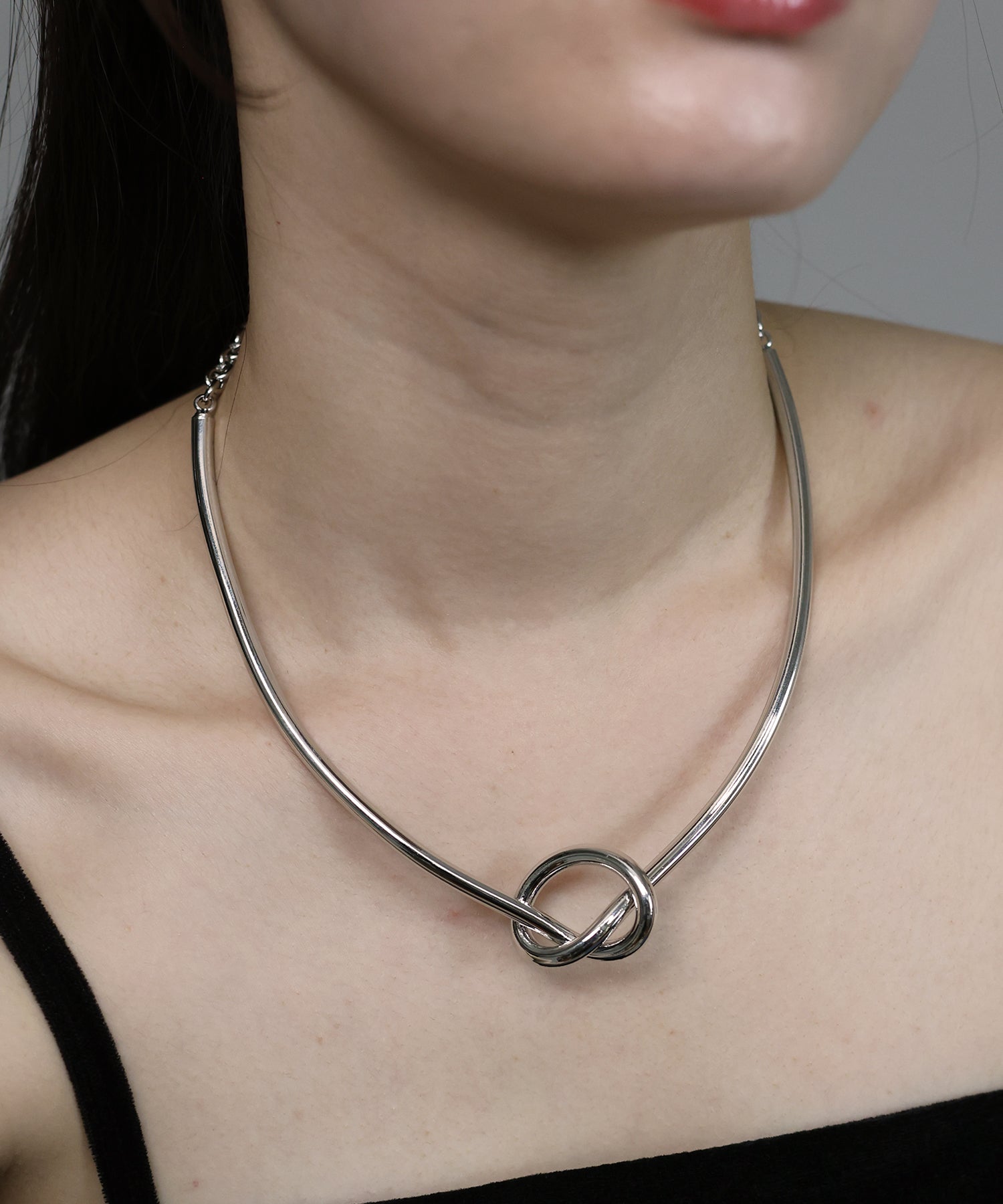シンプルながらも存在感を放つノットデザインチョーカー。