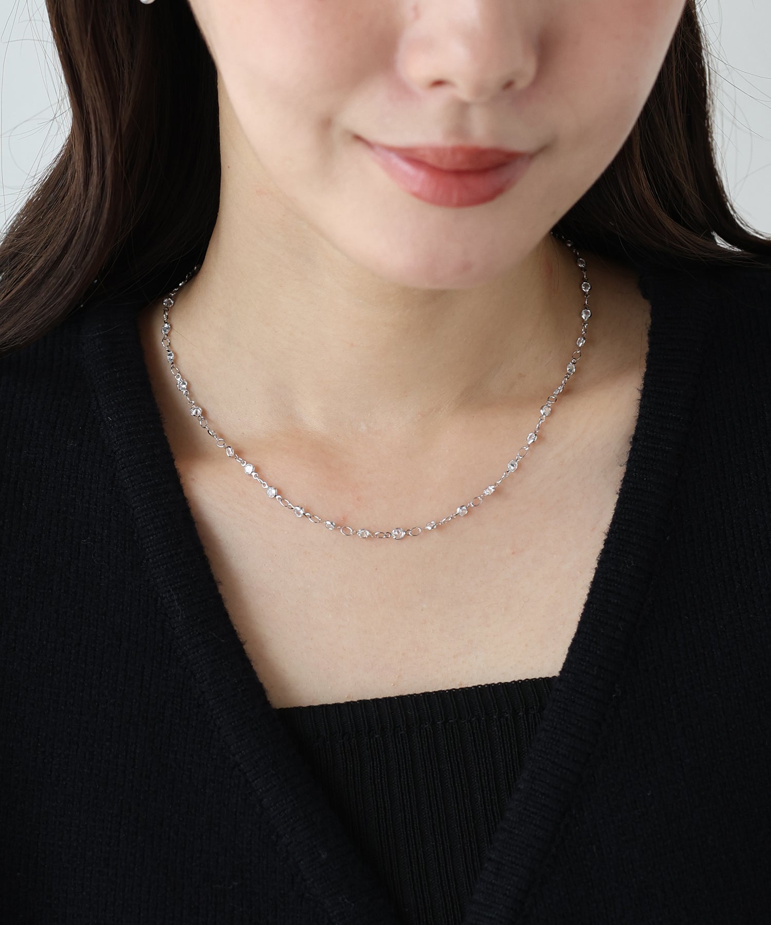 小ぶりなキュービックジルコニアが連なったチェーンネックレス。
