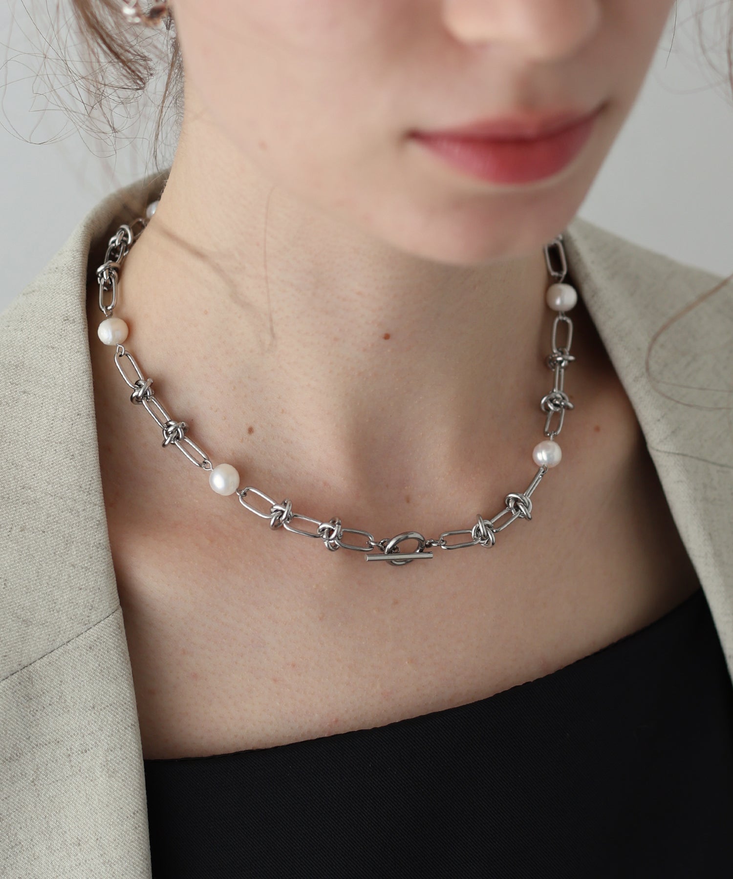 上品に彩る淡水パール&チェーンネックレス ?POINT 上品な光沢の淡水パールとチェーンを組み合わせた、シンプルながらも洗練されたネックレス。 ナチュラルな艶めきのある淡水パールが首元を上品に彩り、どんなスタイルにも馴染むデザインです。 華奢なチェーンとの組み合わせで、さりげないアクセントをプラス。 デイリーから特別なシーンまで、長く愛用できるアイテムです。 同シリーズのブレスレット【93115022(ZOZO)51251j0-9827(店舗)】とのセット使いもおすすめです。