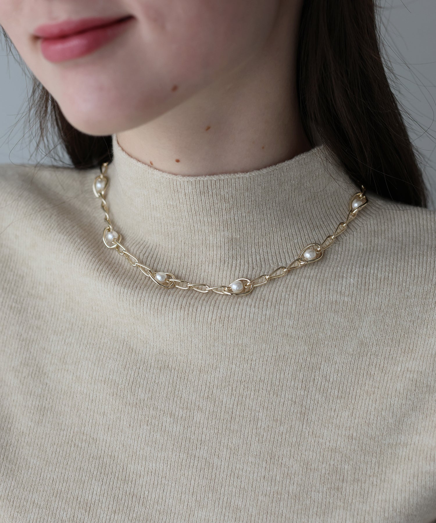 パール&チェーンネックレス