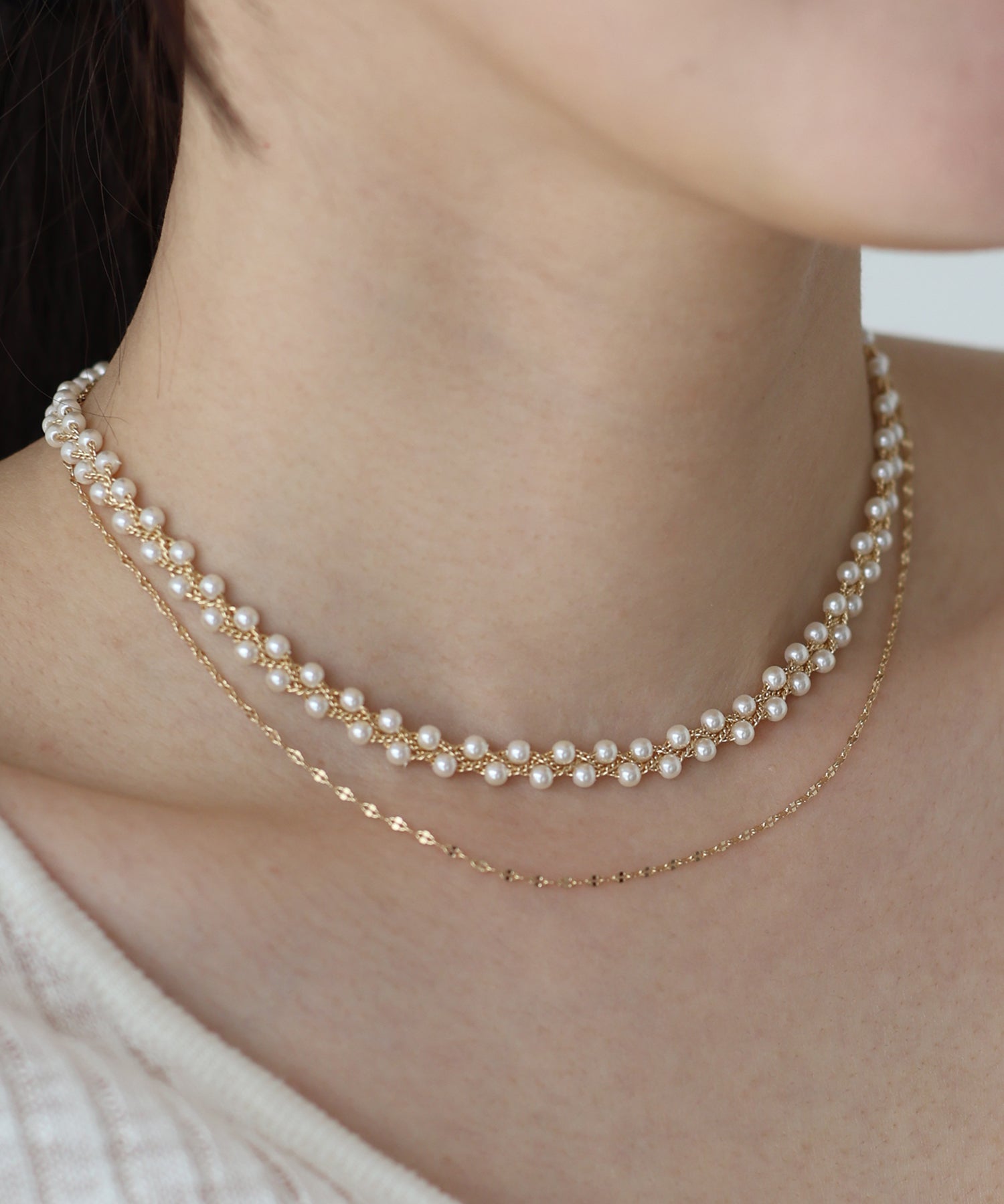 小ぶりなパールが連なったショートネックレスセット