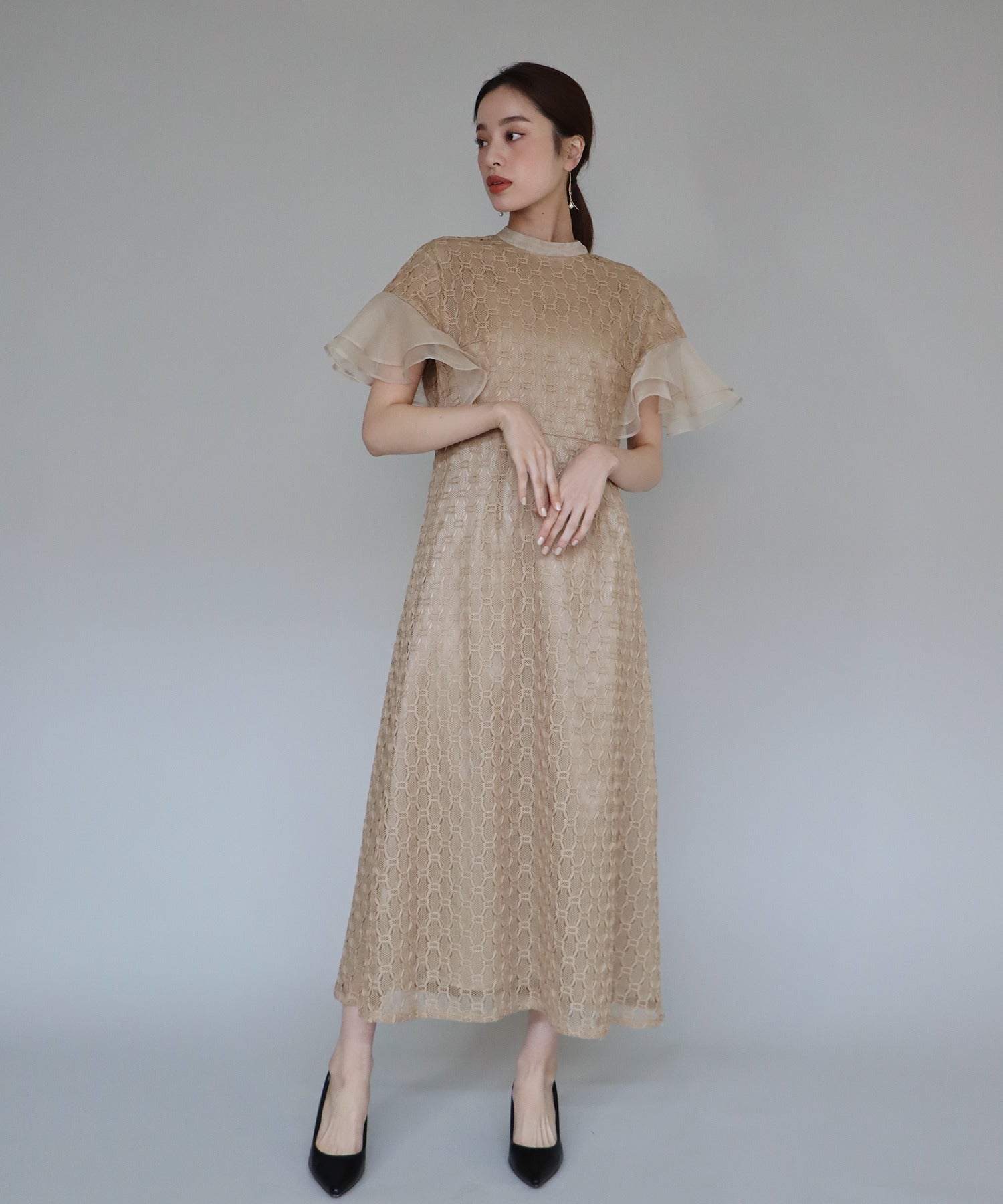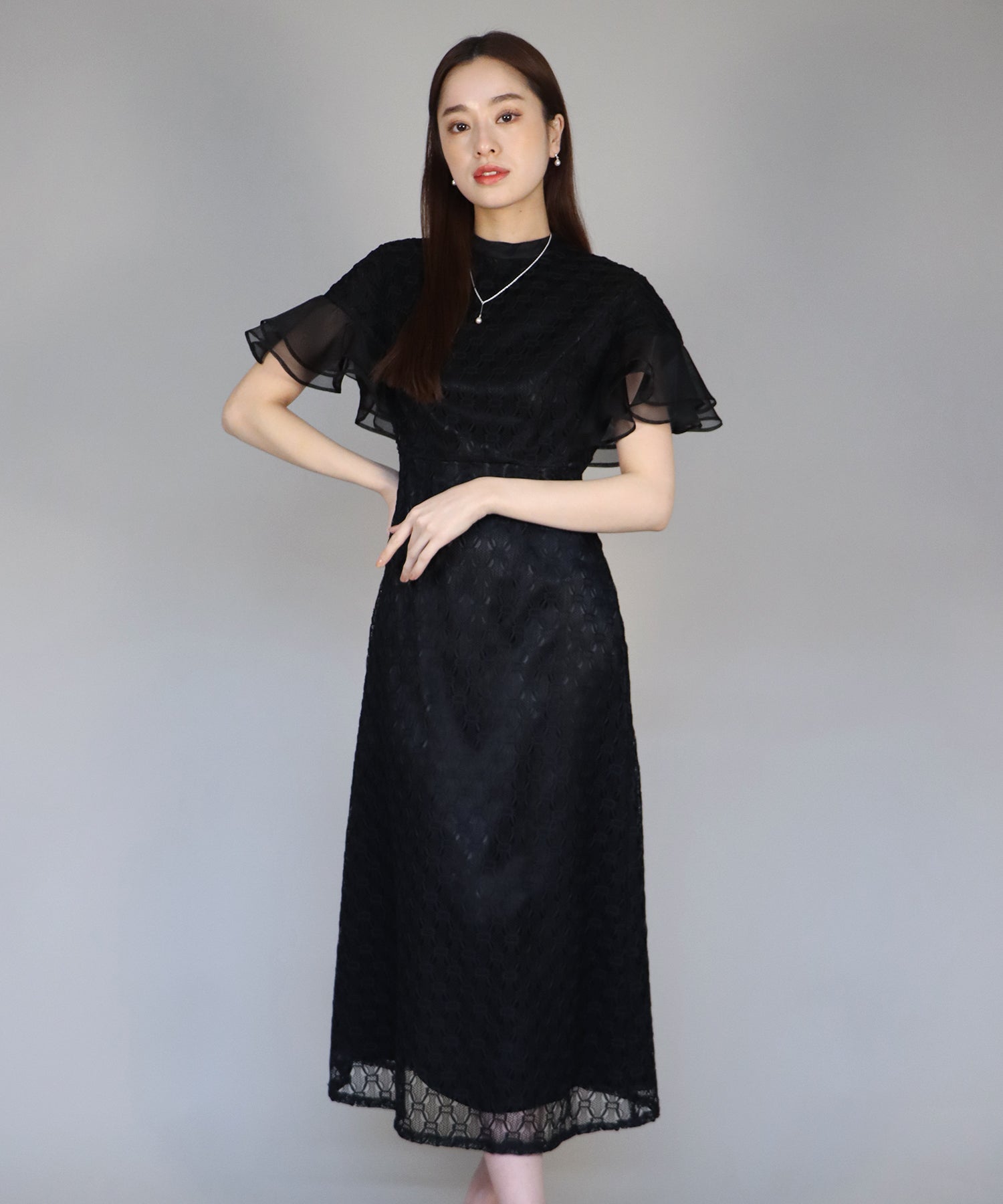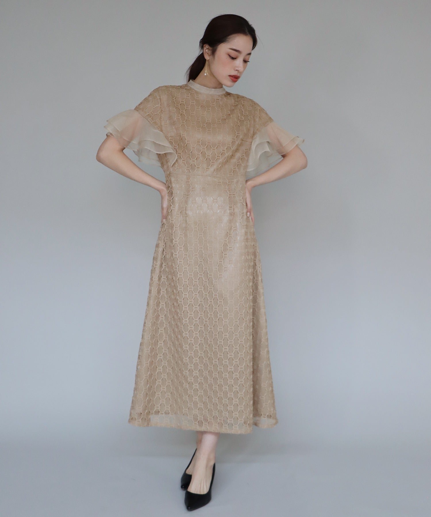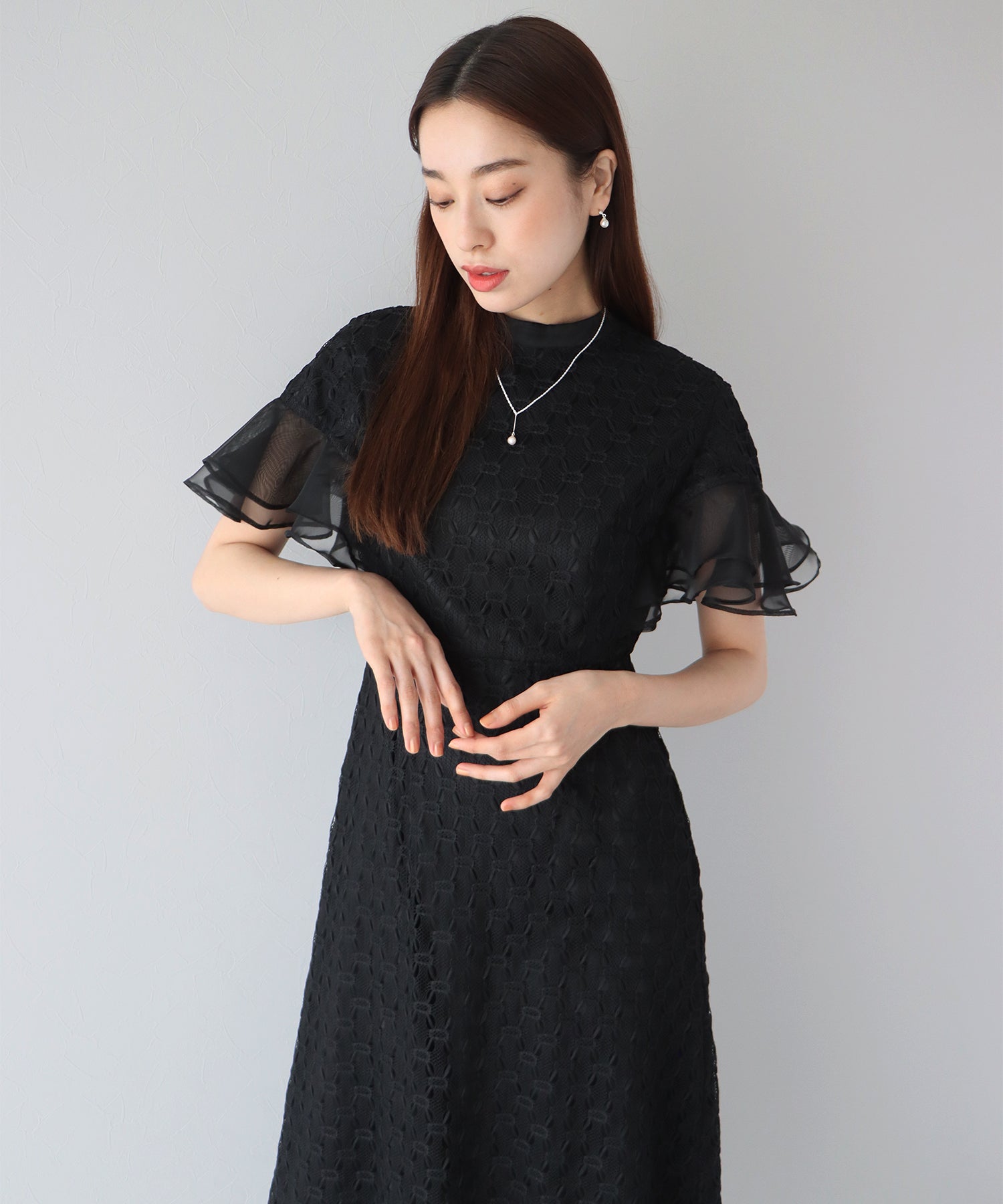 • 【SALE】日本製 ジオメトリックチェーンレースドレス
