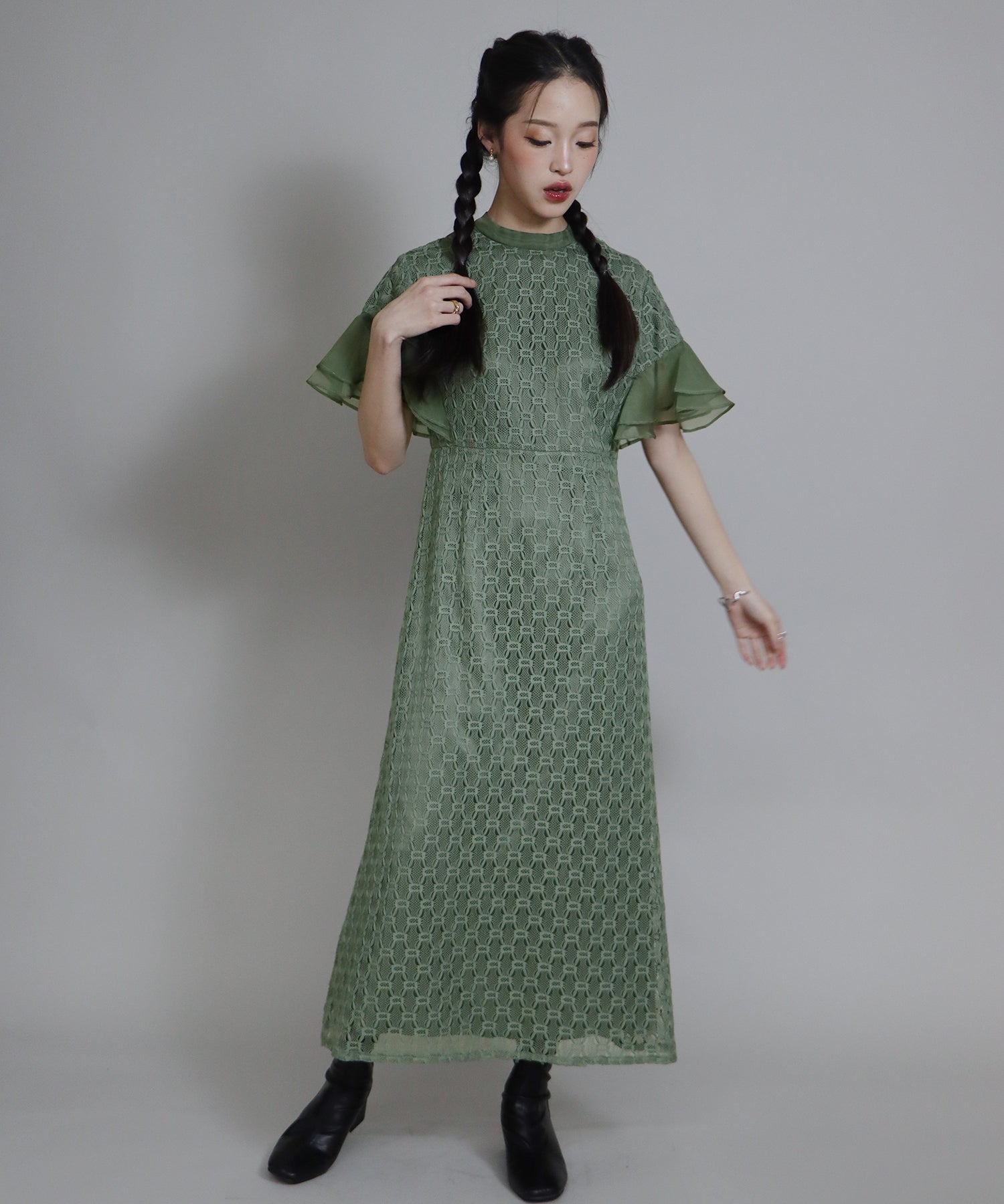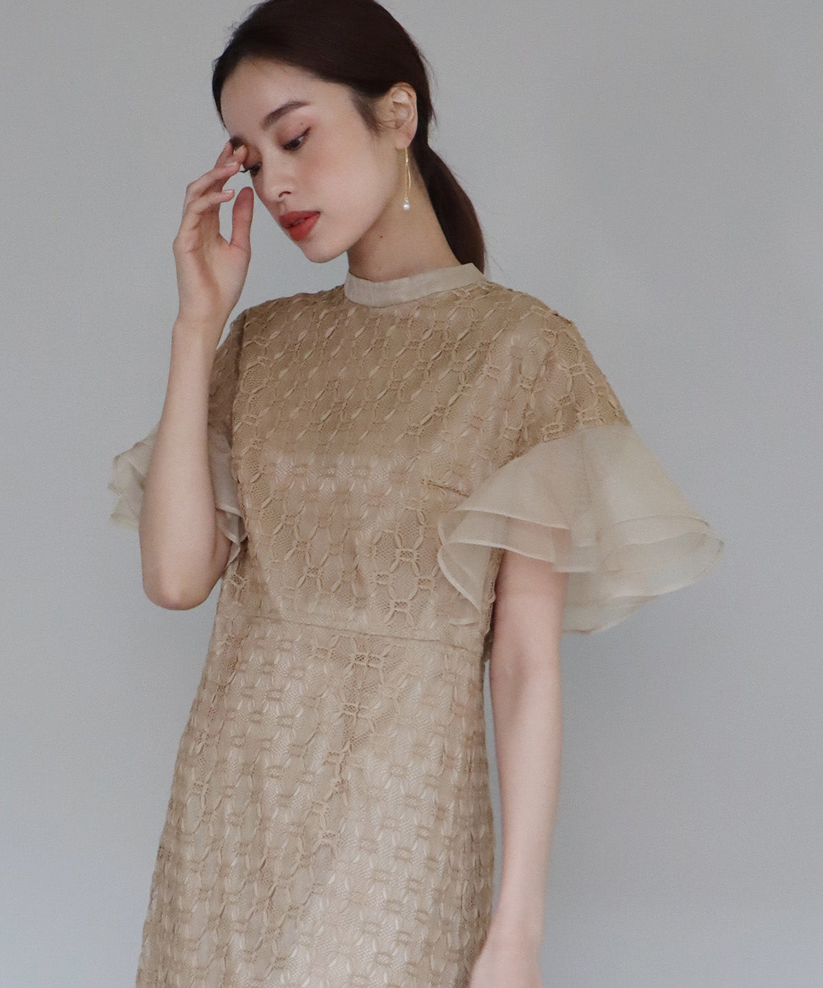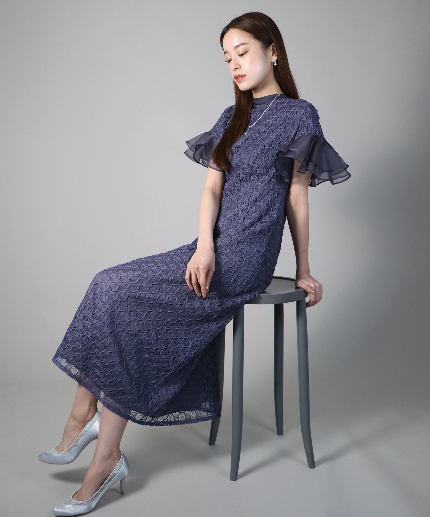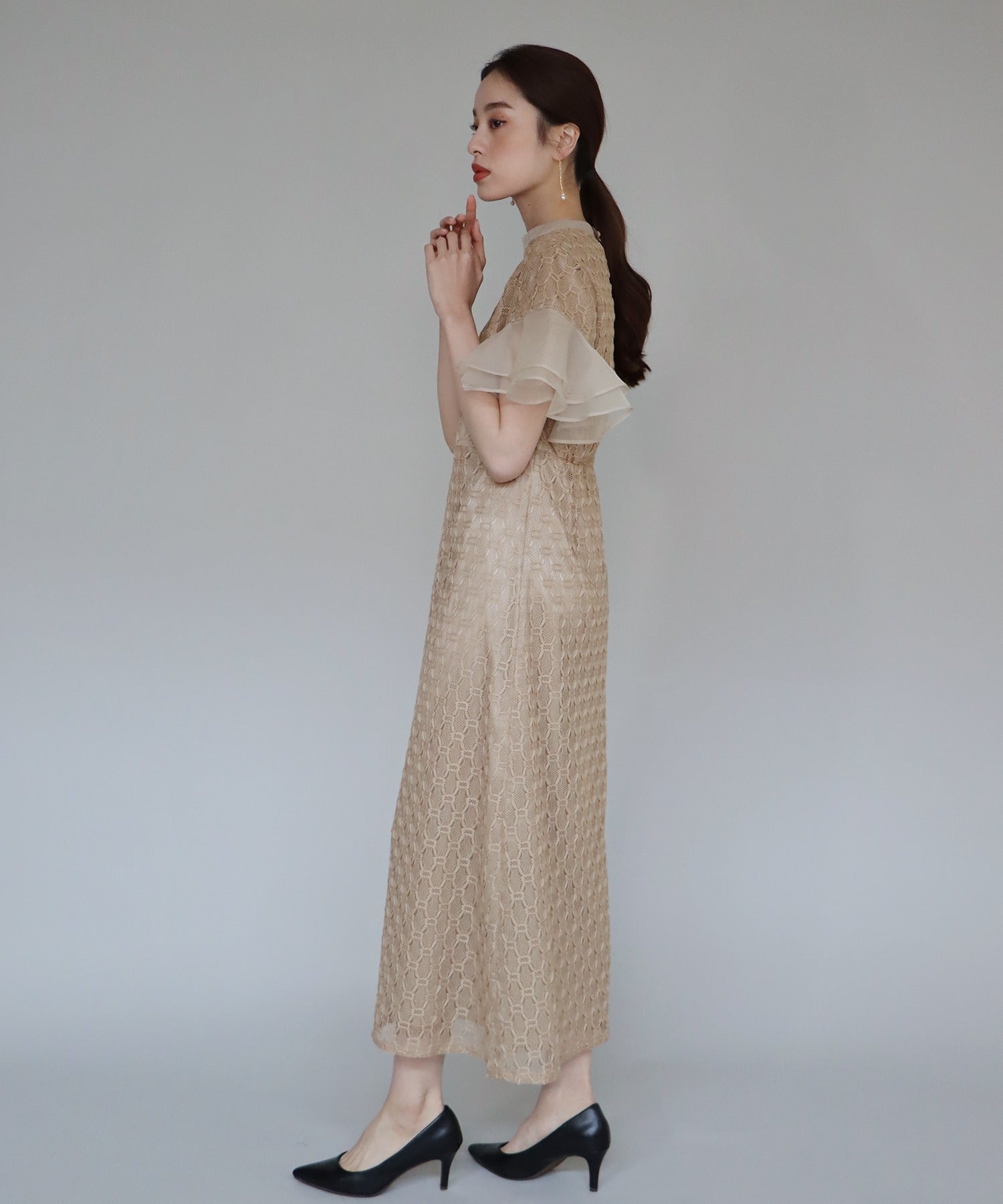 • 【SALE】日本製 ジオメトリックチェーンレースドレス