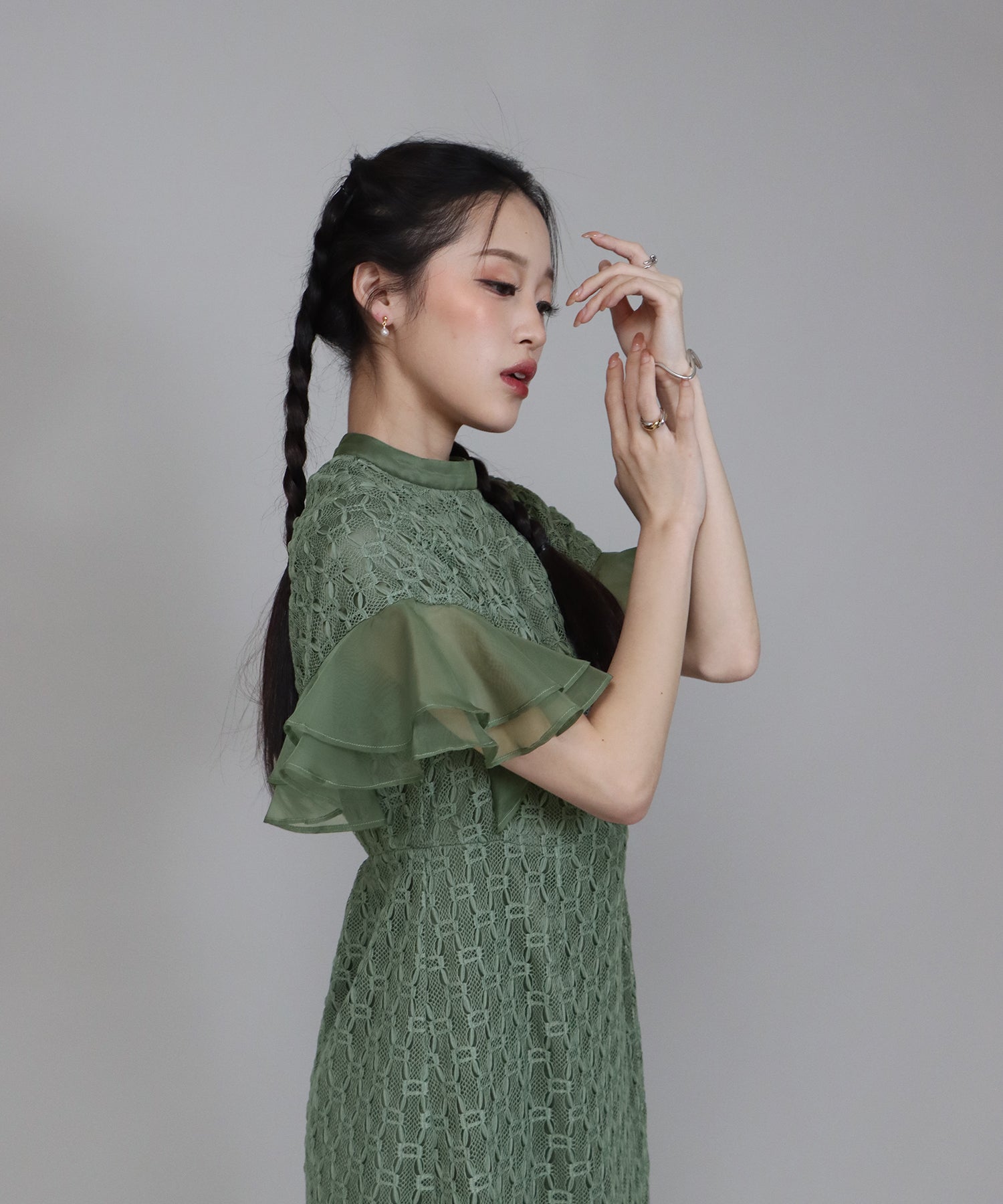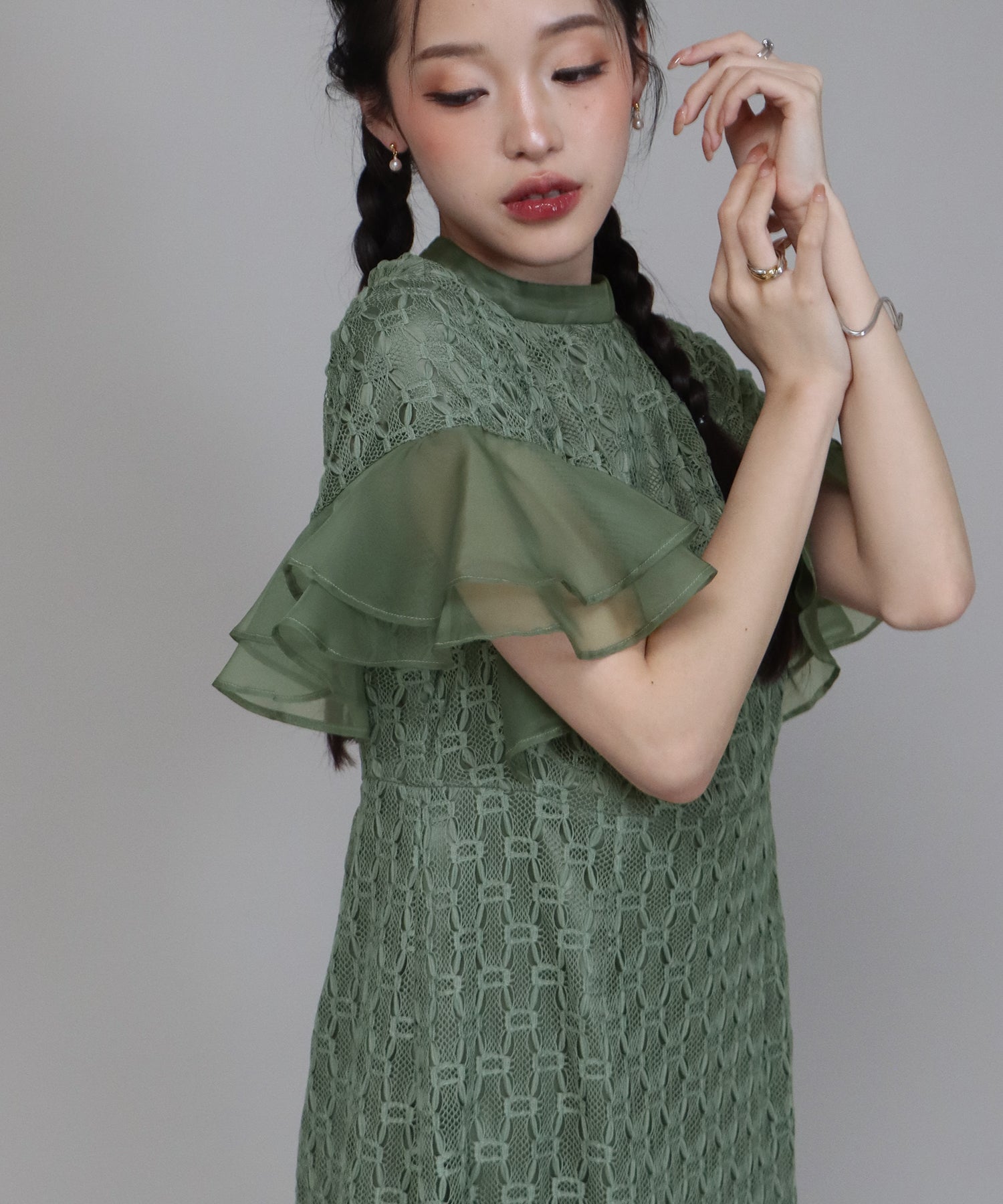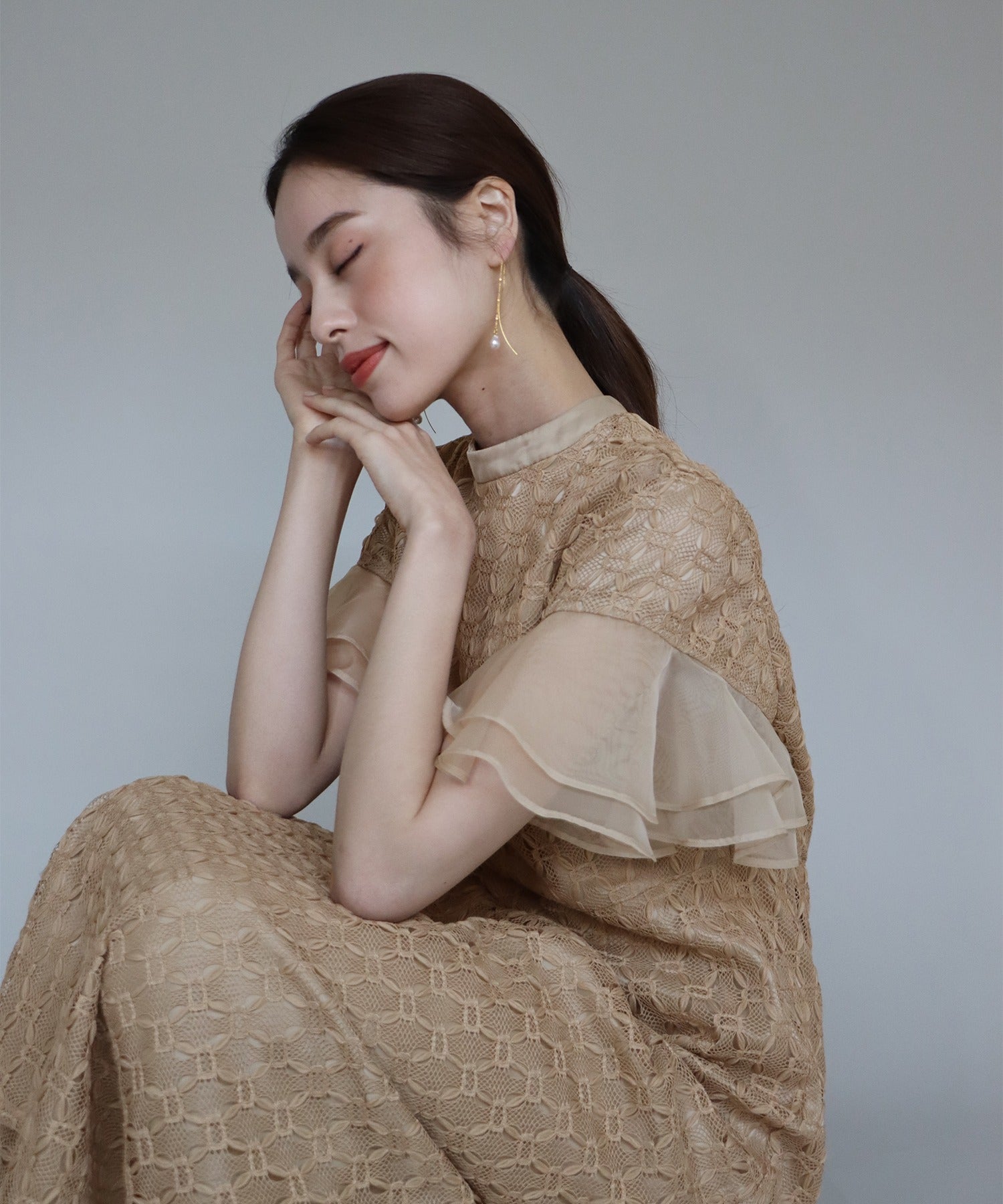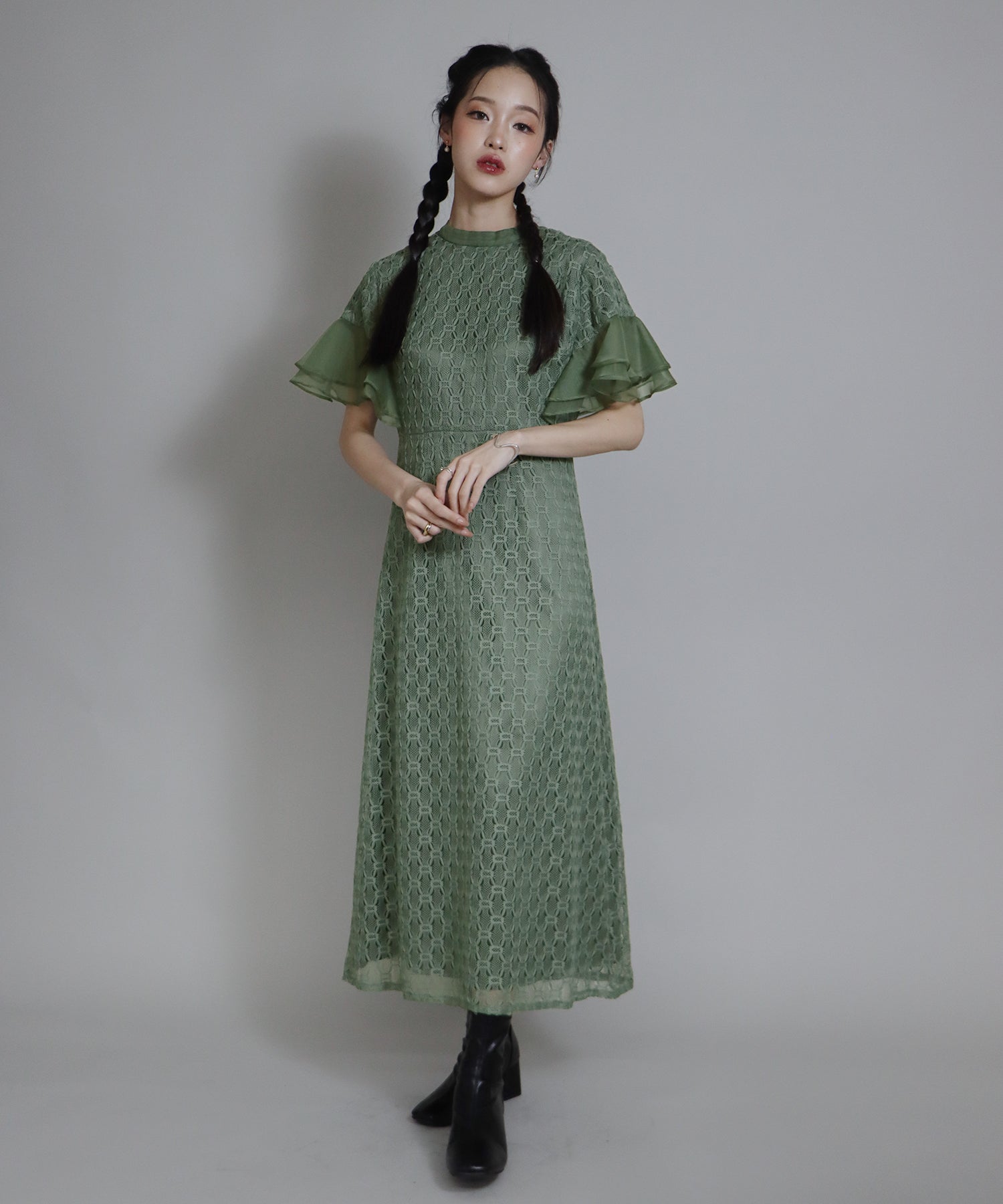 • 【SALE】日本製 ジオメトリックチェーンレースドレス