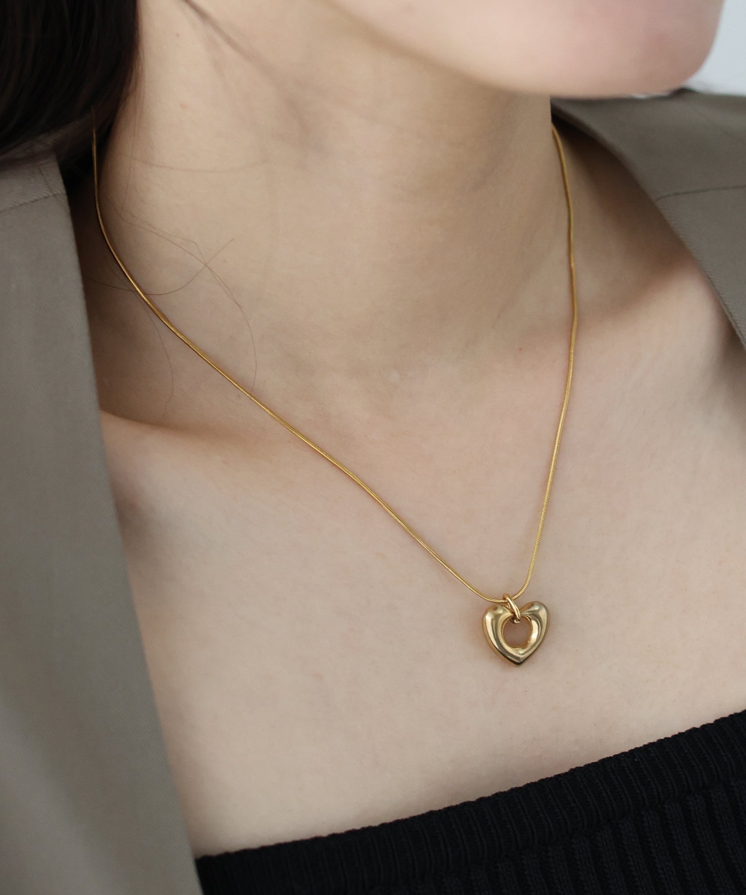 ころんとしたハートのモチーフがコーディネートのさりげないワンポイントに。