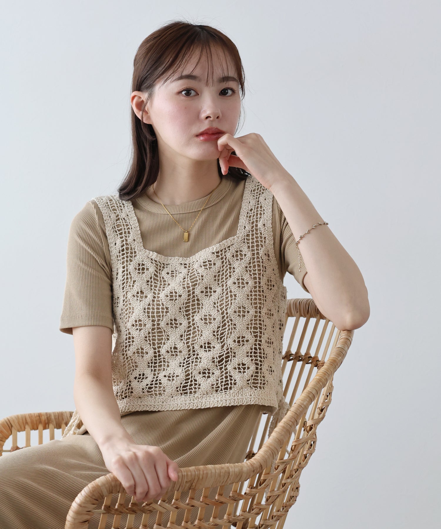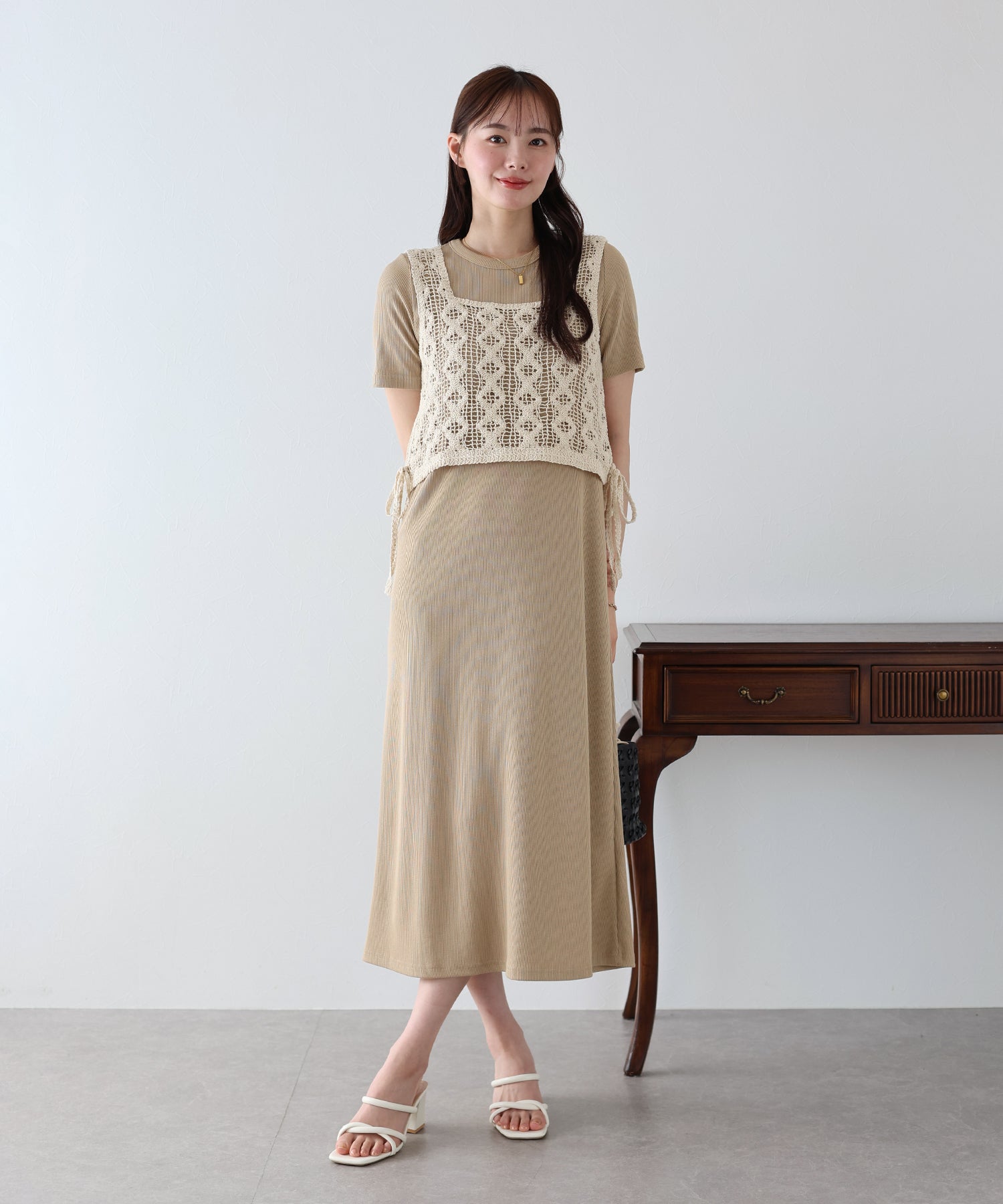 着回し力抜群!クロシェ編みベスト&ワンピースのセット