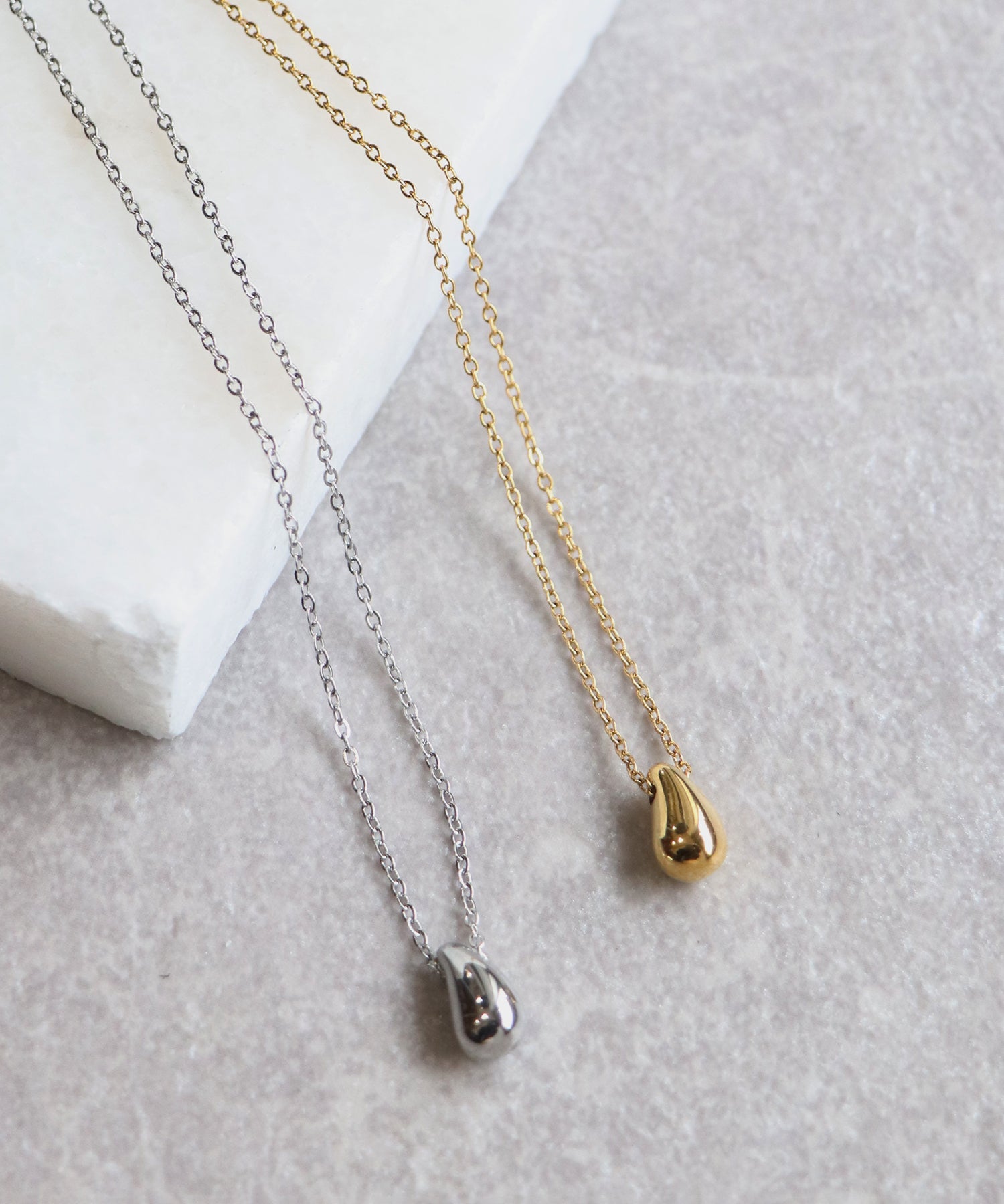 動くたびにきらきらと輝くぽってりドロップモチーフのペンダント ?POINT 華奢でありながら洗練されたしずくモチーフのネックレス。 シンプルでありながらも存在感のあるネックレスなので1つ付けるだけでコーディネートのさりげないワンポイントに。 ころんとしたモチーフが動くたびにきらきらと輝きます。 カジュアルにも綺麗めにもデイリーに取り入れていただけるアイテムです。 1つ持っておくだけでコーディネートの幅が広がります。?