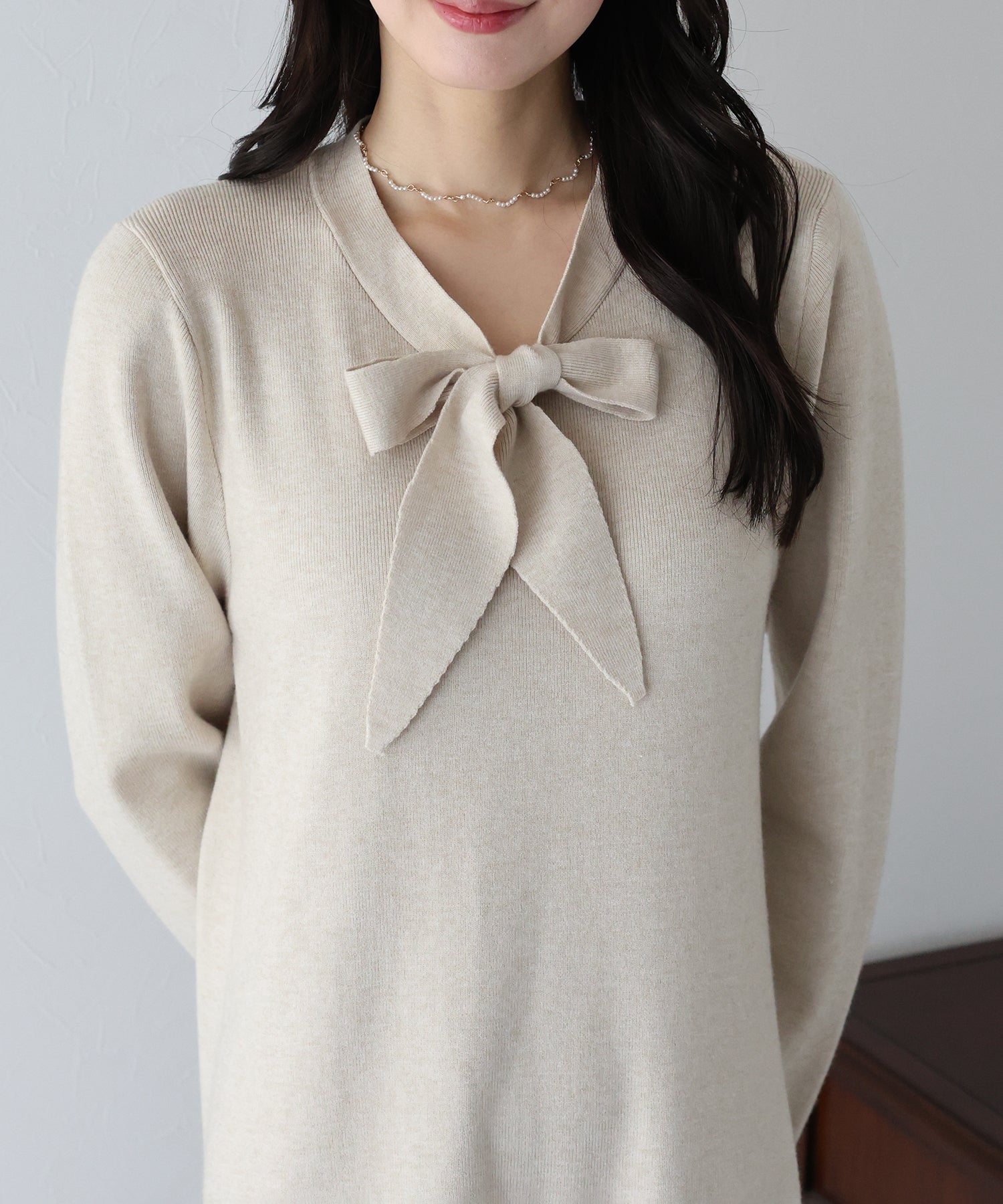 - 【TIME SALE】ボウタイニットワンピース