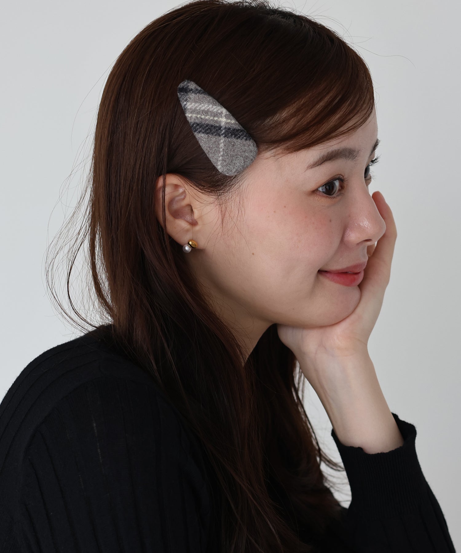 フェルト風素材のチェックがシーズンライクなヘアピン