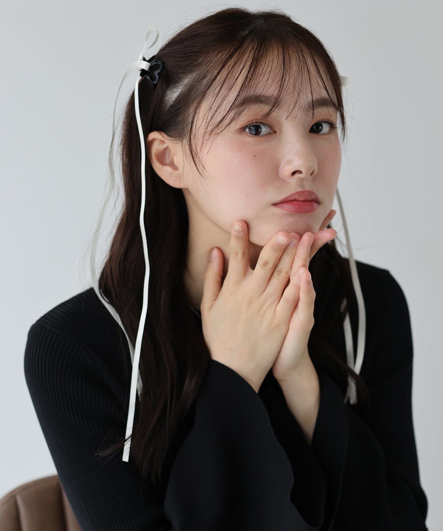 たらんと垂れたリボンが動くたびにゆらゆらと揺れ動き、結んだ髪にもハーフアップにも使えて