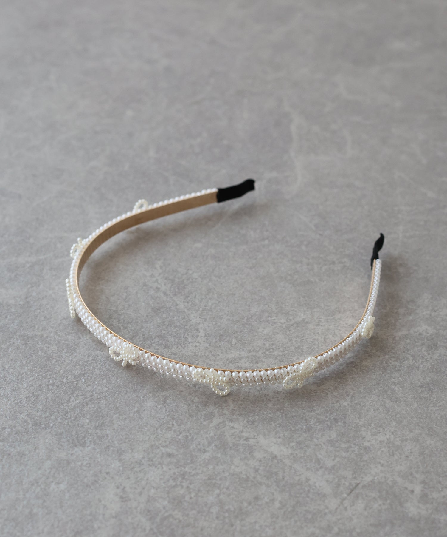 着けるだけで華やかな印象になる、細カチューシャ ?POINT 小粒のパールカチューシャにリボンをちょこんとあしらいました。 スリムなフォルムと小ぶりなパールが甘さ控えめで上品な印象に仕上げてくれます。 普段使いにも、結婚式やパーティーなどのオケージョンシーンにもおすすめです。 コーディネートにプラスするだけで、上品な印象に仕上げてくれるアイテムです。