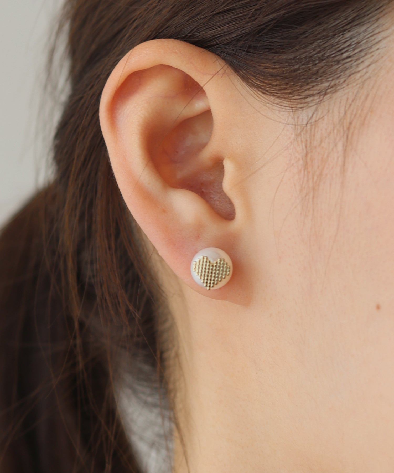 洗練されたムードを演出するハートモチーフ×淡水パールピアス ?POINT 上品な光沢の淡水パールの上にちょこんとハートモチーフをあしらったミニマルなピアス。 柔らかな印象のパールと華奢でありながら洗練されたハートモチーフで、毎日付けても飽きない上品なデザイン。 オールシーズン?様々なシーンでも使えて、どんな服にも馴染みやすく普段使いにぴったり。 カジュアルにも綺麗めにも取り入れていただけるアイテムです。