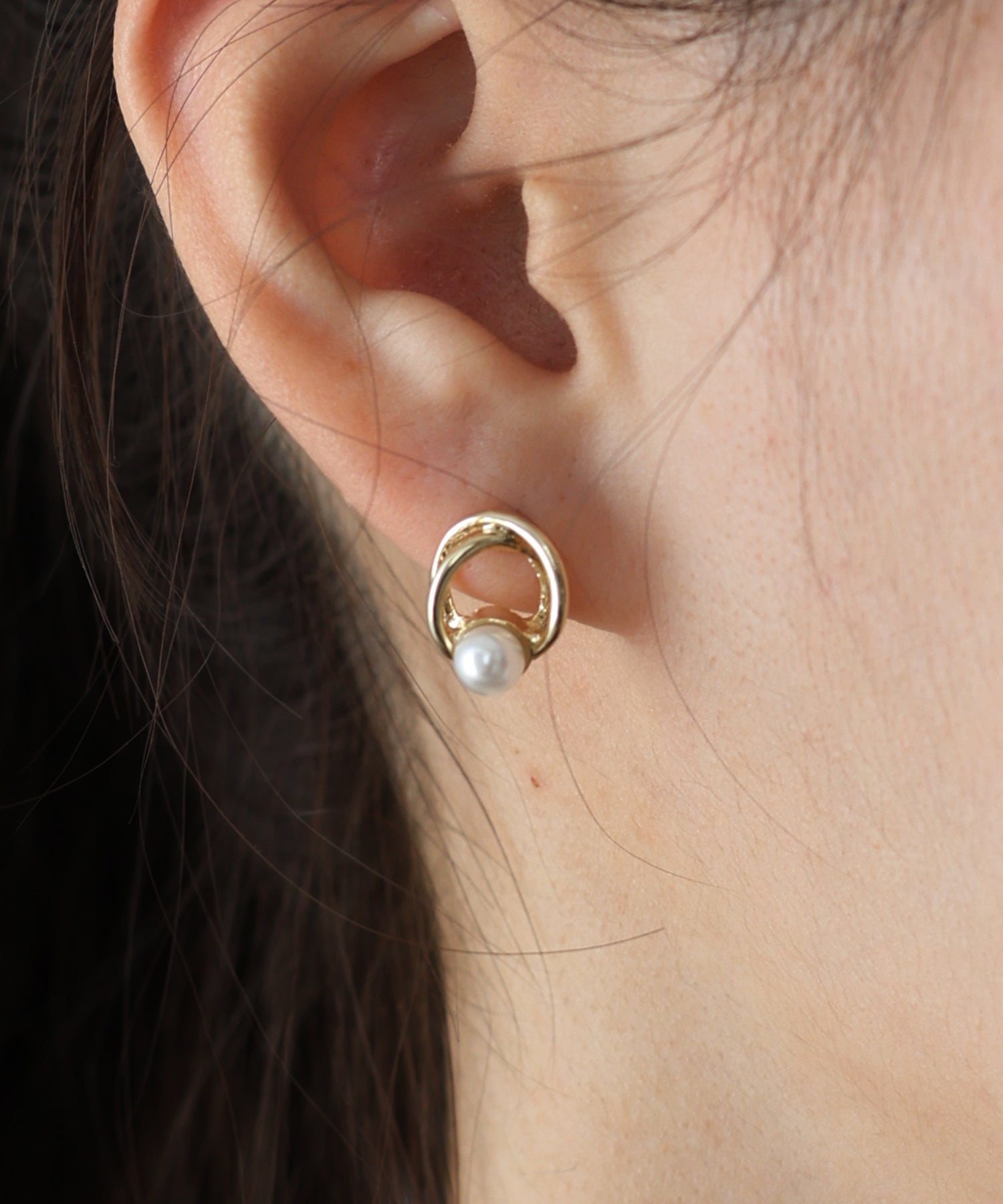 繊細なメタルモチーフにパールをあしらったミニマルなピアス。