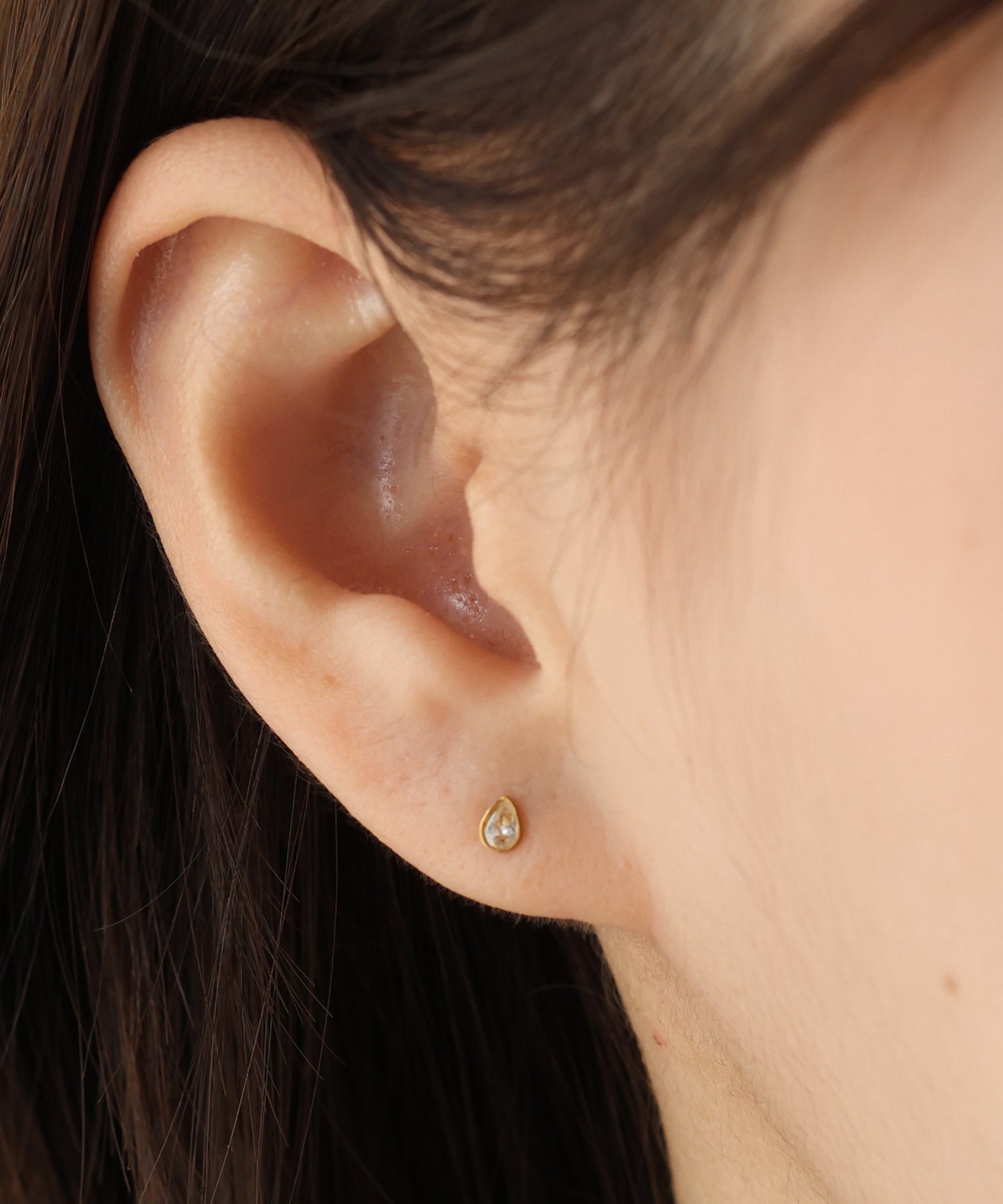 小ぶりなしずく型ビジューが横顔に可憐な印象を与えるミニピアス